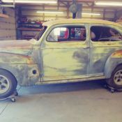 Custom / Model A Chassis, '37 Tube axle. '40 Ford Hydraulic brakes with '36 wide 5 drums and wheels. Model A rear spring with Halibrand V8 Quick Change Rear. Schroeder Steering box.