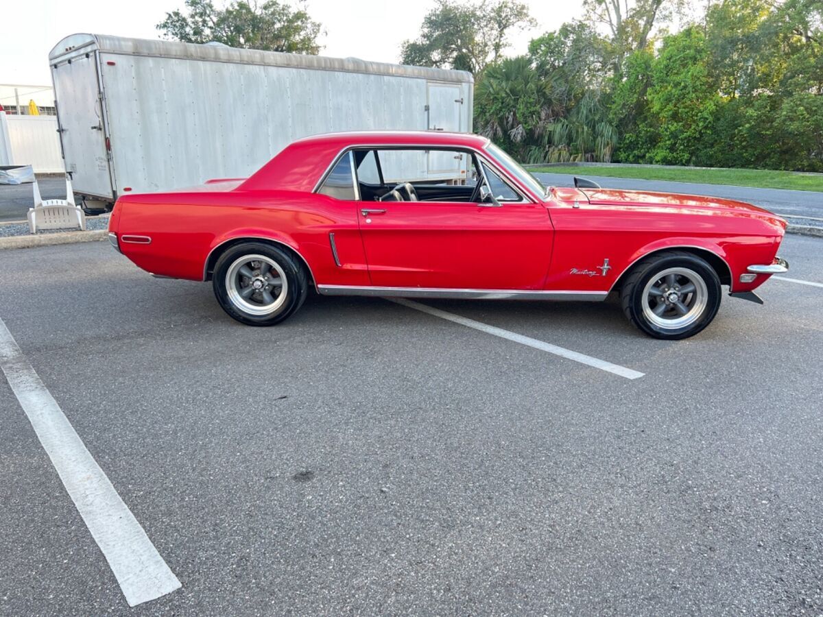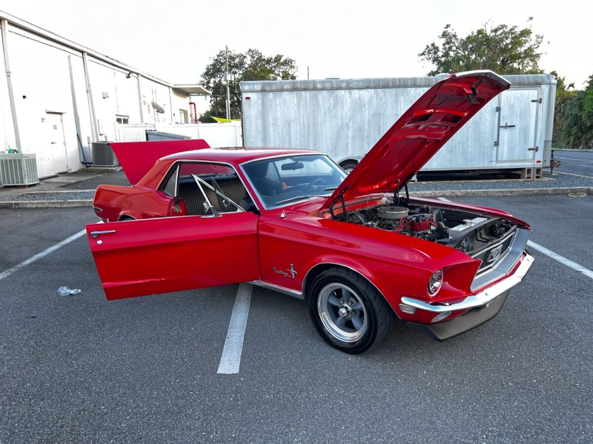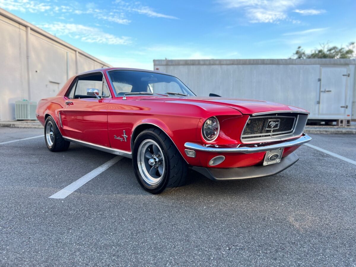 | Ford Mustang 302 T-5 Manual Description Rebuilt 302 V8 Hooker headers Flower master exhaust T-5 5-Speed Manual swap Brand new American Racing wheels Torque Brand new Toyo R888 Brand new Bilstein shocks Shelby 1 inch drop upgraded heavy duty Springs, and also heavy duty leaf springs Disc brakes front and rear with aluminum braided brake lines Short shifter with shifter extension LED headlights high-performance aluminum radiator for maximum cooling power high performance alternator 140amp and Red optima battery Front air dam splitter Hi Performance Edelbrock 4 Barrel carburetor and Edelbrock intake interior is original andimmaculate This mustang has been restored for maximum performance and handling body has original 78,000 miles Florida Mustang everything in this mustang is original from the floorboards to the trunk, Frame does not have rust, has no rust on paint all the way this mustang was built in the New Jersey factory when it was brand new and shipped to Jacksonville Florida in 1968 Features & Options Optional Equipments