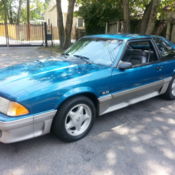 As a street car we left the stock 5.0 motor with smog legal BBK shorty headers, BBK cold air intake, and underdrive pullies. Also running a stock 5-speed with short sifter, MOD shifter extension, aluminum flywheel, Centerforce clutch, and aluminum drive shaft. Rear axle is an 8.8 with 355 gears, Moser 31 spline axles, C-clip eliminators, with 9in axle ends fabed to install Willwood rear disk brakes with an internal E-brake. She still has the stock dash, interior heater/defrost and controls, center console, all interior panels, rear set delete, head liner with dome light, Dinomat and full carpet, functioning head, tail lights, and turn signals, metal doors, stock door panels, electric windows and locks. Would need street tires, the 4-cat H-pipe and smog pump installed for for street use. Eazy one hour bolt in or out for smog.