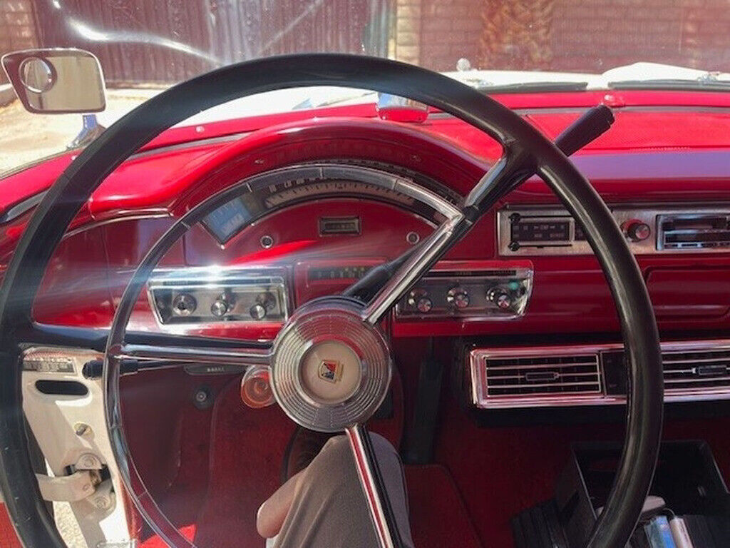 This Ford is powered by a 292 V8 engine paired with a 3-speed automatic transmission. The odometer reads 64,158 miles and it is shown with a two-tone Raven Black and Colonial White exterior and a red and white interior. This vehicle has been non-smoking and well-maintained.