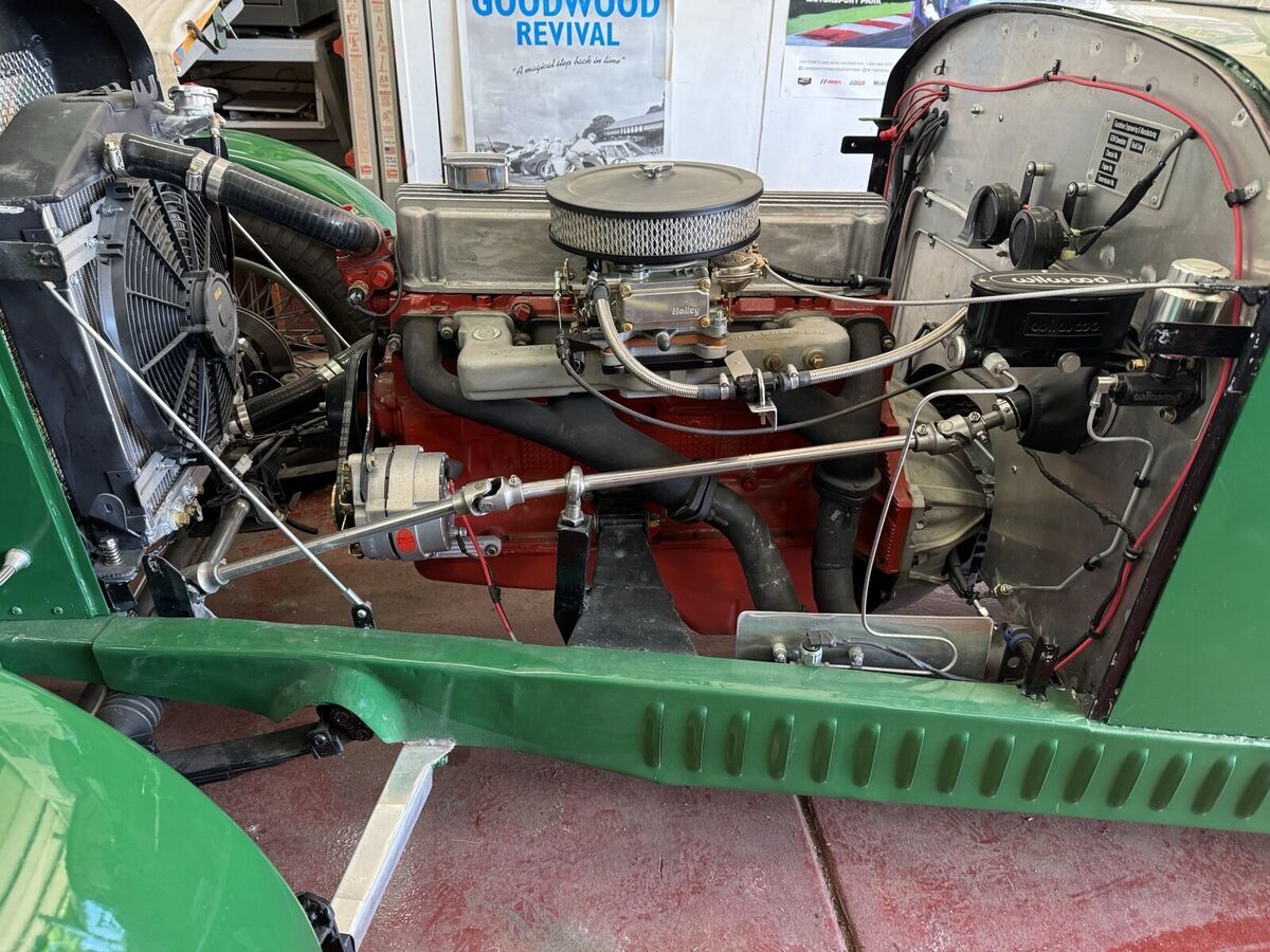 This car has a custom built steel rectangular tube chassis based on a 1932 Ford. It has a hand formed all aluminum body. This car has the following features: Remanufactured Chevrolet 292 six cylinder engine with new Holley 4 barrel and Pertronix electronic distributor New Tremec TKO 600 five speed transmission New genuine MWS 18 inch wire wheels and knock-off hubs New Wilwood disc brakes on all four wheels New 9 inch rear axle - 4.11 gears Custom made engine turned aluminum dash with new Classic instruments Custom leather bucket seats