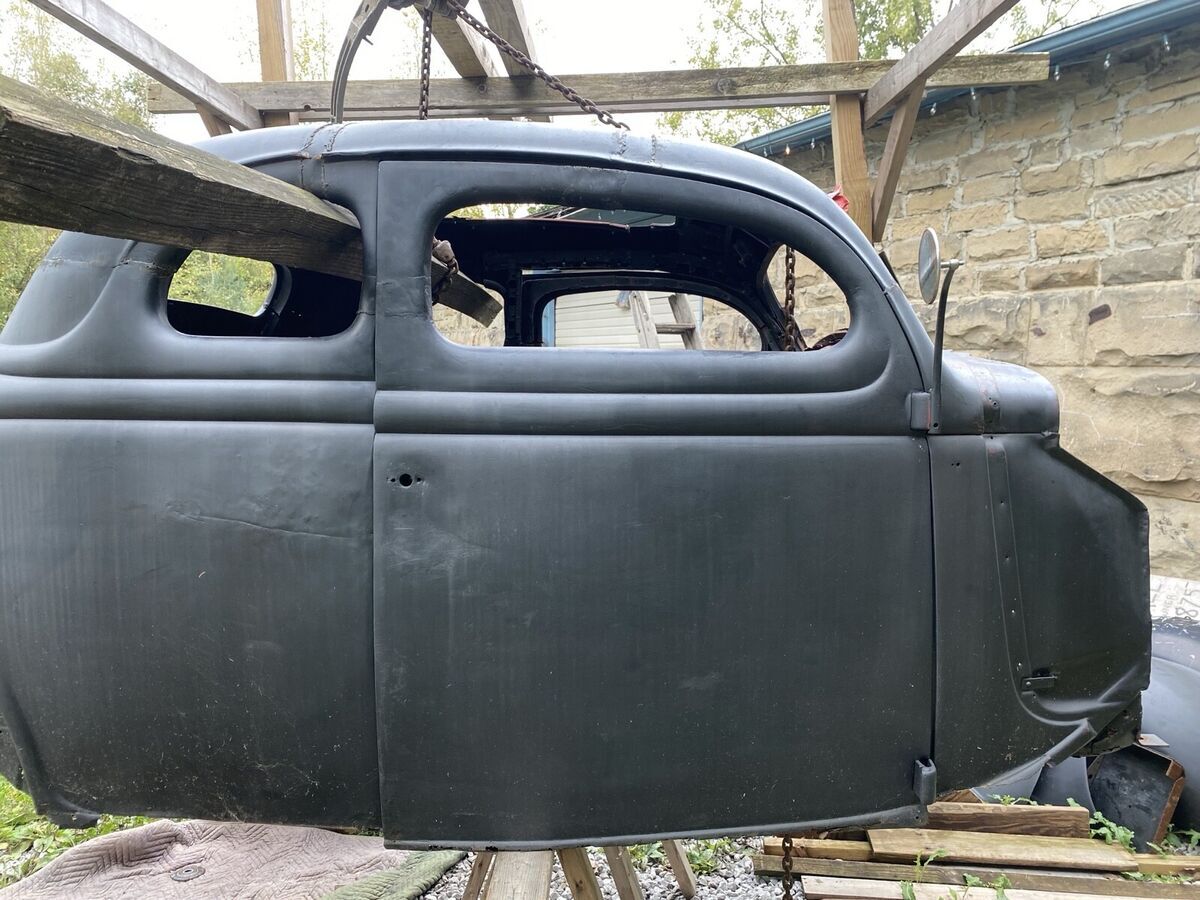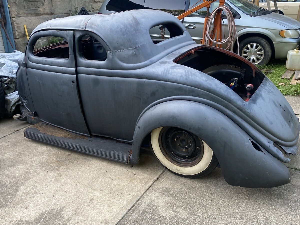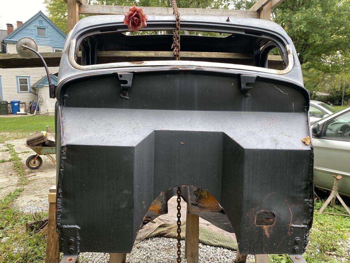 All Original steel 35 ford coupe body and fenders /hood. this was an old hot rod from New Jersey back in the day. This is a project. Frame is a 1990 Chevy S-10 fully bagged front and c notched rear. Lays frame. Still has original four-cylinder with five speed transmission hooked up. Motor needs starter. Airlines are hooked up to the bags, I can air this car up, and it will sit without any leaks for weeks. The entire car was chemically dipped for removal of Bondo and anything else. As you can see the body as in still good condition, needing some patch panels or some body work. Included, is the air tank with solenoids, one air compressor. I do have the ECU and all the electronics for the motor. The previous pictures show the car with a 40 Ford frame that was altered, that is no longer available. This car comes with the S-10 frame, which in the pics you can see lays frame. Floor was replaced several years ago, and I’ve cut out all the areas that need to be in order to sit on the frame. I grafted a 40 Ford dashboard that fits perfect in the 35. See pics. Perfect set of fire stone bias ply tires6.70/15. The car rolls around very easily. I’m assuming the buyer will have this car shipped, which I will store everything inside the car that is needed. I do have an original 1935 New Jersey Ford title that I never put in my name, this goes with the car, the doors shut, but need some work. I am missing the front grill and headlights. frame was extended 5 inches to fit the dimensions needed. no interior, no seat. No steering column. 50 Ford steering wheel. I have the pedal assembly from the S-10 that goes with the car as well. Brake booster still intact. This is a great start to a custom car of that era. 6500 is dirt cheap, NO TRADES. Don’t even ask. Any other questions just ask. Rear bumper is 41 ford w 36 accessory bumperettes. I’m sure there’s something I’ve misse, just ask.