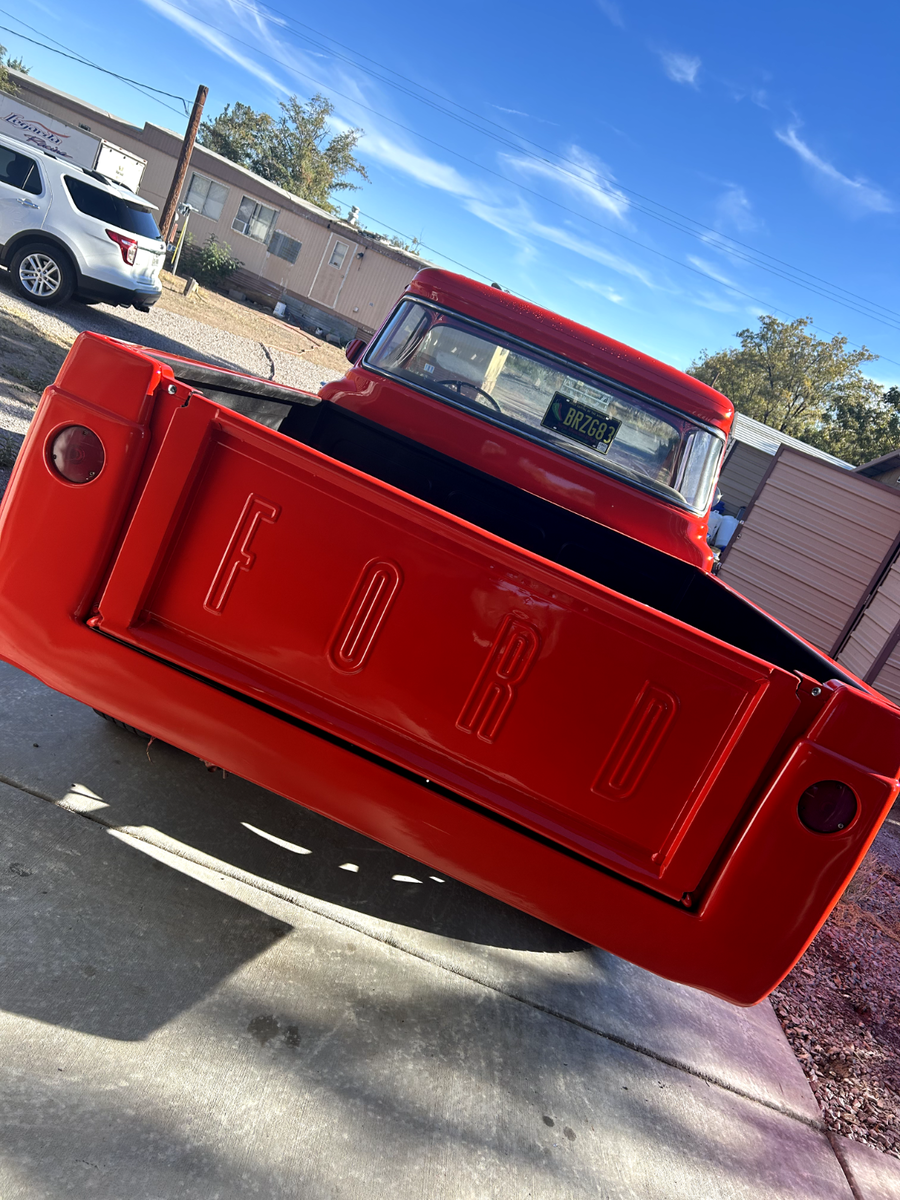 1960 Ford F-100 Custom with rebuilt 302 and C-6 auto transmission. Truck runs good, but still needs to update front brakes to disc and new wire harness. Front windshield is new and front and rear have new rubber seals.All specs on motor and trans in one of the pictures.Have a clean title in my name.Ask any questions and Ill answer as honest as I can.Winning bidder pays transport out of 88011 zip code.