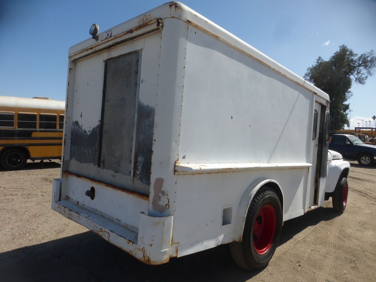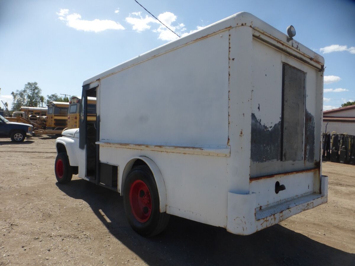 1966 FORD F-500 MILK TRUCK, 6 CYLINDER GAS ENGINE (GOOD ENGINE), 4-SPEED MANUAL TRANSMISSION, ONE SEAT ONLY FOR DRIVER, REAR DOOR HAS BEEN SEALED, BRAKES NEED TO BE REMOVED AND REPAIRED, REAR DUALLY TIRESCAN BE FITTED, GASOLINE FUEL LINES NEED TO BE REPAIRED OR REPLACED NO TITLE WILL BE GIVEN $6500.00 NO CREDIT/DEBIT CARDS - CASH ONLY- CALL DAN ANYTIME (760) 427-2645