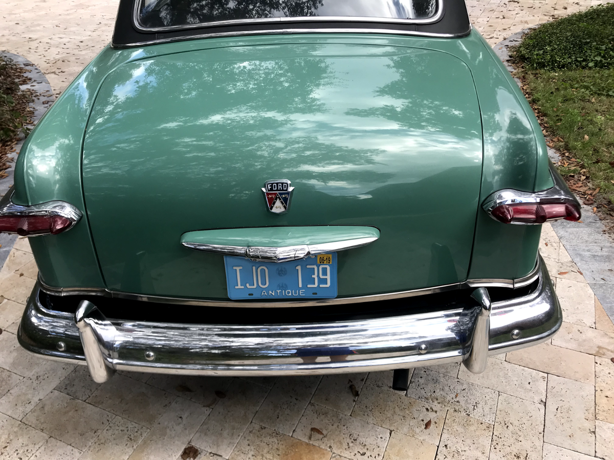 The 2 tone interior with black carpet and matching door panels enhance the appeal. Also introduced in 1951 was the turn-key ignition. The Crestliner came with only 1 choice for power and that was the 100hp 239 CID V-8 with a 3 speed manual with overdrive. In late1951 Ford introduced the 3 speed Ford-O-Matic as an option.