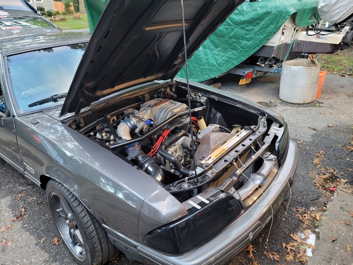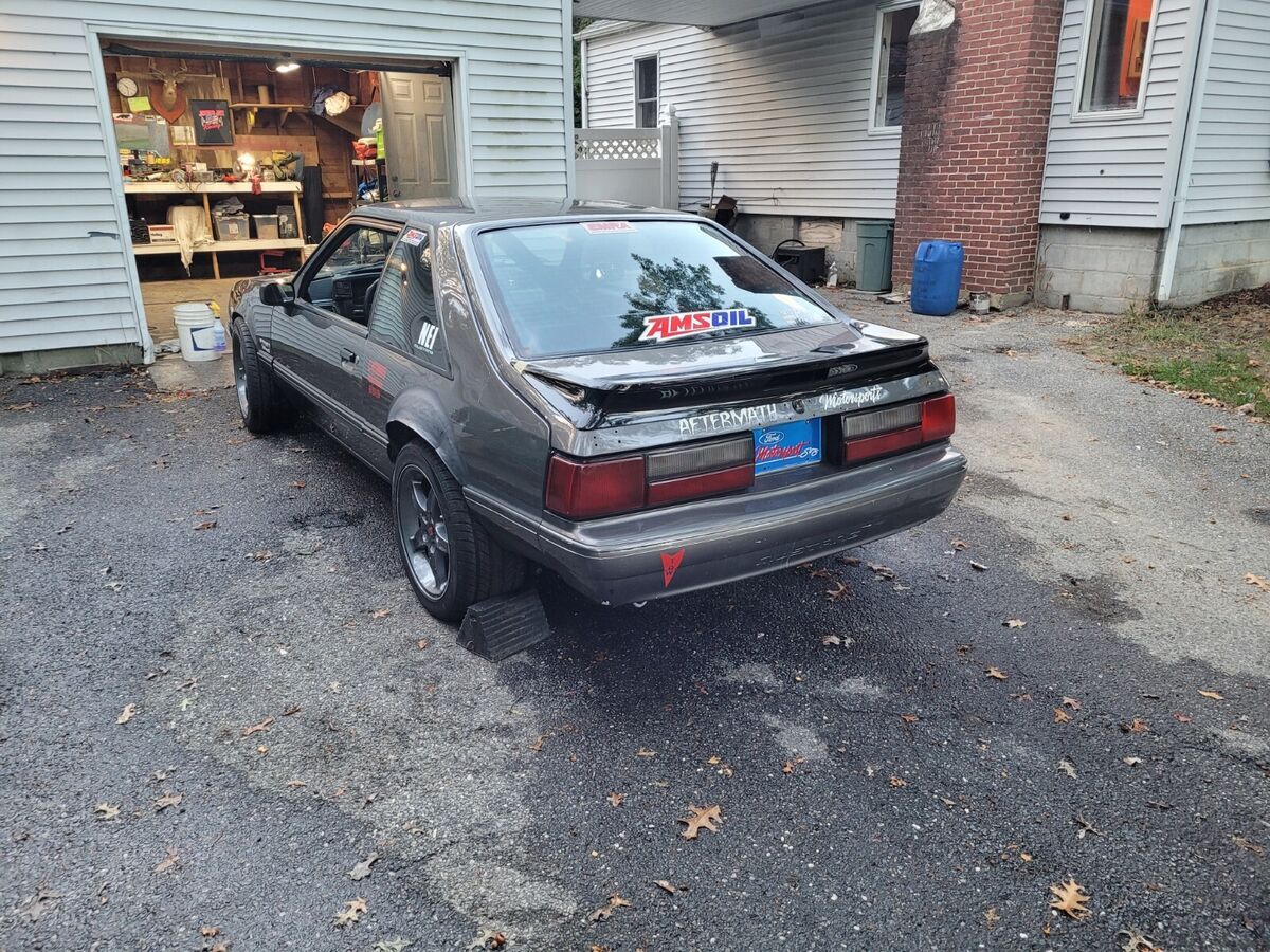 1988 Ford Mustang LX Hatchback Road Race CarAs an engineer by trade, I refined the after every track day and undertook a multi-year thrash to turn the car from a driver into a track MONSTER. Every system on the car has been addressed in the process.ENGINE: built by Scorpion Racing Engines (West Babylon, NY) to make it capable of over 7000 RPM while remaining virtually unbreakable. Bored 0.030 over (w/ deck plate), line honed, and decked. Top of the line tri-metal mains and Cleveite 77 rod and cam bearings. Speed-Pro Forged pistons & Eagle H-beam rods balanced to within ½ gram, Eagle forged crank (PN: 430230015090), and entire rotating assembly balanced as a unit. Trickflow heads (PN: TFS-51400002) were lightly ported, upgraded valve springs and retainers to Trickflow ‘beehive’ (PN: TFS-2500200) and titanium locks and keepers (PN: TFS-214T0420). Trickflow cam (PN: TFS-51402002), Harland Sharp 1.6 ratio roller rockers, and a new Ford Racing timing set were used, along with Cometic head gaskets to ensure zero issues. The intake is a Ford Racing Cobra Upper and Lower with 24 lb. injectors, a flow-matched 70mm MAF, a 75mm Throttle Body, and a C&L cold air intake kit including hi-flow cast elbow. The thermactor was removed and heads were properly plugged (PN: TFS-51400265). A full Canton Oiling System was installed including main studs with a stud girdle, a windage tray, and their ‘trapdoor’ style road race oil pan. A blueprinted oil pump, the correct Canton pickup for the pan, and an ARP hardened oil pump driveshaft offers added assurance. A new Edelbrock water pump, Ford ‘Special Service’ stock style clutch fan/shroud and a new aluminum Fluidyne radiator were added. During the build, the engine was converted from the stock 50oz counterbalance to a ‘zero balance’ configuration, offering much better performance for road racing. To further reduce rotating mass, a Romac SA balancer was used along with a Fidanza Aluminum flywheel. It sits on solid motor mounts for maximum power transfer.TRANSMISSION: OEM Tremec 'World-Class' T-5 with Astro Performance Road Race 0.82 ratio 5th gear (from stock 0.64 overdrive), Astro Performance Cluster Support Kit (stronger 5th gear shaft), Ford Racing King Cobra clutch (PN: M7560C302-VS2KC), professionally refurbished by Falcon Automotive of Bay Shore, NY with a Carbon Kevlar clutch disk. UPR firewall adjuster (PN: UPR: 3004-17), Ford Racing Double-Hook Clutch Quadrant (PN: M-7583-A), Prothane transmission mount (PN: 61604), Ford Motorsport Aluminum Driveshaft (PN: M4602-G), Maximum Motorsports Clutch Pedal Adjuster (PN: MMCL-10), and Ford Racing Hurst Shifter (PN: M-7210-M).K-MEMBER & FRONT-SUSPENSION: Maximum Motorsports K-Member (MMKM-1), Lower Control Arms (MMFCA-FOX), Coil Over Kit – Bilstein (PN: MMCO-1), and Caster/Camber Plates (MMCC7989). Bilstein Race Valved struts (PN: V36-4138-MM2). Hypercoil 450 lb./in springs (PN: HYP45008250). Maximum Motorsports Strut Tower Brace (MMSTB-1), Front Sway bar (MMFSB-1), Front Sway bar Reinforcements (PN: MMFSB-60), Front Sway bar Relocation Kit (PN: MMFSB-50), K-Member Spherical Rack Bushings (PN: MMST-6), and Adjustable Tie-Rod Ends (MMTR-2 - Bump-steer Kit). Flaming River steering shaft (eliminates rag joint).REAR AXLE & SUSPENSION: Ford Racing 3.27 gears, Torsen Torque-Biasing (2.5:1) 31-spline Differential (PN: TOR-88T2/31), TA Performance Rear Diff Cover/Girdle (PN: TA-1806), 5-lug Superior 31-spline rear axles (PN: SAG-EV80), Maximum Motorsports Road Race Rear Lower Control Arms (MMRLCA-50), Torque Arm (PN: MMTA-1), Panhard Bar (PN: MMPBA), and Rear Coil-Over Kit – Bilstein (MMCO-3). Bilstein race-valved rear shocks (BE5-6418-MM2). Hypercoil 350 lb./in springs (HYP-35008225). Maximum Motorsports Bolt-on Wheel Spacers (PN: 5065705-9065705) and Adjustable Rear Sway bar (MMRSB-1). Sealed venting system using Summit PN: G1460EXHAUST: BBK chrome 1-5/8” primary Long Tube headers, Split-Lock header bolts (PN: BPP-200-777), BBK 3” X-pipe, 2-chamber, 3” Flow Master mufflers, Custom 3” dumps before the rear axle.MSD Ignition System: (fully redundant) Dual MSD 6TN Ignition Boxes, each with MSD PN: 8738 soft touch rev control, Dual MSD High-Vibration Coils, MSD Billet Distributor, MSD Firewall Feed-Thru (PN: 8212)BRAKES: Maximum Motorsports Master Cylinder adapter kit (PN: MMBAK-3) and Manual Brake Conversion Kit (PN: MMBAK-10). Wilwood Billet Superlite 14” 6-Piston Radial Mount calipers (PN: 120-8000-RS), 4-Piston 12.19” rear disk brakes (PN: 140-7146), and Adjustable Proportional Vlve (PN: 260-8420). Porterfield Race Compound pads [PN: R-4; Front: Stockcar 4 ¾”, Read: Stockcar 4”], NACA inlet ducts in stock Mustang LX front facia, Mid-Continent Mustang Brake backing plates, Heat resistant brake cooling tubingDRIVER SAFETY AND AMENITIES: Custom 6-point DOM roll cage hand fabricated by CJ Motorsports (Selden, NY), Kirky Road-Race Seat with head side support, Simpson 5-point racing Harnesses, Momo ‘Race’ steering wheel (PN: RCE35BK1B), Custom Off-set seat track for better driver alignment (more centered), Autometer Tachometer with Shift light (PN: 3905) and Tach Pod (PN: 49102), Moroso Sealed Battery Box (PN: 74050), Fuel-Safe Mustang Enduro fuel cell (PN: SA110C), Fire ExtinguisherCHASSIS & BODY: Front fenders have been rolled to make room for wider stance and wheel package, Front bumper replaced with roll-bar tubing, Tow-hooks added front and rear, directly connected to chassis, Headlights replaced with plexiglass covers (header and lights removed for weight), Ford Antenna Delete Plate, Door windows converted to manual style to save weight and retain glass, Rear quarter panels modified to clear wider rear stance and wheel package, Spare rear quarter panels from an ’89 LX 5.0L will be included in the saleTIRES: (2 sets) Sumitomo Z2 245-45R17 on Eagle Wheel Cobra-R replicas (for wet and storage), Avon M550 A/S 245-45R17 slicks on Maximum Motorsports ‘Villian’ wheels (for dry)WE