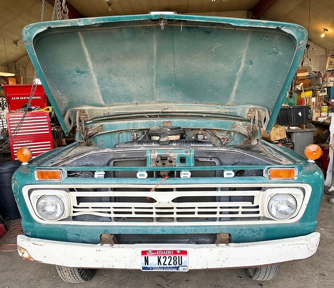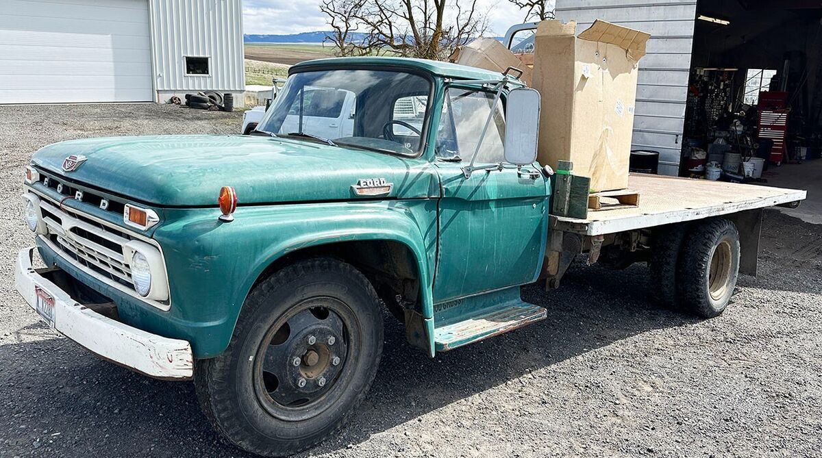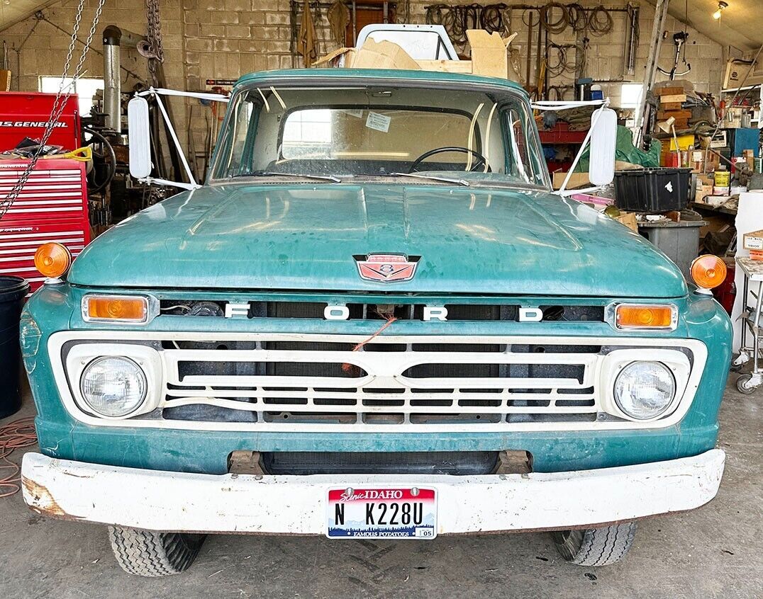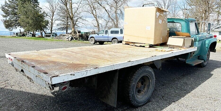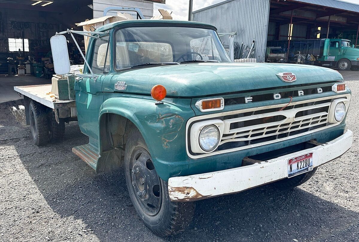 Standing on a corner in Winslow Arizona, such a fine sight to see. It's a girl! My Lord, in a flat bed Ford, slowing down to take a look at me....E-Bay seems to think this is a F-550, but it isn't. It's a F-600 flatbed. Current registration and clean title.And this is your change to own a great farm truck as well as a bit of musicology. Experience nostalgia and reliability with this 1966 Ford F-600, a testament to classic American engineering. 24,000 pounds GVWR mean this truck can carry ten tons of anything. It has a tilting flatbed, with optional stake sides. This left-hand drive 2WD model comes with a 5 speed transmission and two-speed axle. The transmission has been professionally rebuilt and shifts nicely. The two-speed axle also shifts perfectly. The tires are all good as well. Brake shoes were inspected; front ones about 50% used, rear ones nearly new.The engine is Ford's FT series, the truck version of the FE motor, and displaces some 332 CID or thereabouts. I had the carb rebuilt so it starts and runs great.This truck has been a working truck on the family farm here since new. We used it for hay bales, hauling cattle, and other farm chors. It's always been garaged, so the body is rust free but does have a couple of dents. The passenger door is dented and won't open from the outside. I got a replacement door from a junkyard; it is in a box on the bed of the truck.The truck's sole problem is the brakes don't work. I installed a new master cylinder and had the brakes bled, professionally, twice. Each time they worked great for awhile, but then went flat again. They are power brakes; there is a vacuum booster under the bed. I'm not a real mechanic, so I am not going to try to fix the brakes again. This company offers an upgrade:https://www.battlebornbrakes.com/product-page/ford-f600-vacuum-super-duty-booster-master-kitbut as noted I am not a mechanic so I am going to let someone else care for and love this beautiful old truck.Pics include the nameplate with VIN and other codes, so you can see what sort of transmission, axle, etc it has. There is also a nameplate for the Heil brand hydraulic bed.The interior is pretty clean for a truck of its age. The lights work. The bench seat is solid.Please message me if you have questions or need pics of something specific. The truck is in Lewiston, Idaho. If you think you can fix the brakes here, you can drive it home. There is space to work on it.p.s. Girl not included. ;-)
