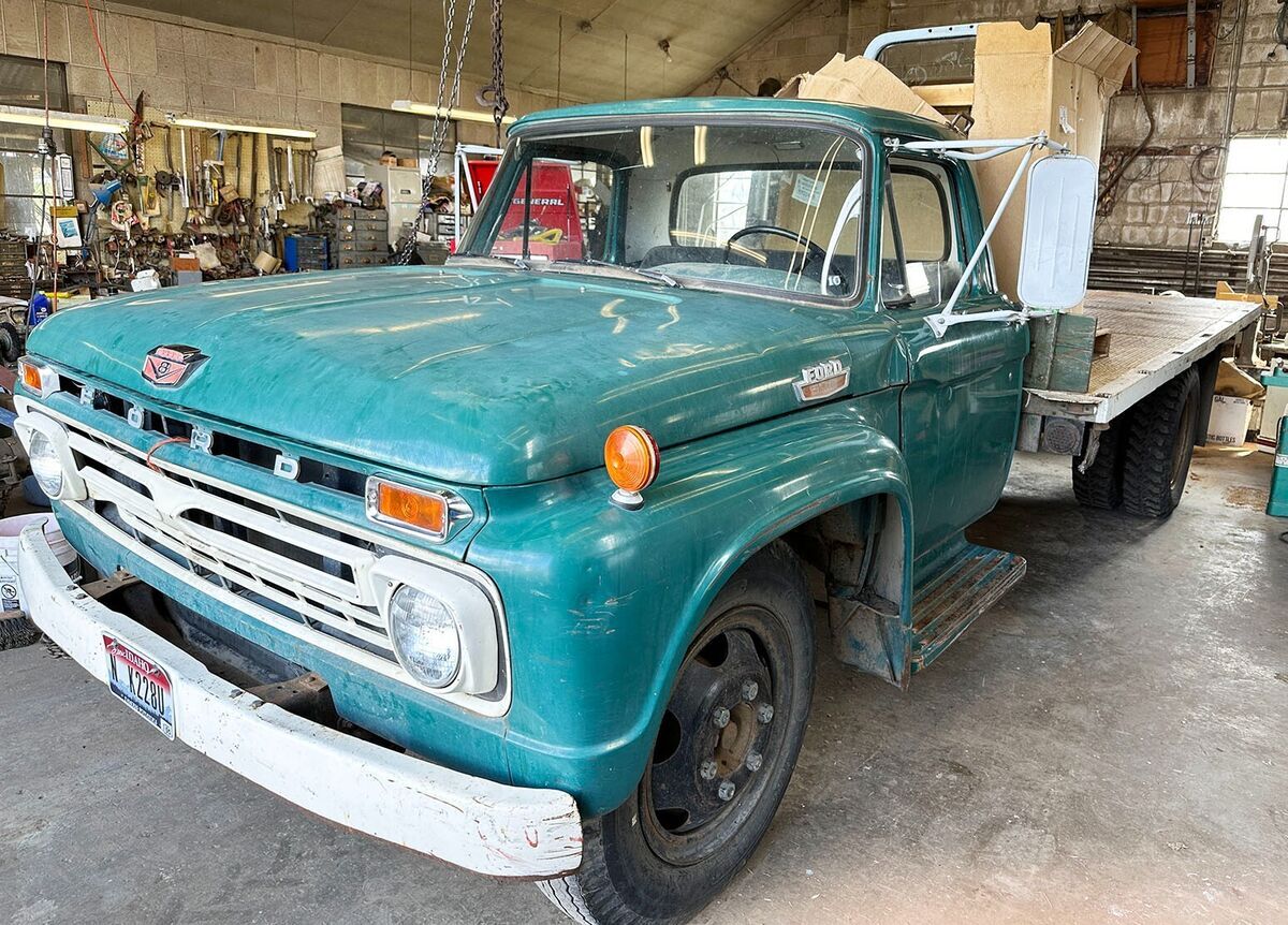 1966 Ford F600 Flatbed Truck with tilting bed and stake sides
