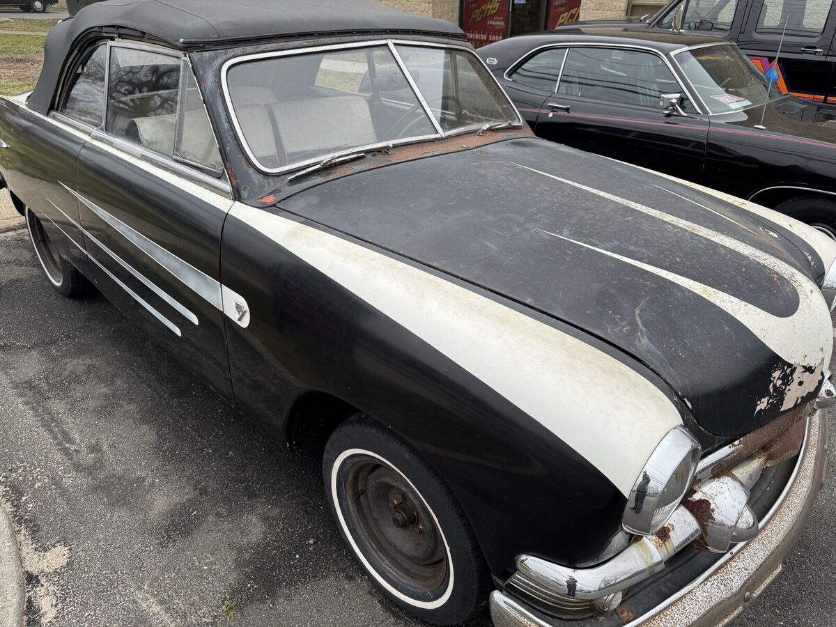 Looking to sell my 1951 Ford custom convertible, I had intentions on cruising this car this summer but I need to get rid of some projects so I can focus on my business. This car was built back in the 70s, it was nosed, decked and shaved. For those who don’t know what that means, they altered the front hood shape and fenders to give it a curve, they shaved all the door handles (installed poppers), and shaved the trunk lid. The bodywork and paint is very old on this car and is showing its age. Overall, the floors are pretty solid on this thing and the body is straight. Trunk does have has some holes, the car will need body work and paint. I planned to leave it as is because I loved the vintage striping on the car. All the glasses intact, drivers door latch doesn’t work so the door is strapped closed, and the passenger side popper isn’t working. I haven’t had any time to see if the power top works yet but the frame is intact.