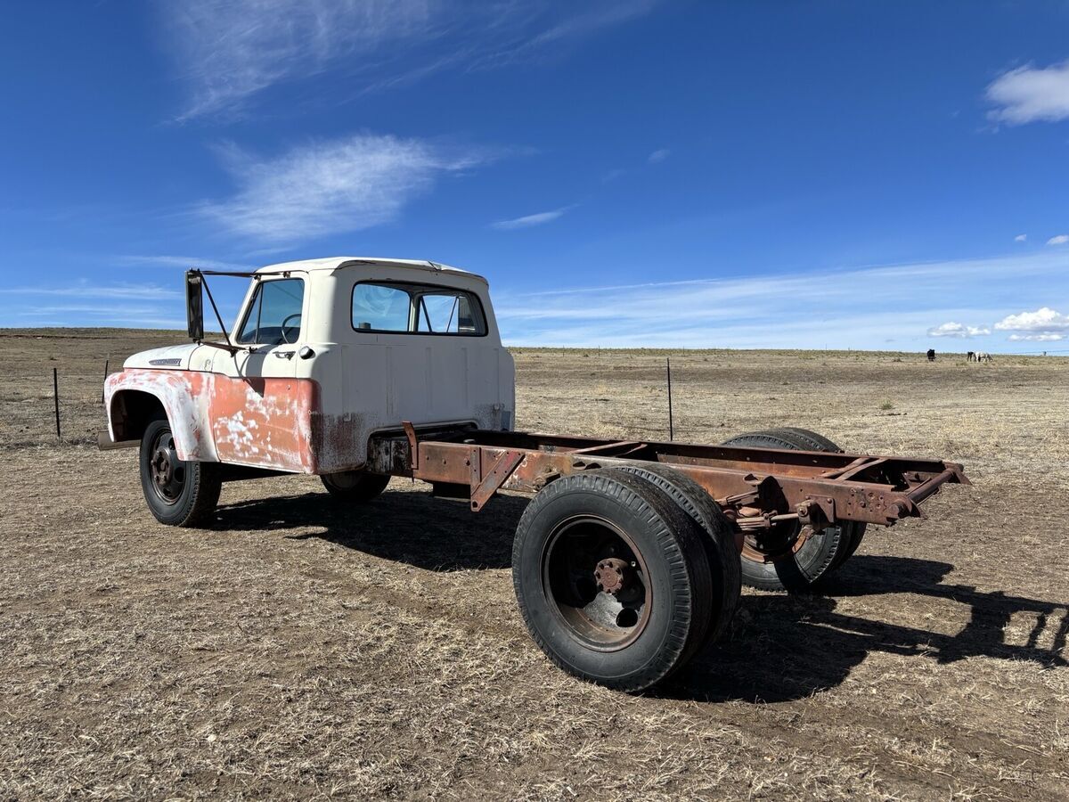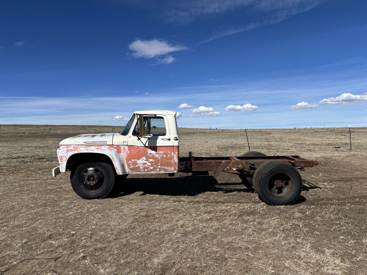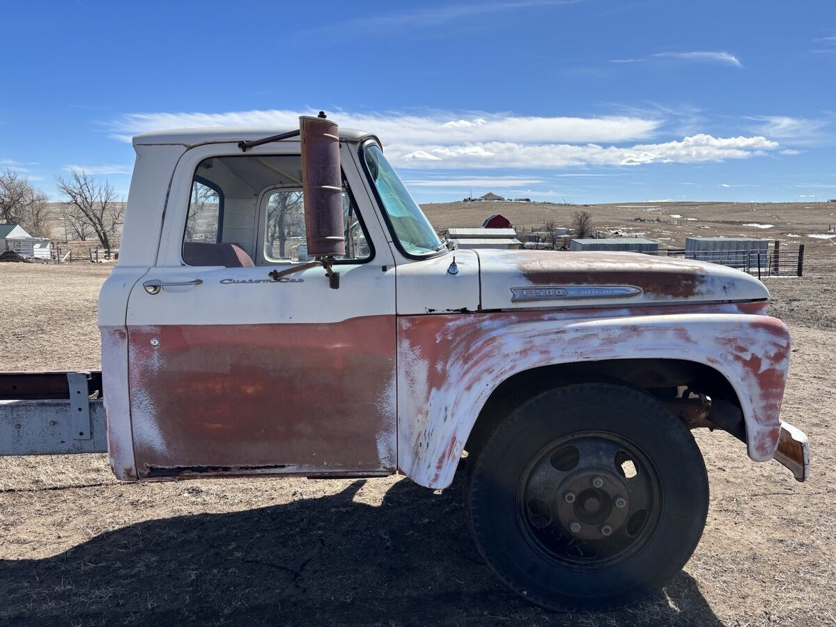 This 1961 Ford F500 was used as a dump truck for most of its life here on the eastern plains of Colorado. The previous owner retired the truck and removed the beat up dump box in preparation to install a flat bed.
