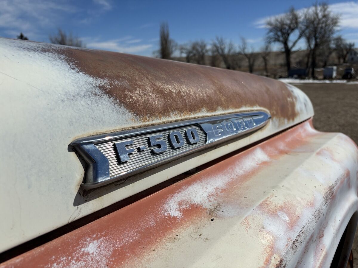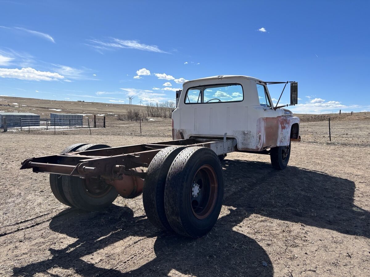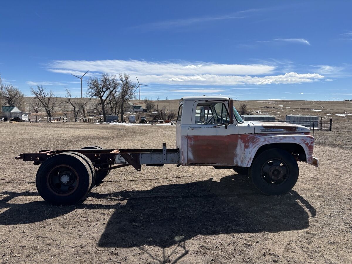 This 1961 Ford F500 was used as a dump truck for most of its life here on the eastern plains of Colorado. The previous owner retired the truck and removed the beat up dump box in preparation to install a flat bed.