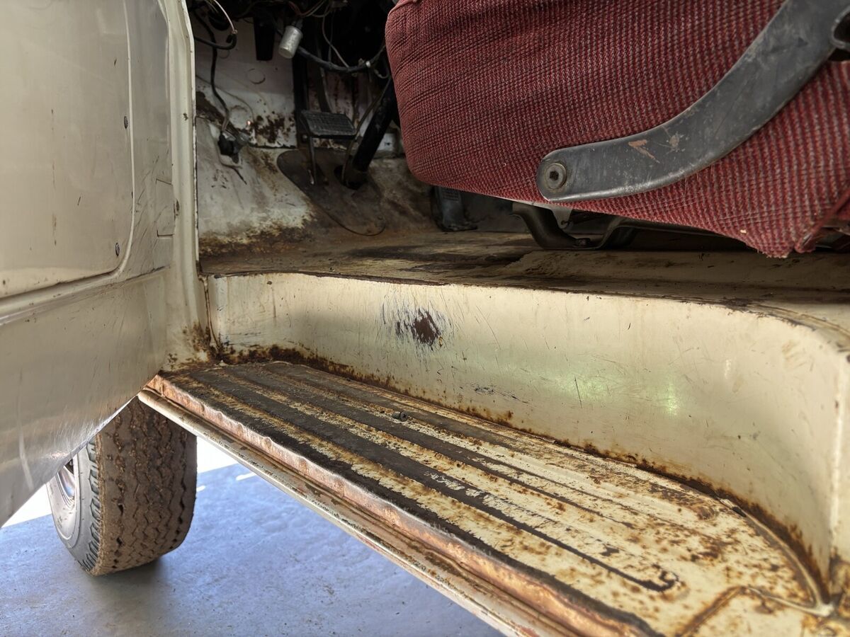 The body is in decent shape for its age, with some rust on the passenger door, driver side cab corner, hood, etc. Rust spots are pictured. The worst of the rust appears to be on the passenger side door. I have a spare door for the truck (pictured) that I can include if the buyer would prefer to restore it instead of the door that’s currently on the truck. I believe all the rust on this truck is repairable. The frame is in great condition with no issues.