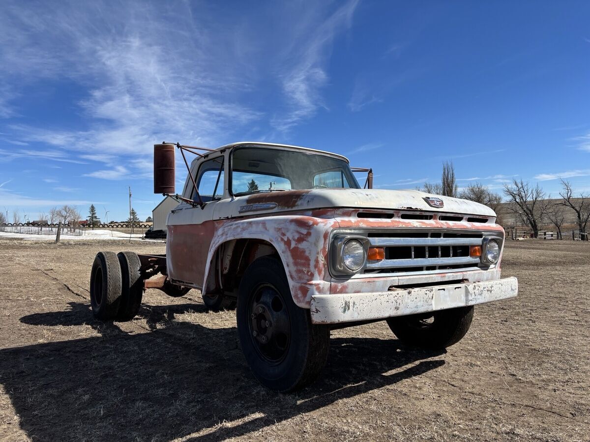 1961 Ford F500 Cab & Chassis truck that lived most of its life as a dump truck. Runs and drives, ready for restoration!