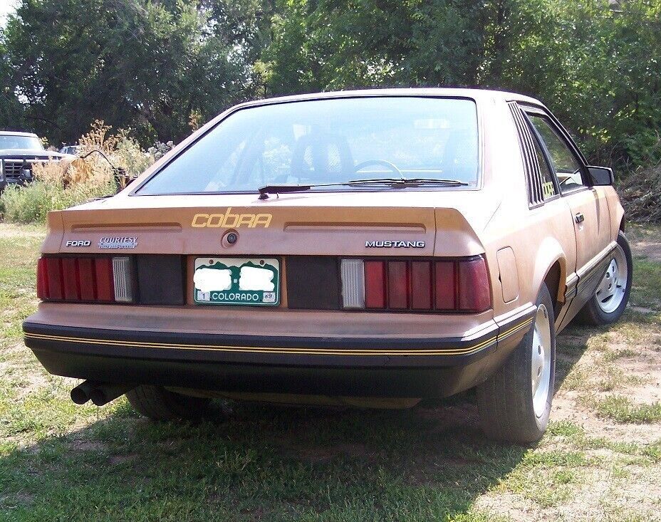 Very nice original Ford Mustang Cobra with solid outer body, door bottoms and underside hatch lip. Built in California San Jose Ford Plant shipped to CO. new. Has rare rear hatch wiper option with very rare desirable body color in Chamois (gold) with same interior color and lower exterior black bottom sides. Also has chamois Recaro seats that come with a brand new nos roll of cloth chamois and black material for the seat inserts that have a little wear, (enough to do a few vehicles). The seat insert material turns black from sitting on them after a while just as 79 pace car seats do. Seats have no rips or tears on seating areas just insert discoloration. Has large thick leather wrap Cobra steering wheel. Engine runs great with working turbo and excellent shifting original 4-speed transmission. Original tires and wheels are still on car Tires have no tread left but still hold air well. A set of very nice 15" Riken black mesh wheels with polished lips will go with car with a nice set of B.F. Goodrich radial t/a tires on them (see pic). If you do not want the extra wheels, tires or even the uncomfortable Recaro seats, I can delete the wheel/tire combo. The seats can be replaced with Standard same color Chamois Ford Mustang vinyl low back seats for a better price on the complete vehicle. Let me know at checkout as to what's preferred or when making offers. Vehicle was on road only 8 years prior to being retired. Make offer.See my other mustang and other vehicle listings.Note: splash guards in hatch area no longer available and won't come with vehicle.