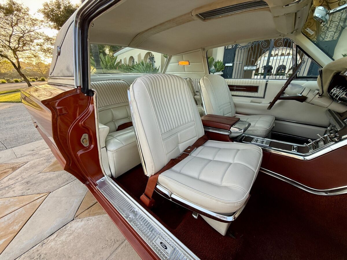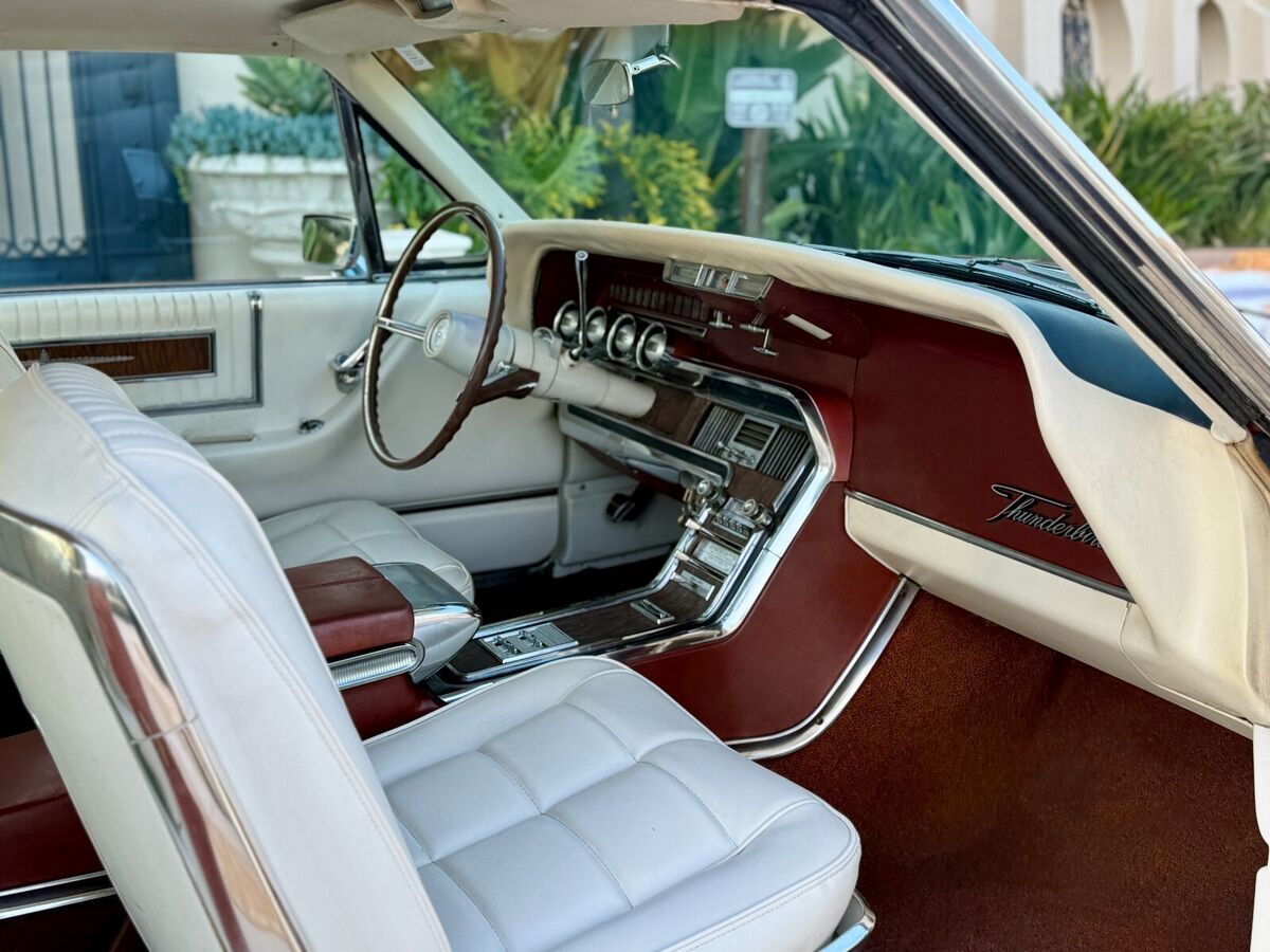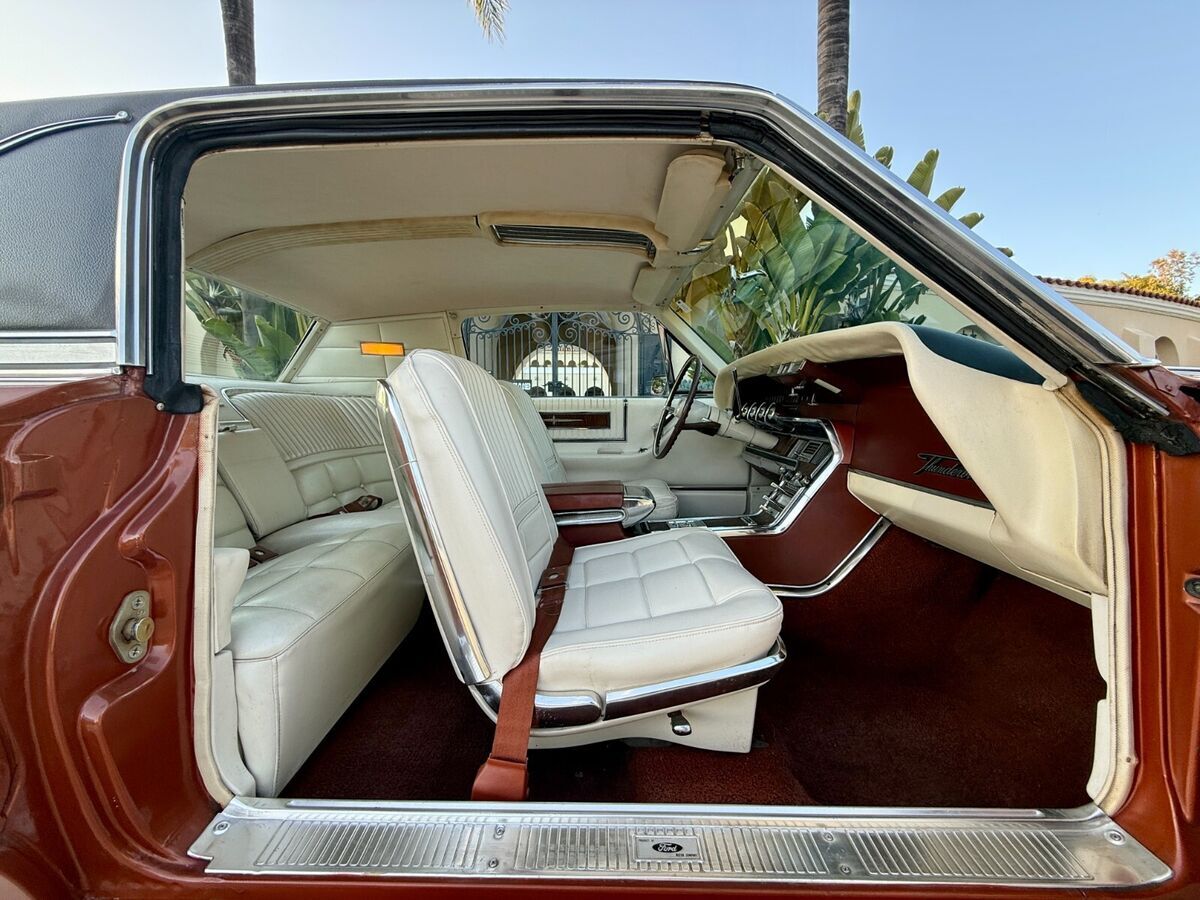 Two tone white / emberglo thunderbird interior is very nice and feels like a time capsule. The dash, headlinder, carpet, door panels and seats are in good condition. All of the interior brightwork and trim are in great shape. Clean and comfortable, no rips and no stains.