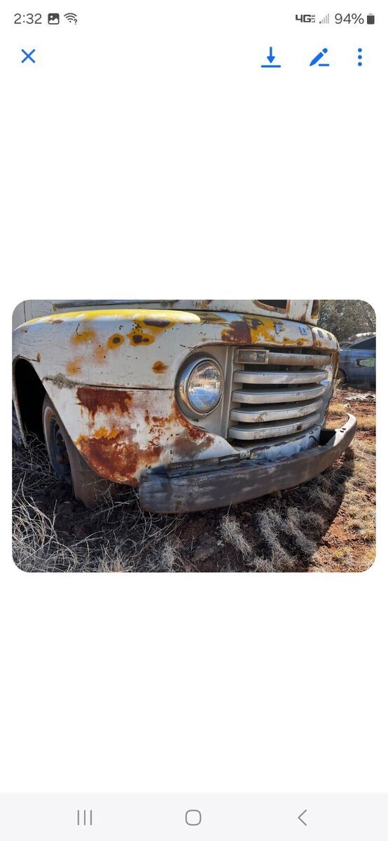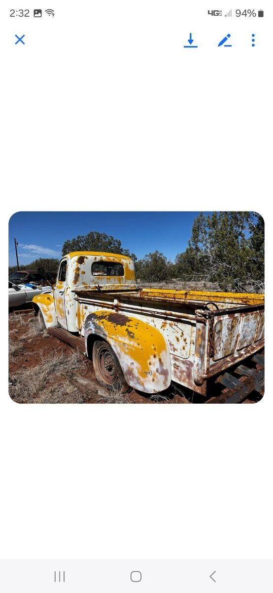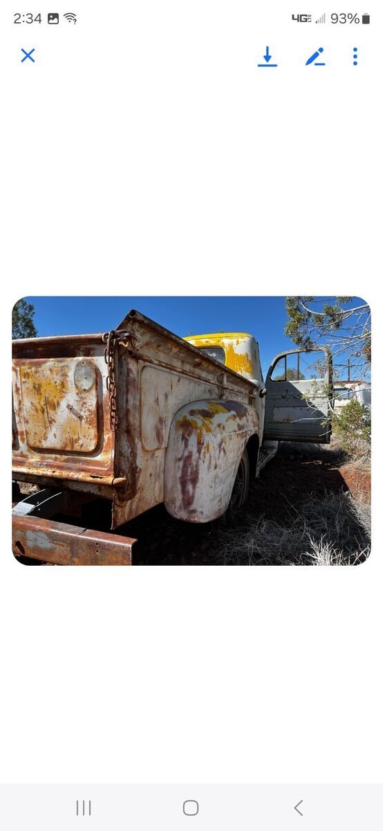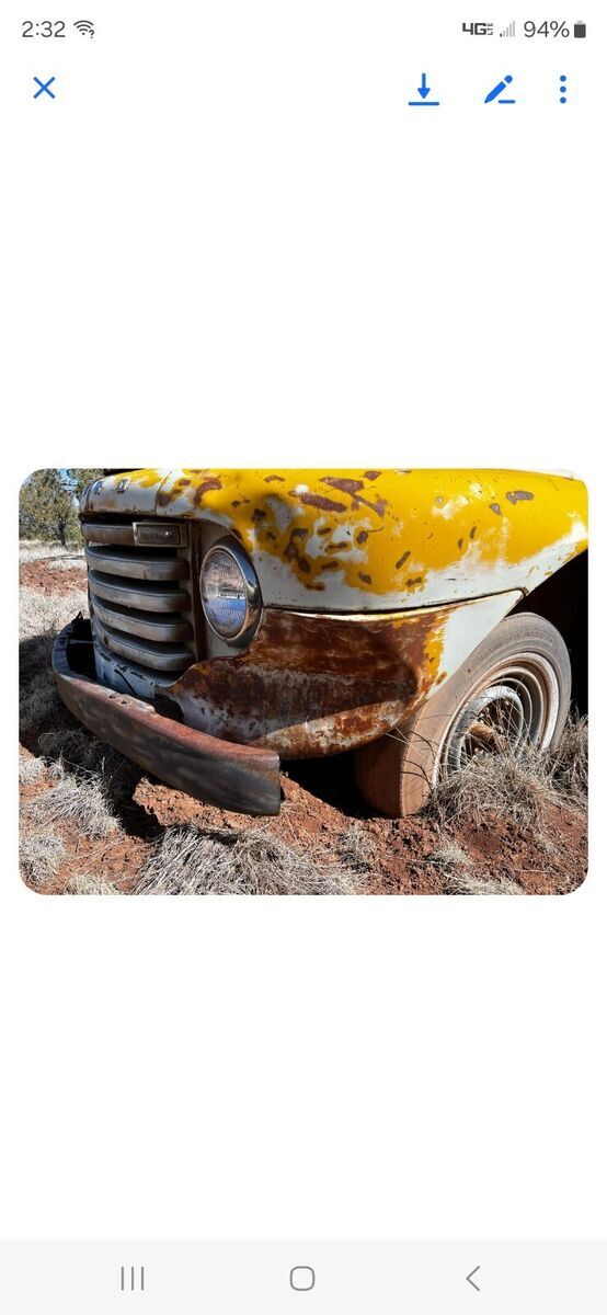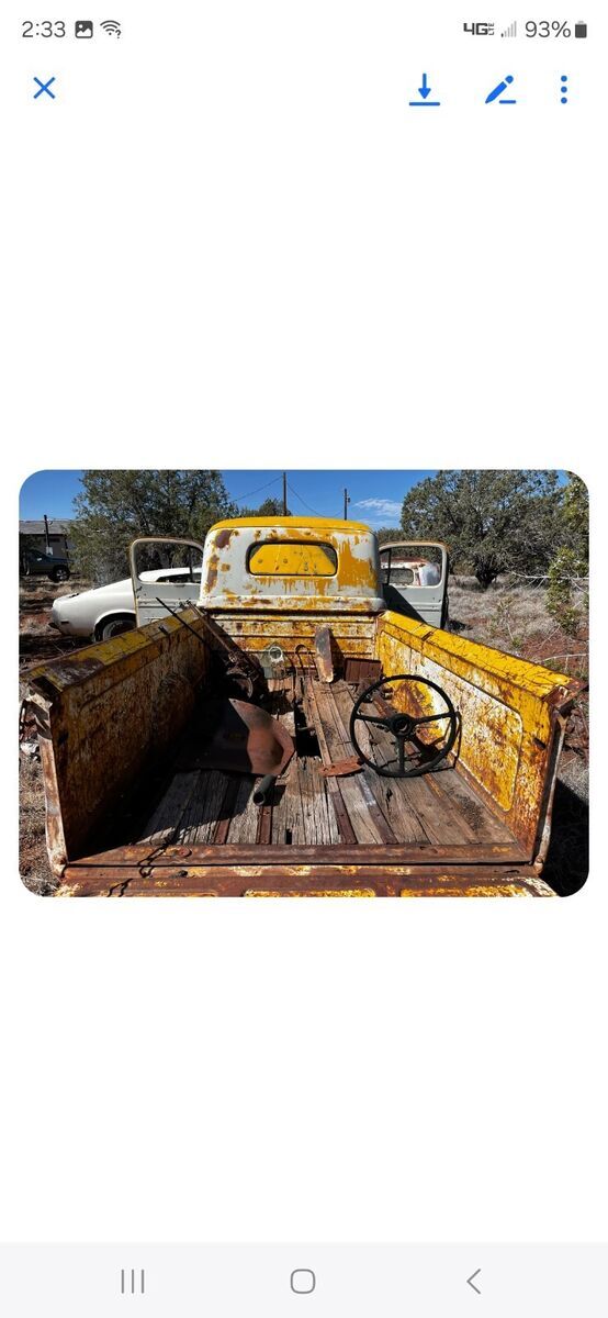 Up for auction here is a 1949 F2 Ford truck.We have owned it for over 35 years.This is how you like to find them.Fairly complete and not beat up.It had its original flathead 6 removed before we got it and a 223 from a 1955 truck installed.The rest of the truck is original and even still has its original wood floor in the bed.It has the 4 speed manual it originally came with and 4.11 gears.The truck is almost completely rust free.The only rust is a couple small places on the bedsides where the wood floor lays against it and a couple of the stake pockets have some rust on the bottoms.The rear fenders,doors,hood,bedsides and cab are very straight.The front fenders are straight also except for the drivers front lower fender.It still has its original seat but it's nothing but springs at this point.The tires don't hold air for very long but should be able to last long enough to load it.All the glass is bad in the truck.It is a factory chrome yellow paint truck and believe it was an original Arizona state truck.It has been in this state it's whole life.Trucks like these don't come around very often especially ones this old.Most are beat to death and need everything.Payment will be by cash in person or cashiers check and the truck doesn't move until payment is clear.The truck never had a title but a bill of sale will be provided.
