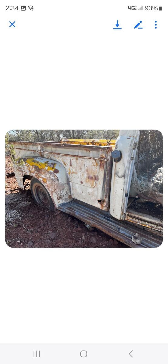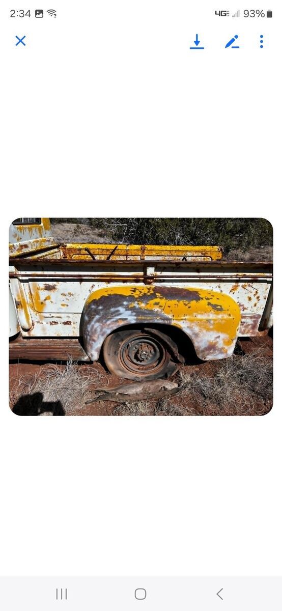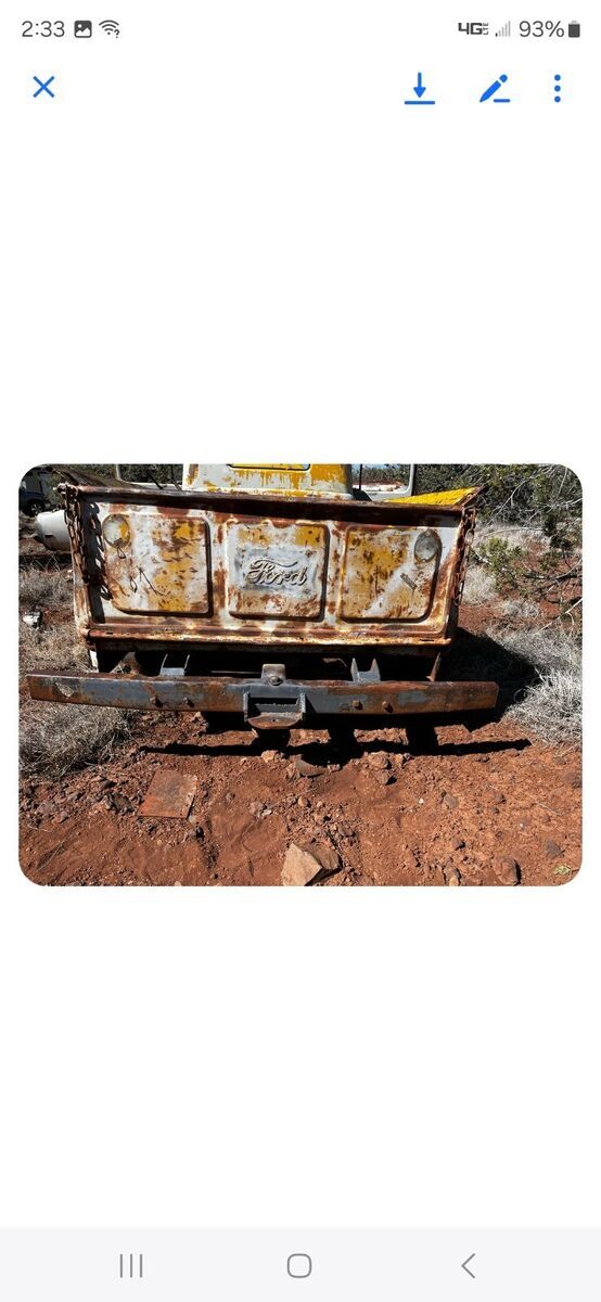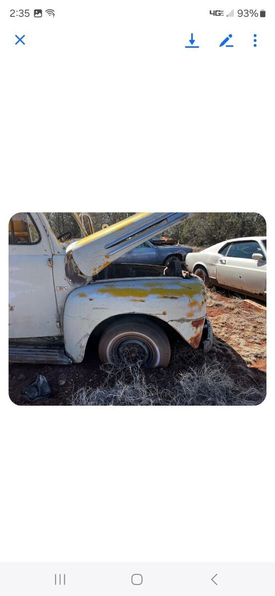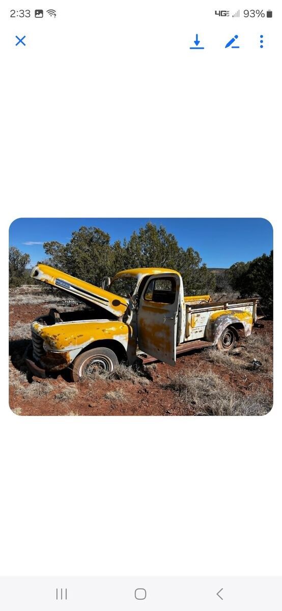 Up for auction here is a 1949 F2 Ford truck.We have owned it for over 35 years.This is how you like to find them.Fairly complete and not beat up.It had its original flathead 6 removed before we got it and a 223 from a 1955 truck installed.The rest of the truck is original and even still has its original wood floor in the bed.It has the 4 speed manual it originally came with and 4.11 gears.The truck is almost completely rust free.The only rust is a couple small places on the bedsides where the wood floor lays against it and a couple of the stake pockets have some rust on the bottoms.The rear fenders,doors,hood,bedsides and cab are very straight.The front fenders are straight also except for the drivers front lower fender.It still has its original seat but it's nothing but springs at this point.The tires don't hold air for very long but should be able to last long enough to load it.All the glass is bad in the truck.It is a factory chrome yellow paint truck and believe it was an original Arizona state truck.It has been in this state it's whole life.Trucks like these don't come around very often especially ones this old.Most are beat to death and need everything.Payment will be by cash in person or cashiers check and the truck doesn't move until payment is clear.The truck never had a title but a bill of sale will be provided.