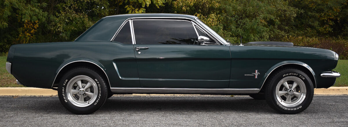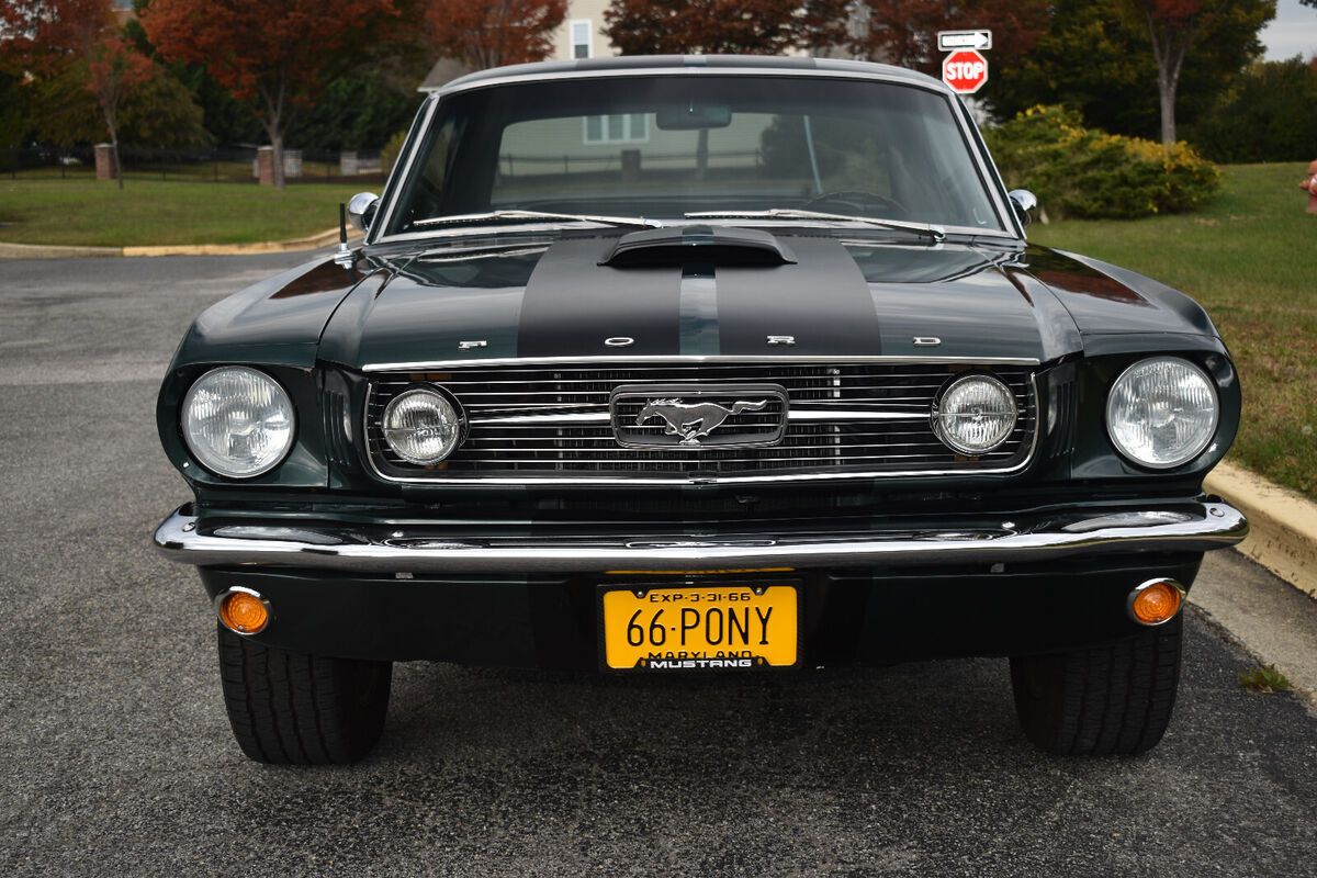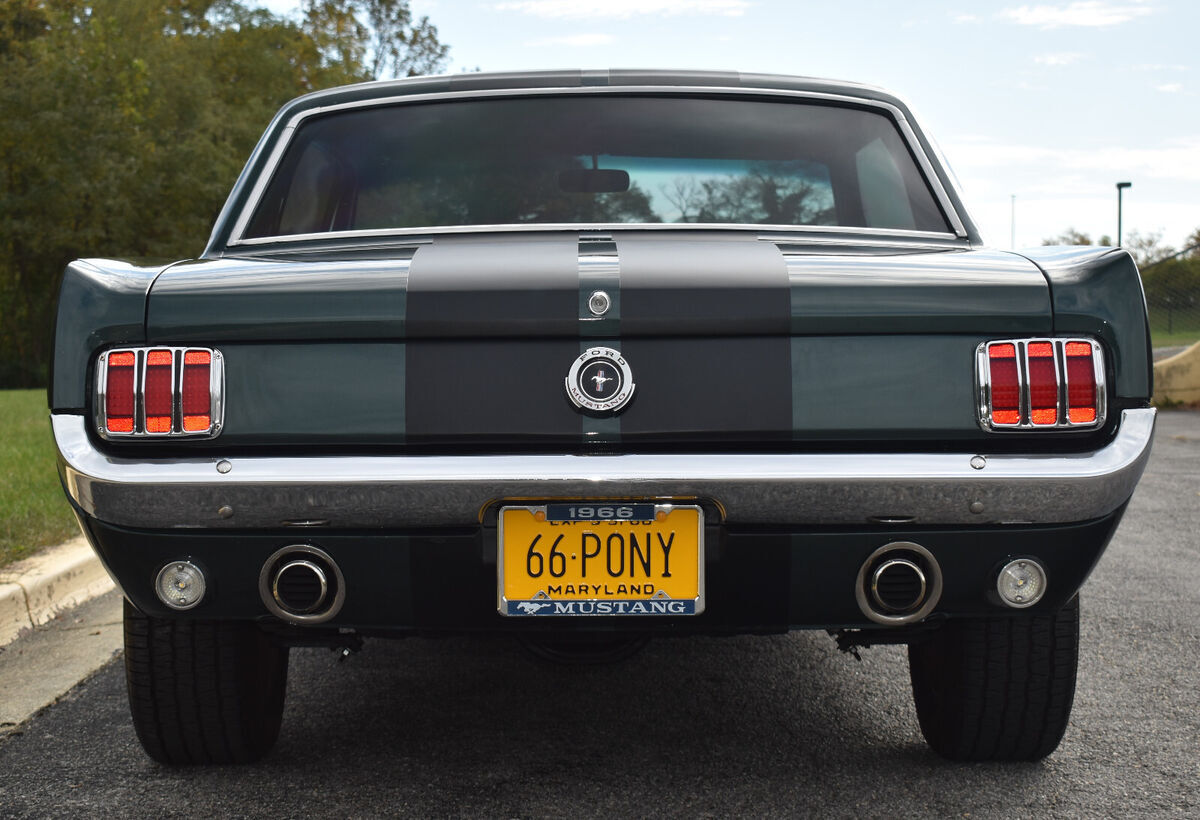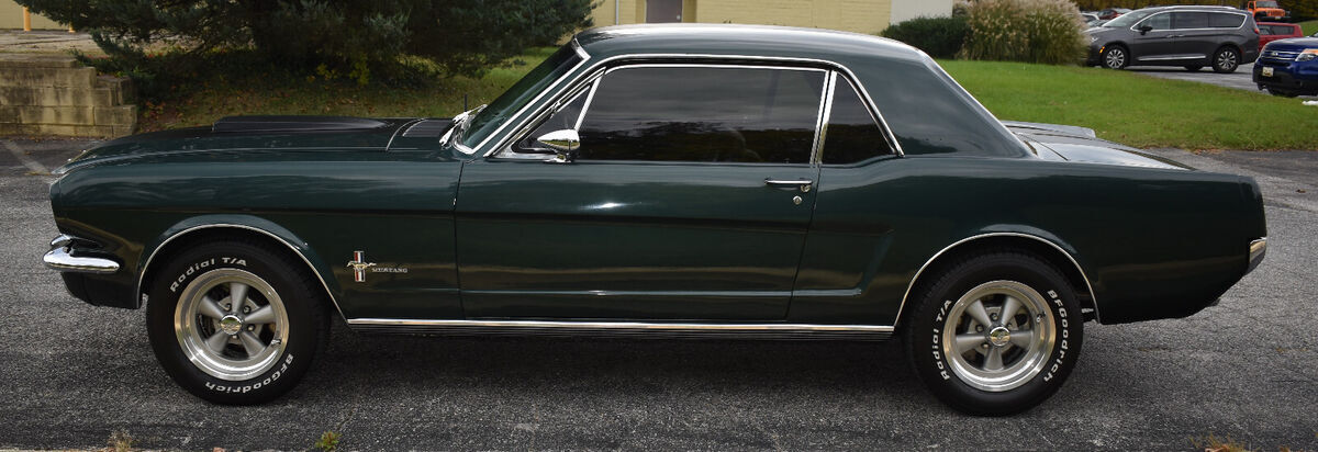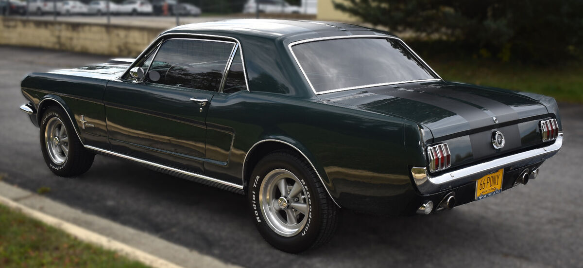 [isdntekvideo]Description: 1966 Ford Mustang coupe repainted in its original Ivy Green Metallic with ‘Shelby’ mat black stripes. Power comes from a stock (non-original) 289 c.i. Windsor engine and backed by a C4 automatic transmission.