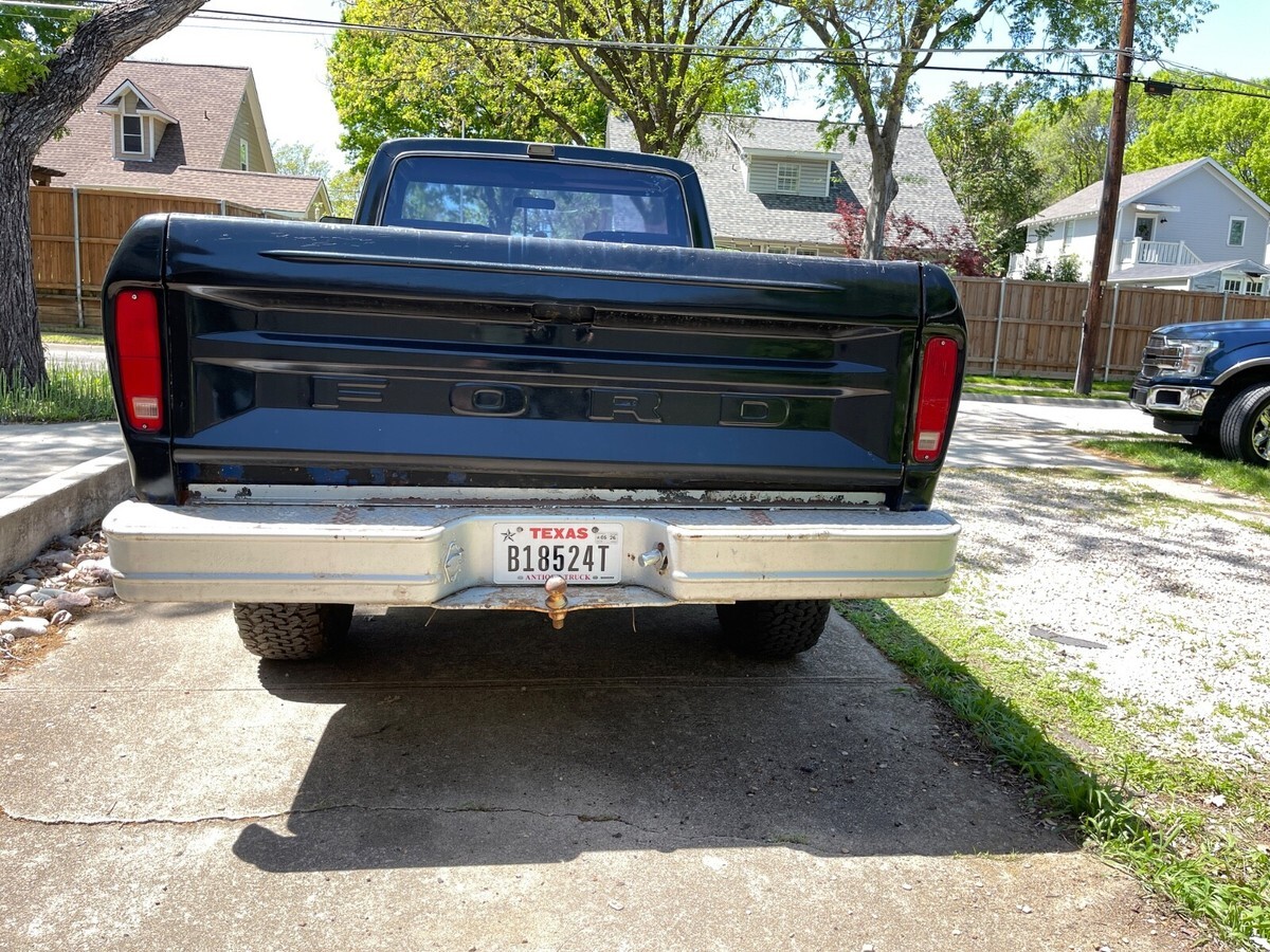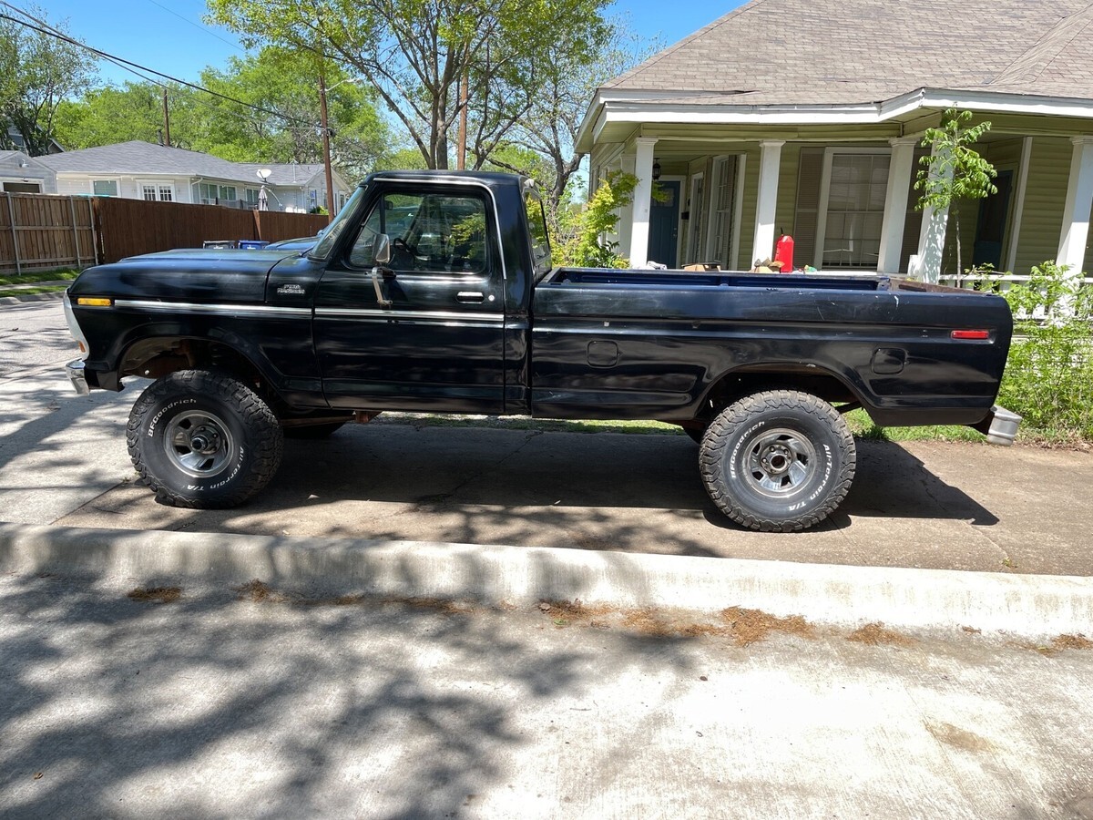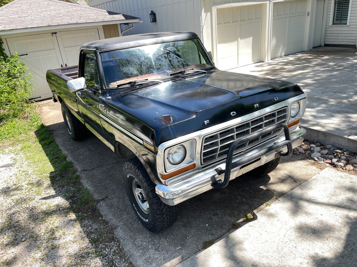 The 1979 Ford F-150 Ranger is a classic pickup truck with a unique red interior color and black exterior color. This 4WD vehicle features an automatic transmission, 8-cylinder engine, and air conditioning for added comfort. With only 3 previous owners and 44,649 miles on the odometer, this model offers a nostalgic and reliable option for classic car enthusiasts. Made in the United States, this Ford F-150 is a timeless piece of automotive history.Hard to find long bed single cab 1979 Ford F-150 with the optional Ranger package. Marti report shows this truck was originally silver with a red vinyl interior. Nicely equipped with AC and dual fuel tanks. Very solid truck with 2 areas of rust as mentioned in the condition report. The underside of the truck has surface rust, no rot. 400 V8 with a 2bbl carburetor, power steering and brakes. C6 automatic transmission. Engine doesn’t make any unusual noises nor does it have any exhaust smoke. The transmission shifts properly. The transfer case engages as it should. Front disc brakes with new lines and hoses. New front coil springs and radius arm bushings. Newer (2023 date coded) BF Goodrich All Terrain K02 tires on factory chrome steel wheels. The tires are 35x12.50R15. Drives and stops like a 1979 F150.The exterior paint is driver quality with areas of clear coat peeling, fading and paint missing. The windshield has a crack at the upper center portion. The back glass is tinted and in nice shape. The tailgate is missing the handle but opens and closes fairly easily using the rods. There is an aftermarket push bar mounted on the front. The hood opens and closes as it should.The interior has a later model cloth bench seat that is torn on the drivers side. The dash trim is in a box. The cluster is an original full gauge setup and works aside from the fuel gauge. The original AC panel is there with the dual fuel tank switch. The panel isn’t connected to anything. The dash pad is missing as are the inner door panels. The headliner is falling down on the right side and missing on the left side. The door opening weatherstripping is dry rotted and falling apart. The keys operate both door locks and the ignition switch. It appears all of the factory AC components are present behind the dash and under the hood.This vehicle can be operated as is or utilized as an ongoing project. The driver side floor rust is shown in the pictures as is the driver door rust on the lower rear corner. The forward fuel tank is missing but the neck and wiring are present.This is a good solid unrestored vehicle other than the 2 mentioned areas. Installing a new carburetor this week as the engine doesn’t like to idle. Located just north of Dallas TX.Any questions feel free to call Mel at 469-400-6001.