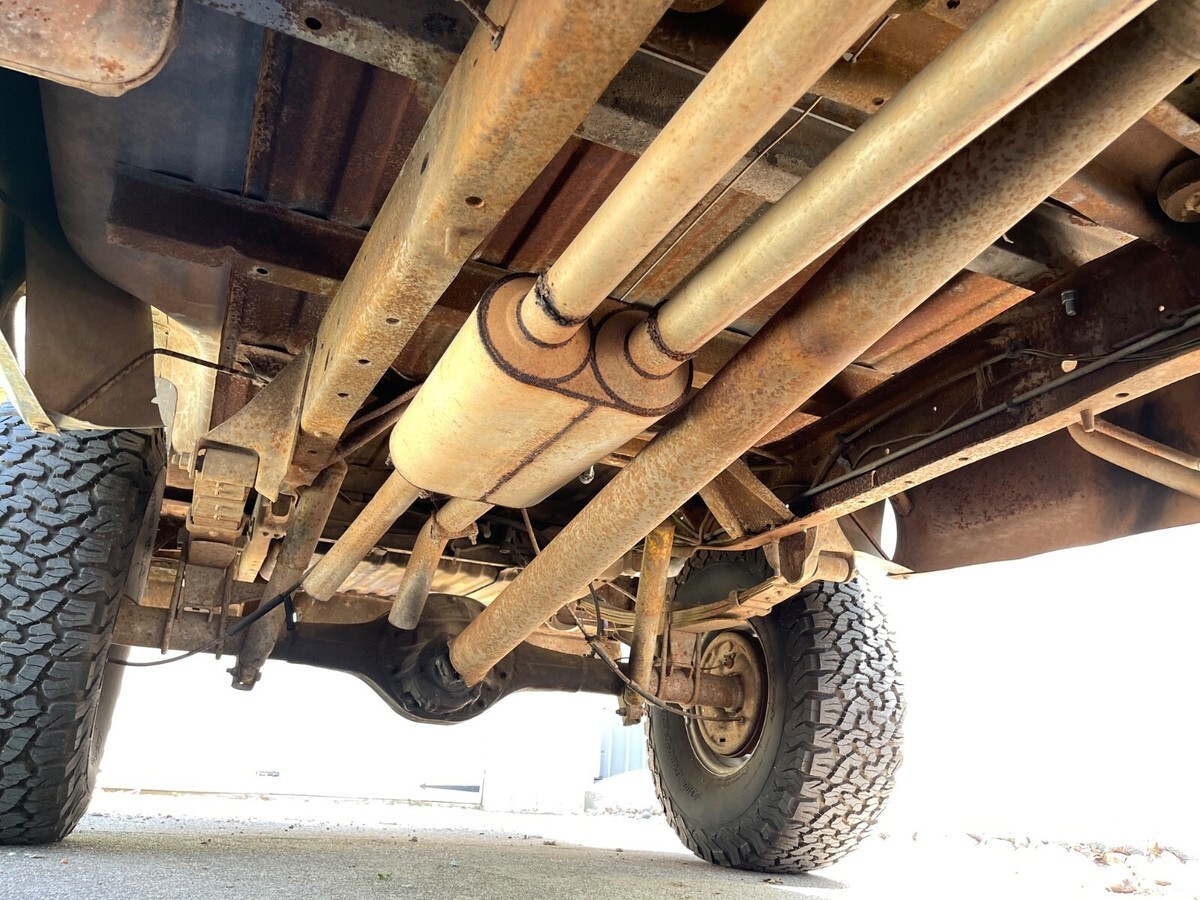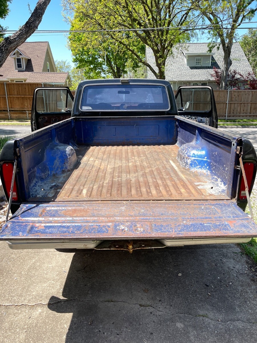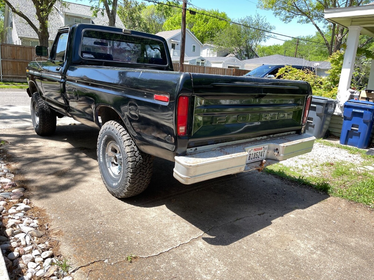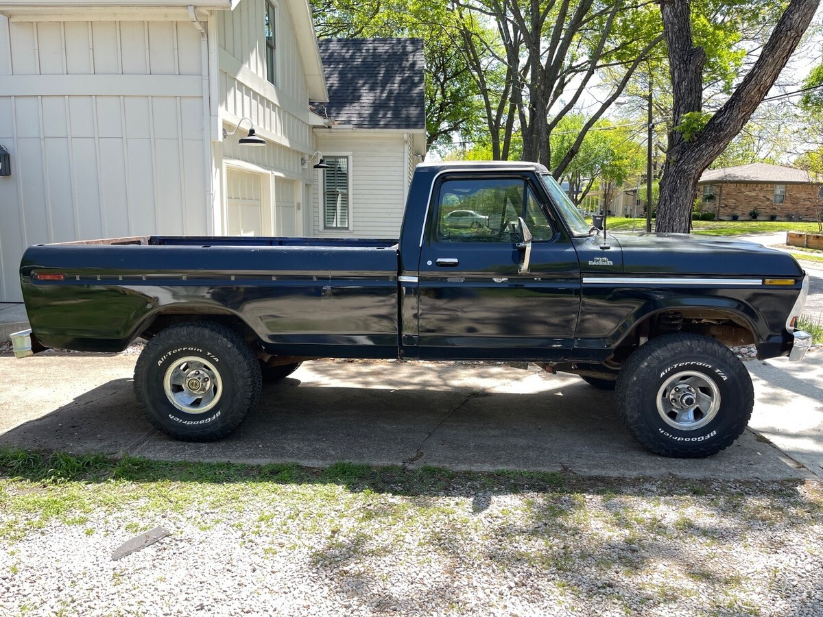 The 1979 Ford F-150 Ranger is a classic pickup truck with a unique red interior color and black exterior color. This 4WD vehicle features an automatic transmission, 8-cylinder engine, and air conditioning for added comfort. With only 3 previous owners and 44,649 miles on the odometer, this model offers a nostalgic and reliable option for classic car enthusiasts. Made in the United States, this Ford F-150 is a timeless piece of automotive history.Hard to find long bed single cab 1979 Ford F-150 with the optional Ranger package. Marti report shows this truck was originally silver with a red vinyl interior. Nicely equipped with AC and dual fuel tanks. Very solid truck with 2 areas of rust as mentioned in the condition report. The underside of the truck has surface rust, no rot. 400 V8 with a 2bbl carburetor, power steering and brakes. C6 automatic transmission. Engine doesn’t make any unusual noises nor does it have any exhaust smoke. The transmission shifts properly. The transfer case engages as it should. Front disc brakes with new lines and hoses. New front coil springs and radius arm bushings. Newer (2023 date coded) BF Goodrich All Terrain K02 tires on factory chrome steel wheels. The tires are 35x12.50R15. Drives and stops like a 1979 F150.The exterior paint is driver quality with areas of clear coat peeling, fading and paint missing. The windshield has a crack at the upper center portion. The back glass is tinted and in nice shape. The tailgate is missing the handle but opens and closes fairly easily using the rods. There is an aftermarket push bar mounted on the front. The hood opens and closes as it should.The interior has a later model cloth bench seat that is torn on the drivers side. The dash trim is in a box. The cluster is an original full gauge setup and works aside from the fuel gauge. The original AC panel is there with the dual fuel tank switch. The panel isn’t connected to anything. The dash pad is missing as are the inner door panels. The headliner is falling down on the right side and missing on the left side. The door opening weatherstripping is dry rotted and falling apart. The keys operate both door locks and the ignition switch. It appears all of the factory AC components are present behind the dash and under the hood.This vehicle can be operated as is or utilized as an ongoing project. The driver side floor rust is shown in the pictures as is the driver door rust on the lower rear corner. The forward fuel tank is missing but the neck and wiring are present.This is a good solid unrestored vehicle other than the 2 mentioned areas. Installing a new carburetor this week as the engine doesn’t like to idle. Located just north of Dallas TX.Any questions feel free to call Mel at 469-400-6001.