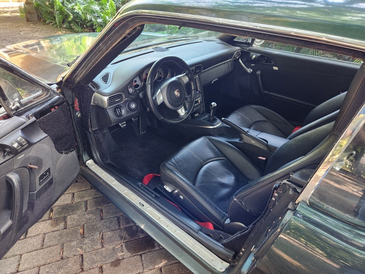 1966 MUSTANG mounted on a 2008 PORSCHE997S convertable.All the heavy work is done.Some cosmetics left to do.Runs & Drives great..All gauges/lights/wipers work.Got new tires yesterday.Needs radio led screen &heat ac control panel.Has hi parasitic battery draw.Will drain the battery down in 4 days.I installed a batt on/off switch under the dash.works fine if you remember to use it.Porsche has 53600 original miles. clean & clear fla title for mustang,clean & clear salvage title for porsche.
