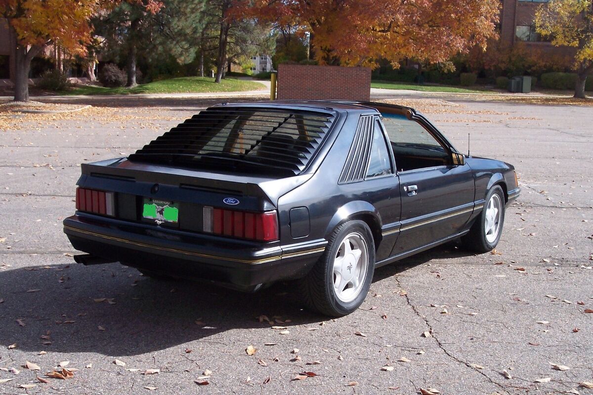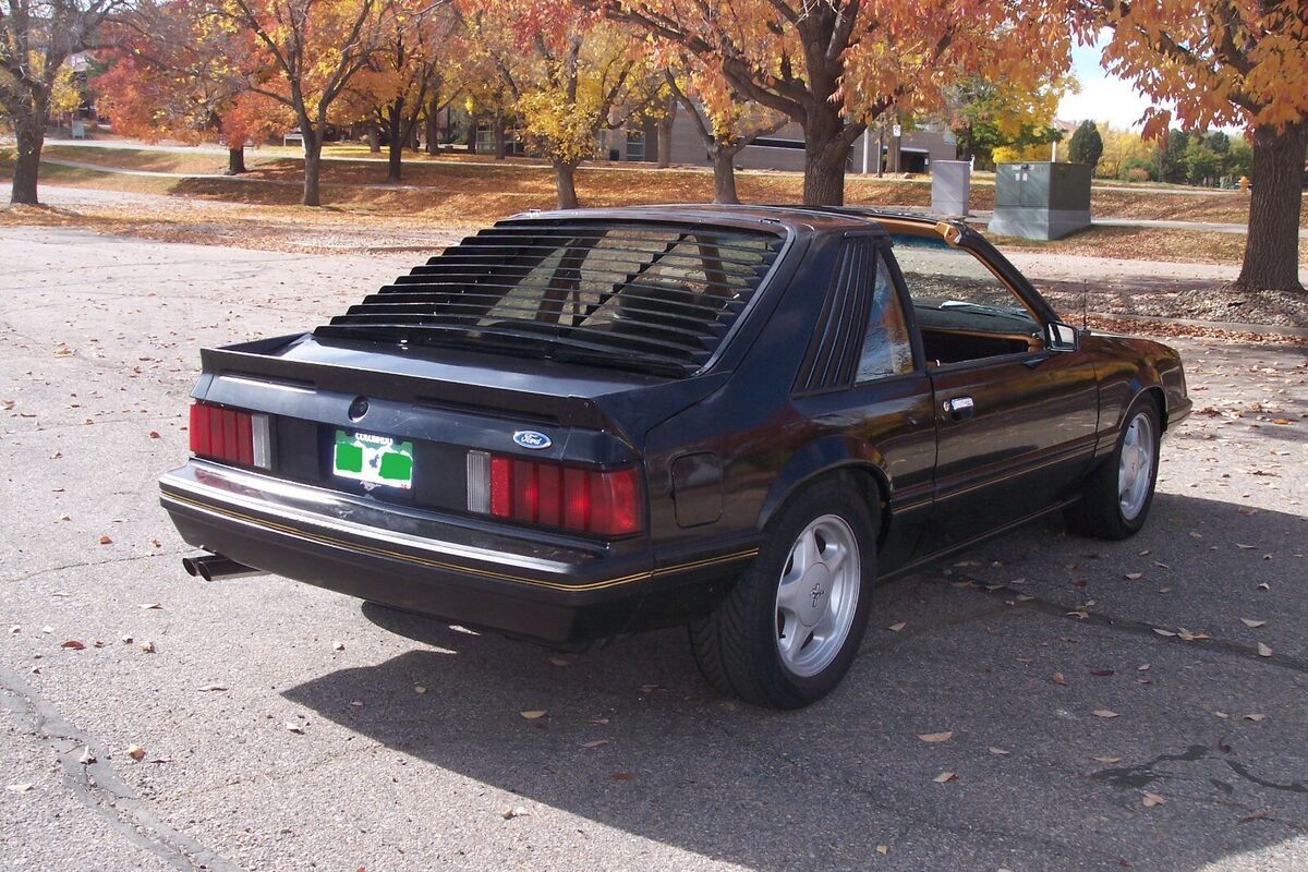 1982 Mustang T-Top w/ rear window louvers, original Black vehicle.
