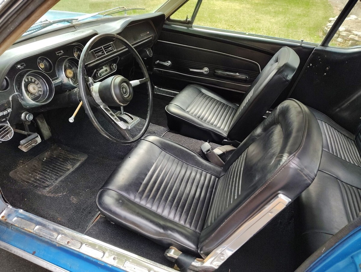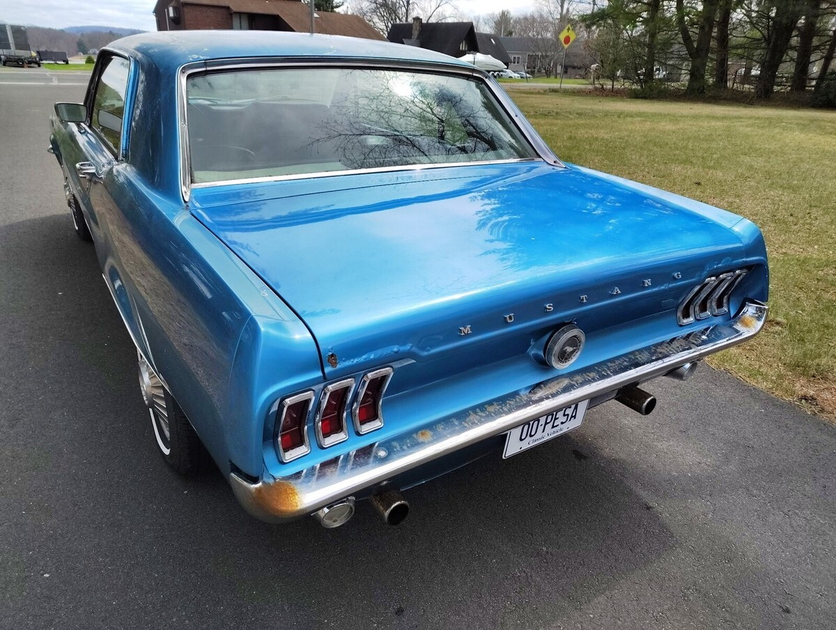1967 Ford Mustang Coupe, 289 V8 engine and automatic transmission. This Mustang is a good weekend driver, needs some tlc to be a show vehicle. Body is in decent shape overall, there is some rust on the rear trunk lid and bumper. Paint looks good from a distance but it is faded in a few areas and has some bubbling. Interior is in good shape, currently no headliner but I have a new one to go with the car. Currently registered and driven, was stored during the winter. Vehicle is sold as-is as shown, buyer is responsible for vehicle pick up