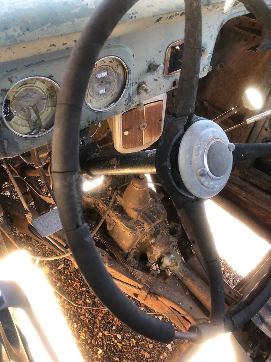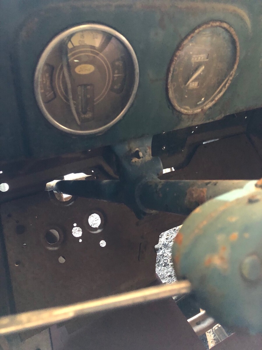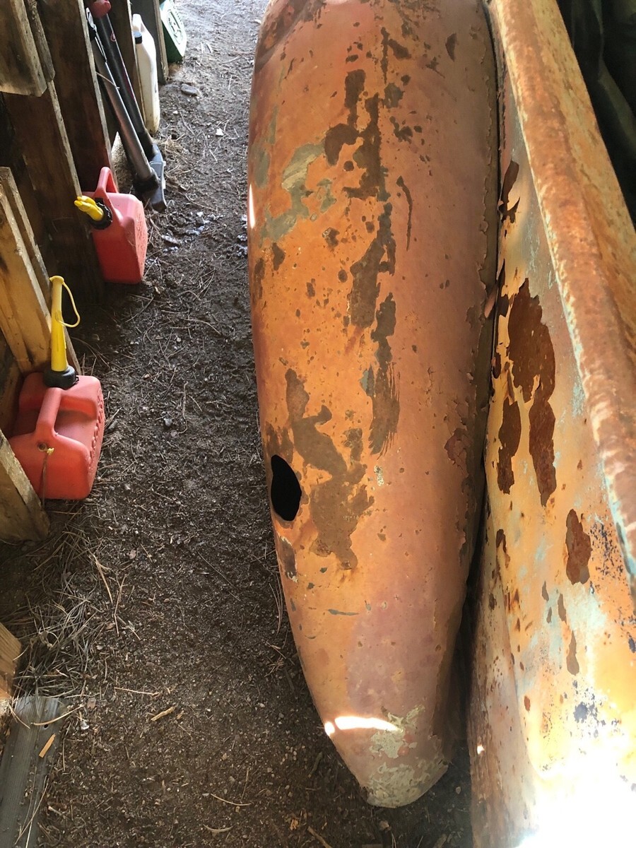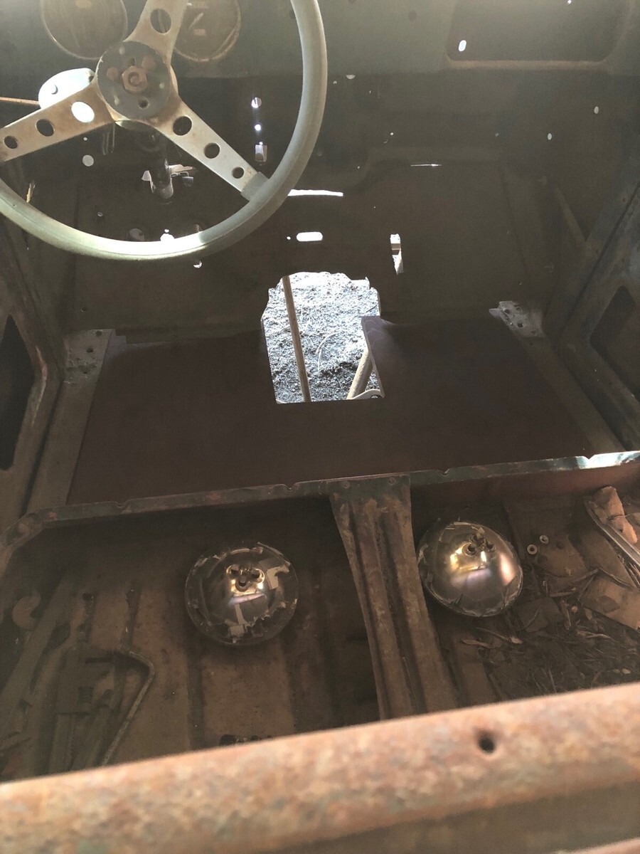 This body style was only 1938 and 1939 making the parts interchangeable, so it would be a tragedy if they are not sold as a pair. The 1939 has the yellow front fenders does have the bed on it, but no driveline. The 1938 does have the driveline including the flathead V-8, it’s missing the bed, but I do have the tailgate.