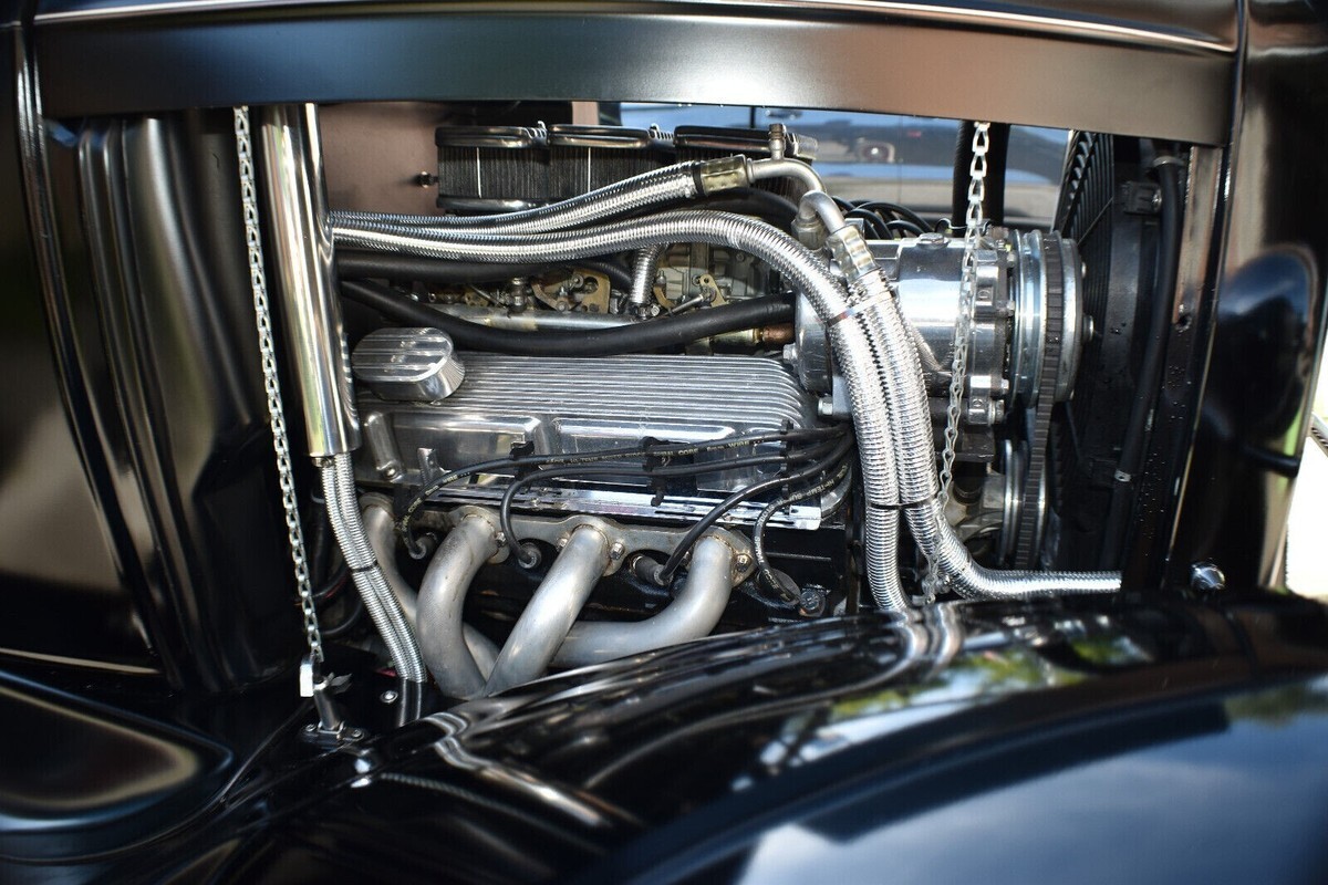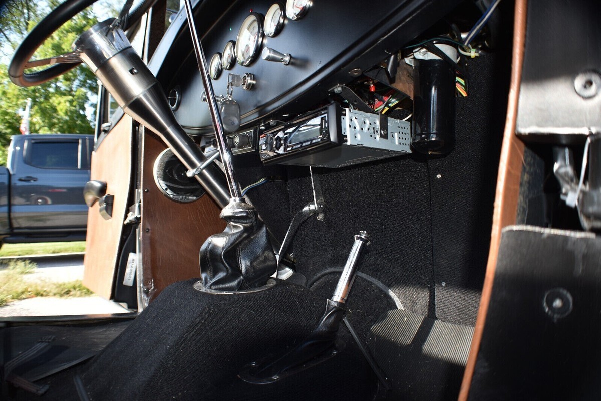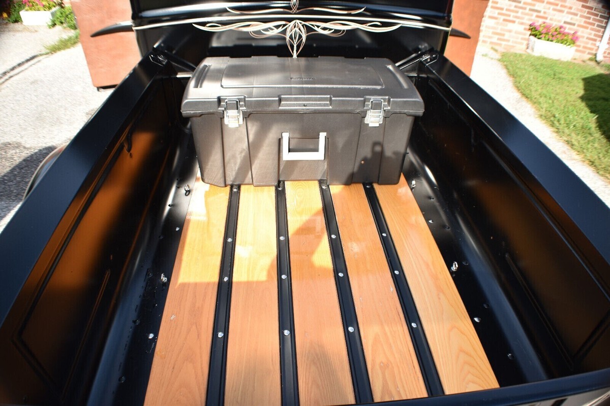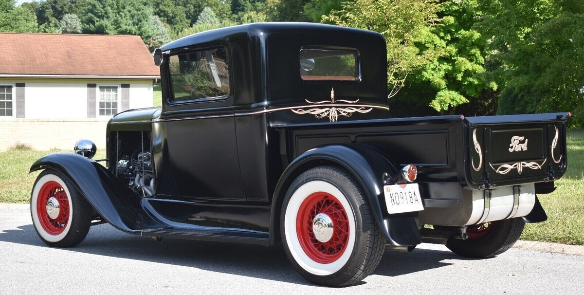 1930 Ford Model A Fiberglass pickup with 4-inch stretch. Cab, Fenders and running boards are fiberglass. 1932 ford Grille shell, hood, hood sides and bed are steel. Powerplant is a 302 summit crate motor with a Ford AOD transmission. Frame is aftermarket with coil overs all around. The truck is equipped with tripower, power brakes, manual steering, air conditioning and power windows. The truck also has shaved door handles with door poppers.