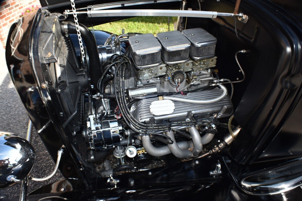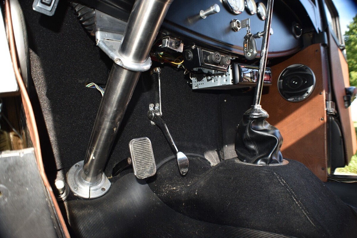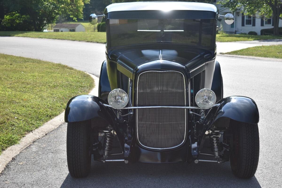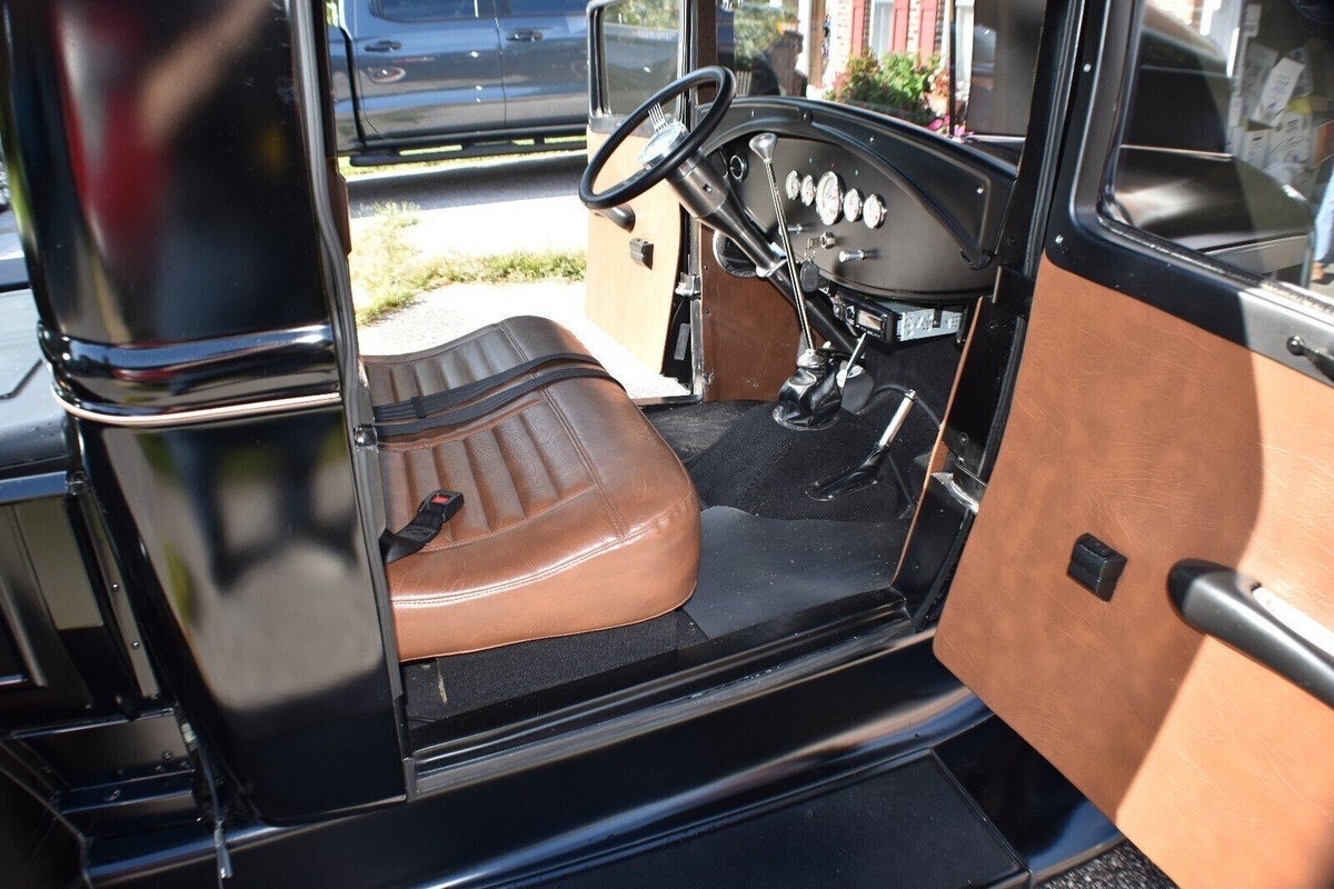 1930 Ford Model A Fiberglass pickup with 4-inch stretch. Cab, Fenders and running boards are fiberglass. 1932 ford Grille shell, hood, hood sides and bed are steel. Powerplant is a 302 summit crate motor with a Ford AOD transmission. Frame is aftermarket with coil overs all around. The truck is equipped with tripower, power brakes, manual steering, air conditioning and power windows. The truck also has shaved door handles with door poppers.