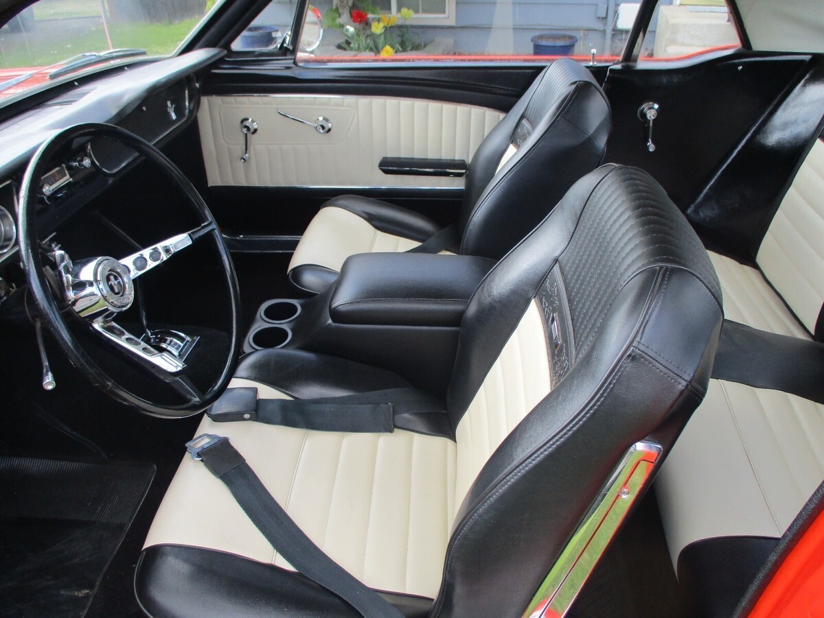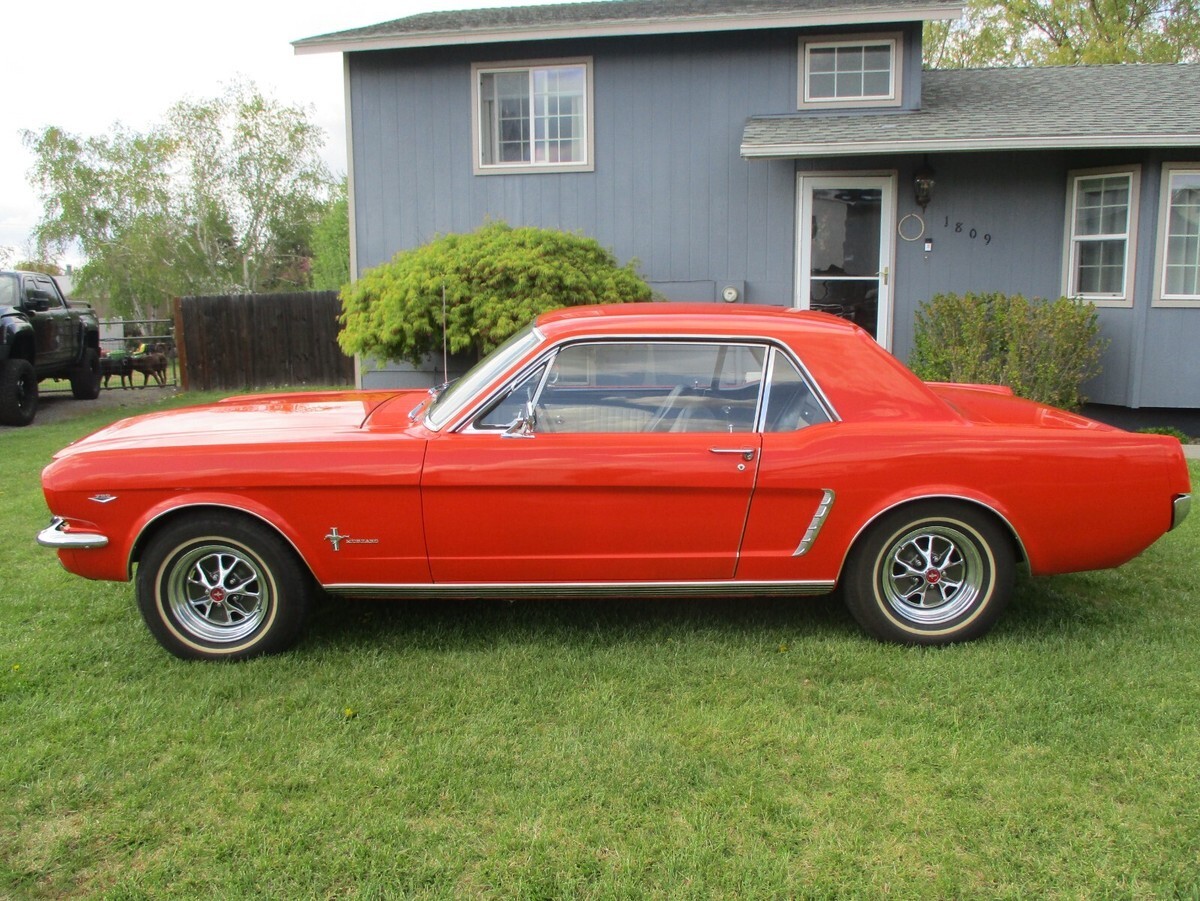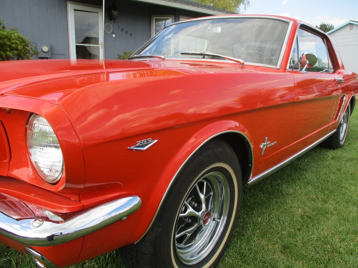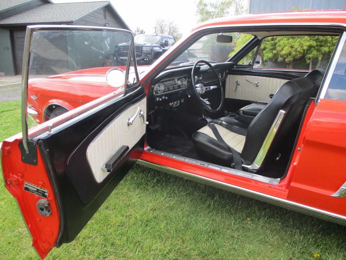 Up for sale is a nice little 65 Ford Mustang that the family wants to sale as the father has passed. This little Mustang was one in his collection, and it has had a restoration several years ago. The speedo is showing 123553 miles but only 1001 miles have been put on the car after the restoration as the father's health was starting to decline. It had 122552 miles on it before the restoration and the car has been in storage for about 2 years. During the restoration a 302 ci engine with four-barrel carburetor replaced the 289 ci engine and new dull exhaust runs out the back. The car has the C-4 automatic transmission, power steering and the brakes work well. All lights work as they should as do the wipers, heater, radio and horn. The body and paint look very nice, and I couldn't see any signs of rust anywhere. The bottom of the car is also rust free. Paint is in its original color "Poppy Red" and I only found one small spot on the front of the hood that has a nick in the paint. (please look at all pictures closely) Windows roll up and down as they should but the windshield dose have several light scratches in it when looking out from inside. New chromed bumpers are in place as are new, taillight bezels, gas cap, side molding trim, emblems, mirrors and rocker moldings. The interior is mostly new with new Pony style seats front and rear, new dash pad, new door panels, new carpeting and new headliner but the headliner needs retucked at the rear over the rear window. (look at pictures) The driver's seat also need the back rest adjustment bolt replaced. Also, there is a new center consol storage between the front seats. Its running Very nice Style Steel GT wheels with new tires. A car cover dose come with the car as dose a cool Mustang book. I'm listing this nice little Mustang for the family, and I will take all questions to them. Buyer is responsible for shipping and all shipping costs. We will help with loading on our end and in anyway we can or just come drive it home. For your questions, please call Bill 208-750-0000.