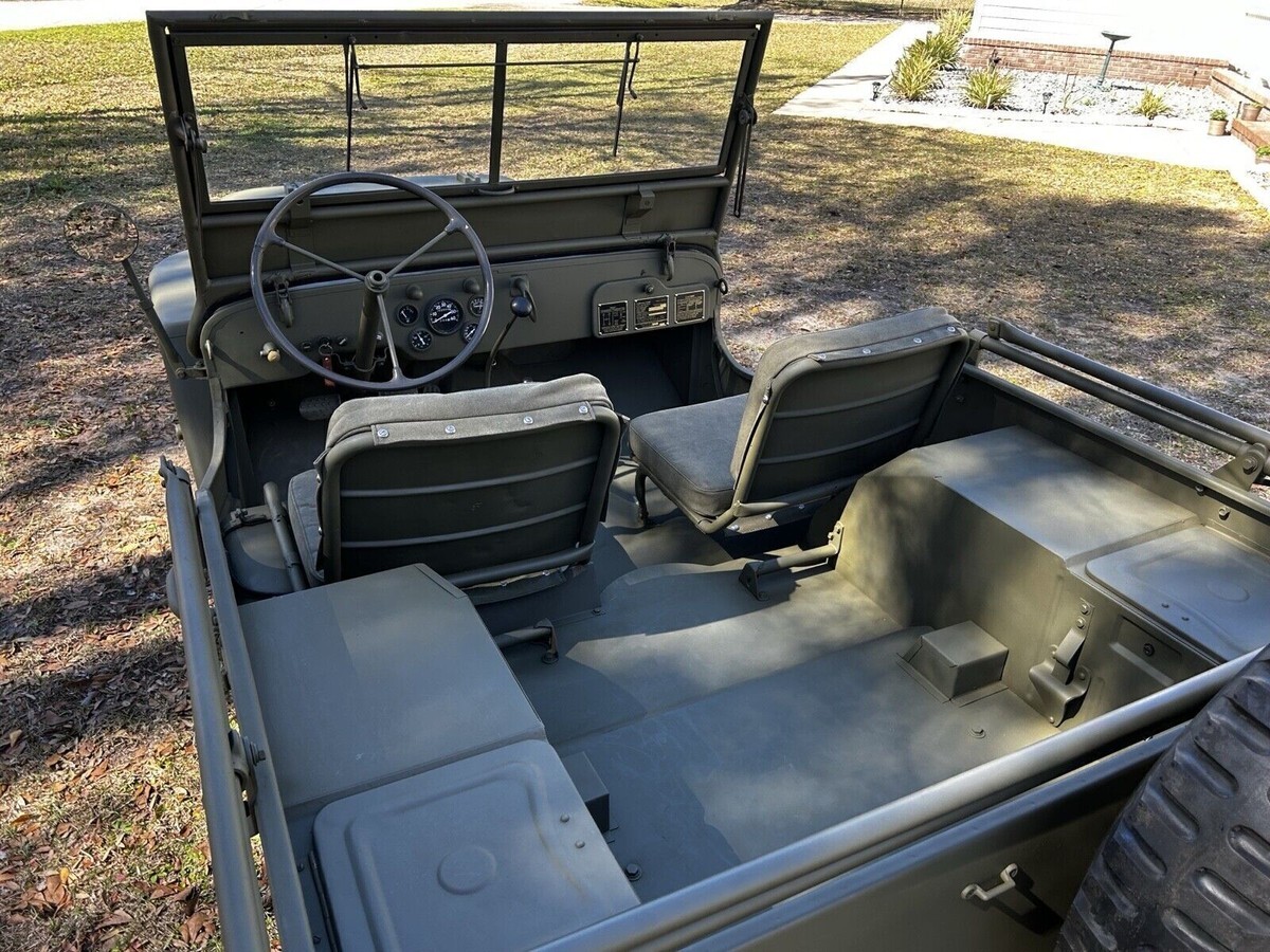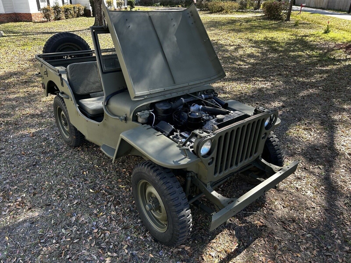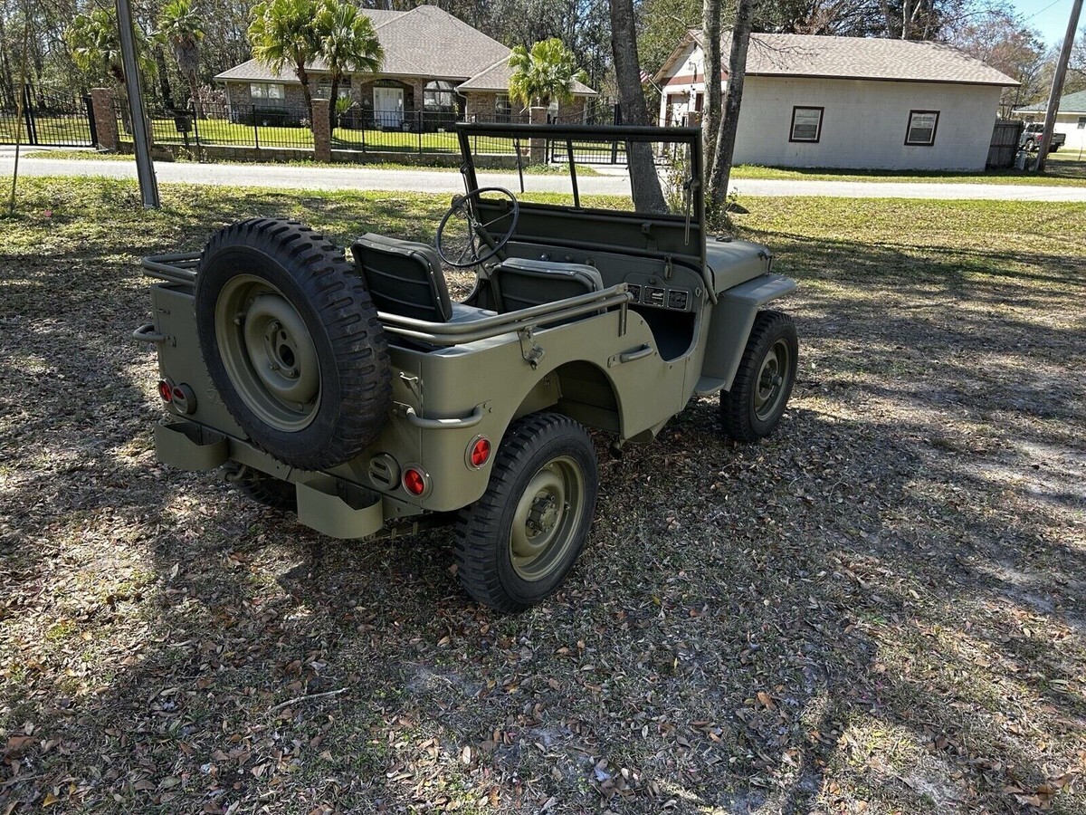 1942 Ford GPW newly restored runs and dives perfectly has about 10 miles on the rebuilt engine. Very clean some minor thanks can be done but overall a very clean and nicely put together jeep. Tub ford script and front fenders are reproduction the rest of the body is original. Axels and t-84 transmission/transfer case have been rebuilt as well. Rear axel has scalloped axels. All new tires, fuel tank fuel lines and wiring harnesses and bulbs and such. Jeep is set up for 12v for ease of use and way faster cranking has electronic voltage regulator that can switch to 6v. Frame is a 45 gpw frame motor is gpw 16964 it was registered off that when I purchased it. t-84 is GPW rh fill plug. Comes with some small extra parts. horn is not hooked up. Florida title Pm with any questions. Location is Jacksonville Florida