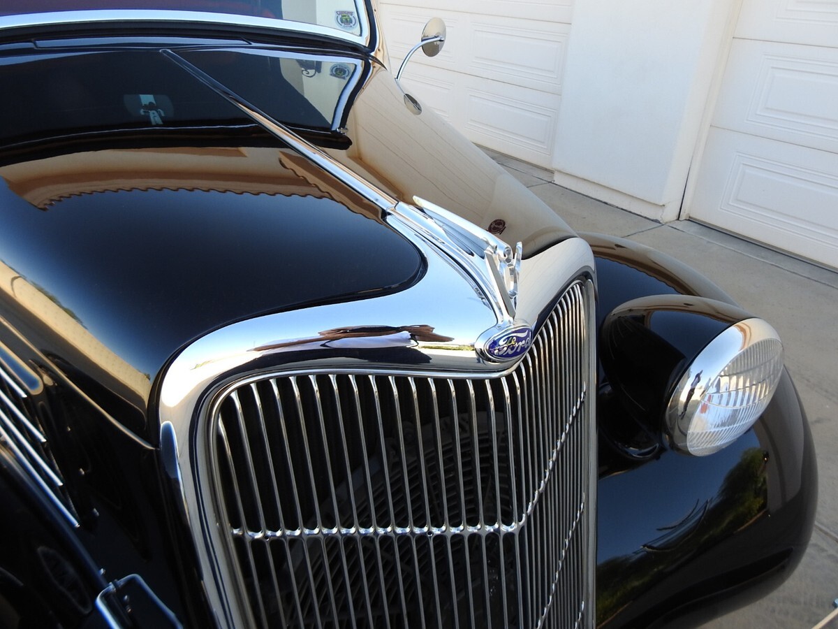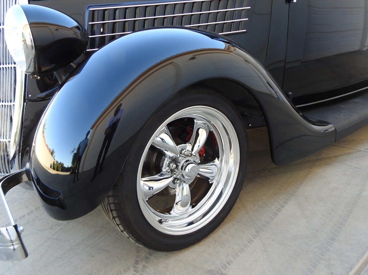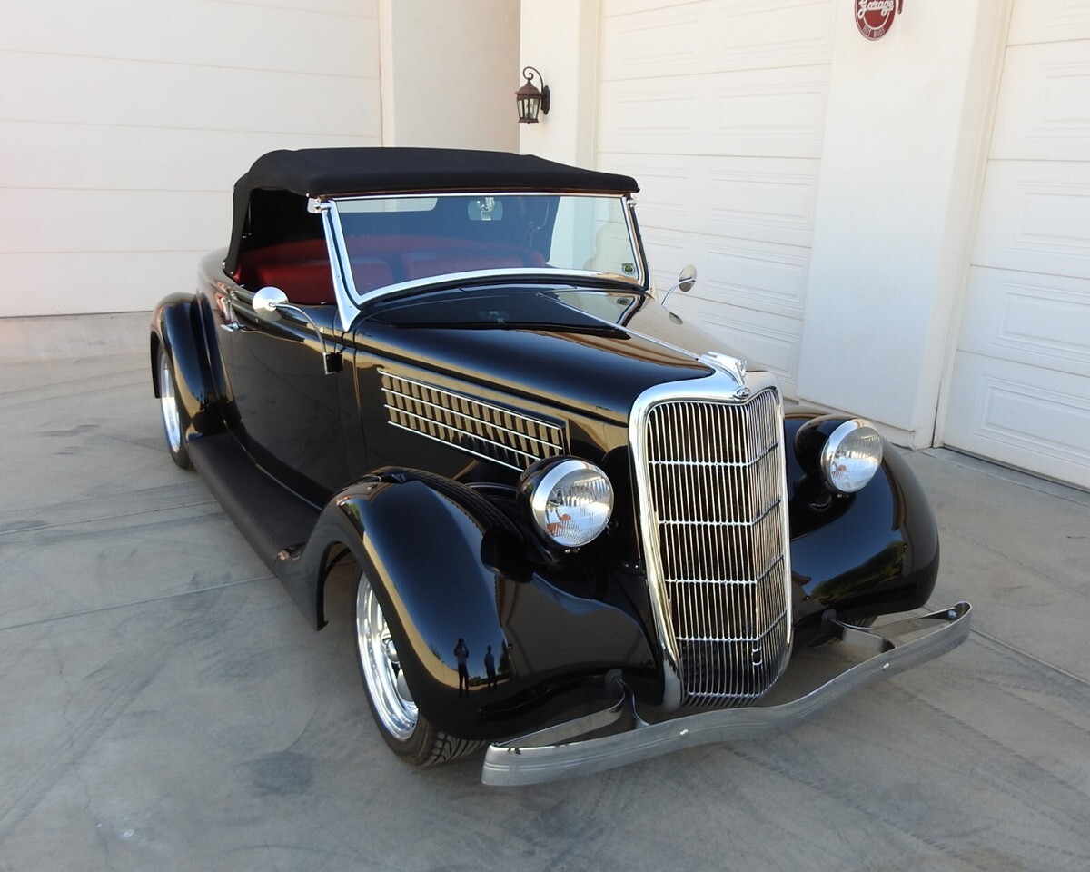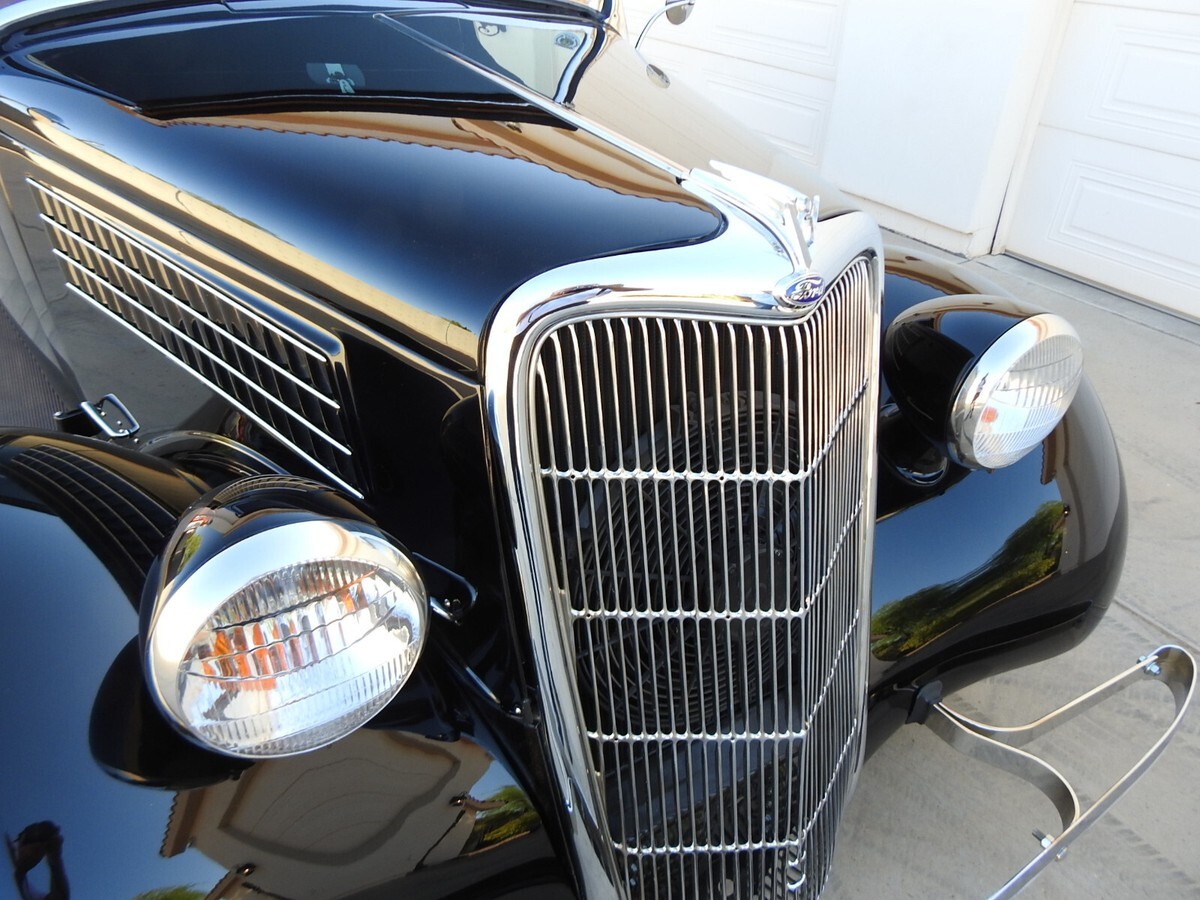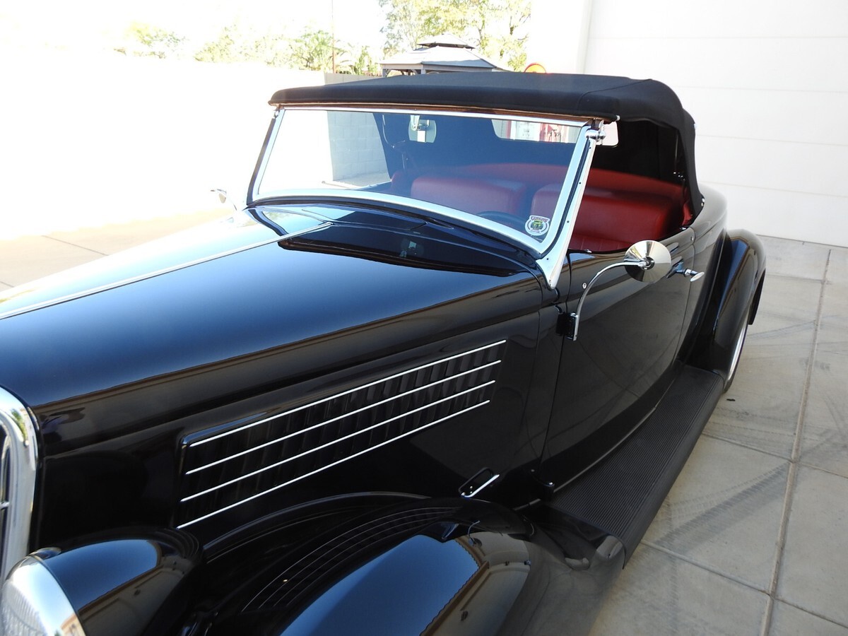 Early Ford roadster production numbers were well below the other body styles, and '35 Roadsters are some of the hardest to find. This '35 Roadster from this estate was built from the ground up, not a cosmetic built but one to keep and drive. And with only 882 miles showing on the odometer it is hardly broke in. All steel, no fiberglass on this ride. The jet black two-stage paint literally looks a mile deep. (If you break your bathroom mirror you can shave be looking into one of the doors!) Stock Roadster windshield posts, not chopped or laid back. Stock hood with stainless steel handles on both sides. Halogen headlights are set into stock headlights to light up the night.