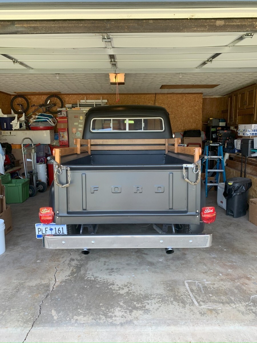 5.0 Motor, C-4 Transmission, New Radiator, Front Disc Brakes, New King Pins, Original Front Axle, Power Steering, American Racing Mags, New Tires and Rims, 1970 Mach1 Rear, Wood Bed, Side Rails and Running Boards, Sliding Rear Window, Bench Seat, Stainless Front and Rear Bumpers.