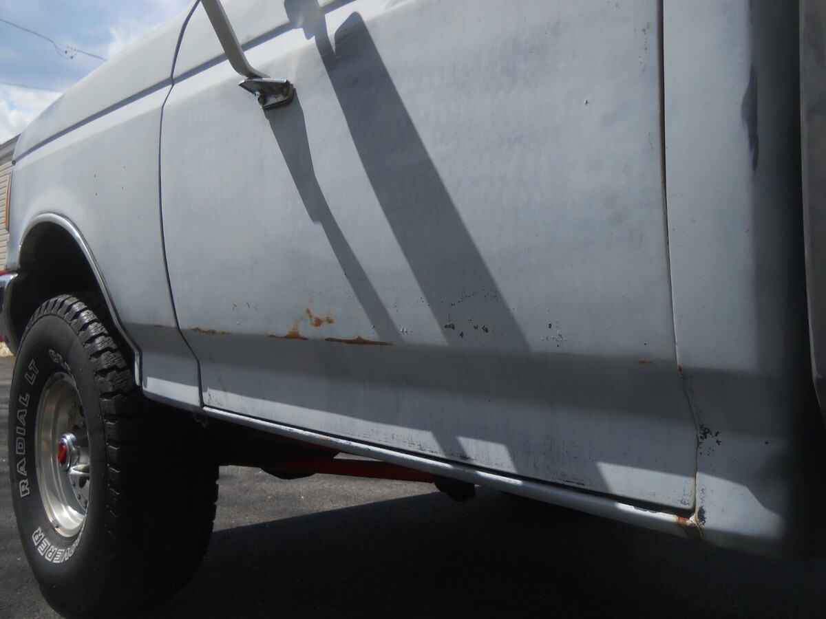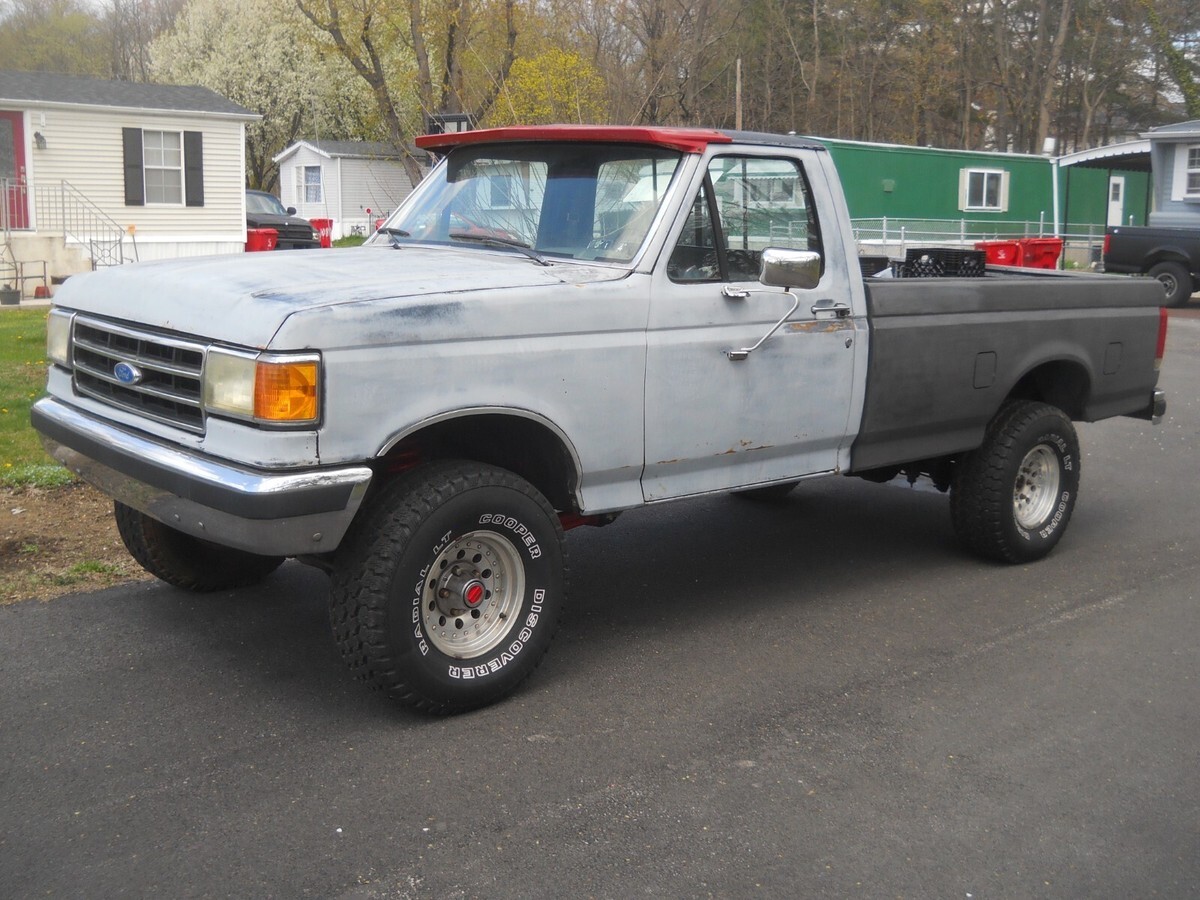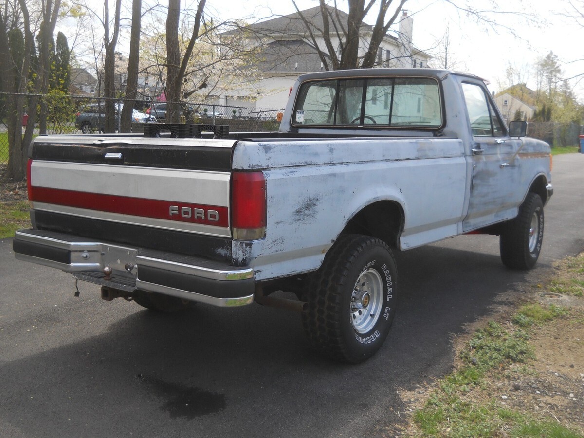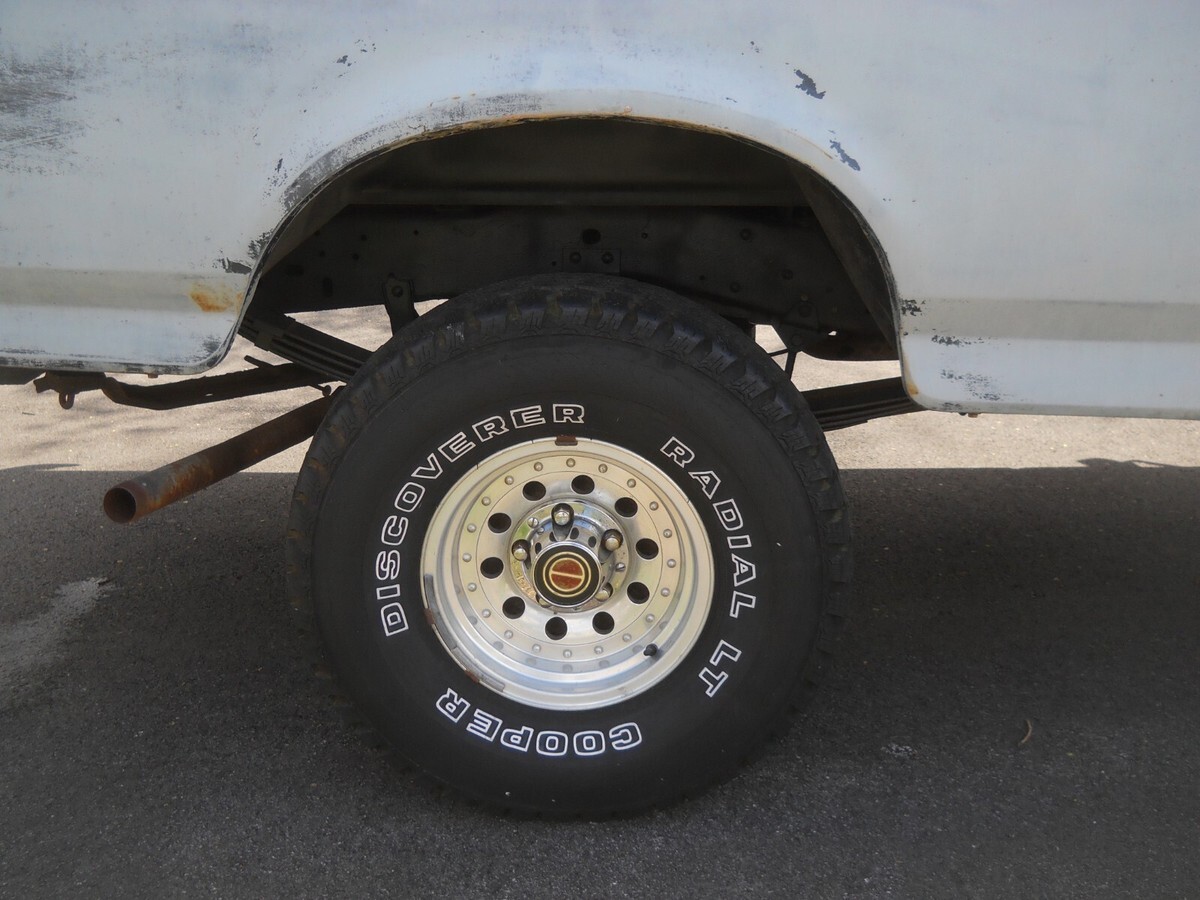 a 1987 Ford F-150 4x4 with a V8 engine and manual transmission this truck has been in my family since it was new and has been passed down to three owners in the family, it's been setting for 28 years mostly in the garage. my stepdad was the last owner and he was just starting to work on it then he became sick and passed away, so I don't know what all was done to it, it hasn't been on the road since 1998. the truck starts and runs and drives but due to its setting the tires are dry rotted and needs work before road ready. it has 62000 original miles it has a new gas tank; it also has a 2in lift kit on it, the floors are solid the body solid. being sold as is. please if you have any questions ask me before bidding. look at the pics carefully. pick up only. I had to relist this truck because someone hacked my acct and changed my description on this truck. Thanks for looking check out my other auctions