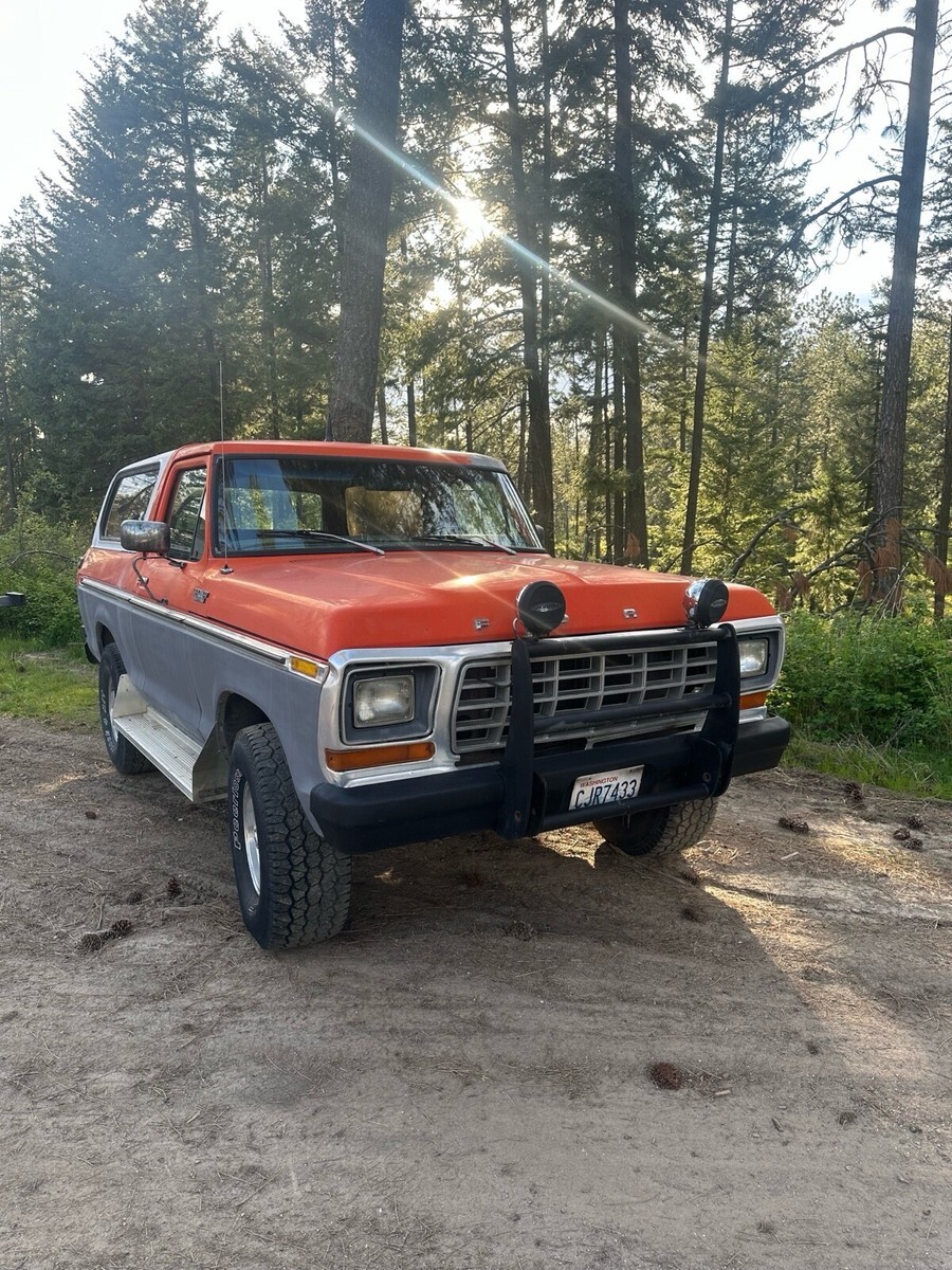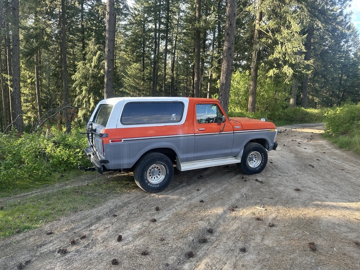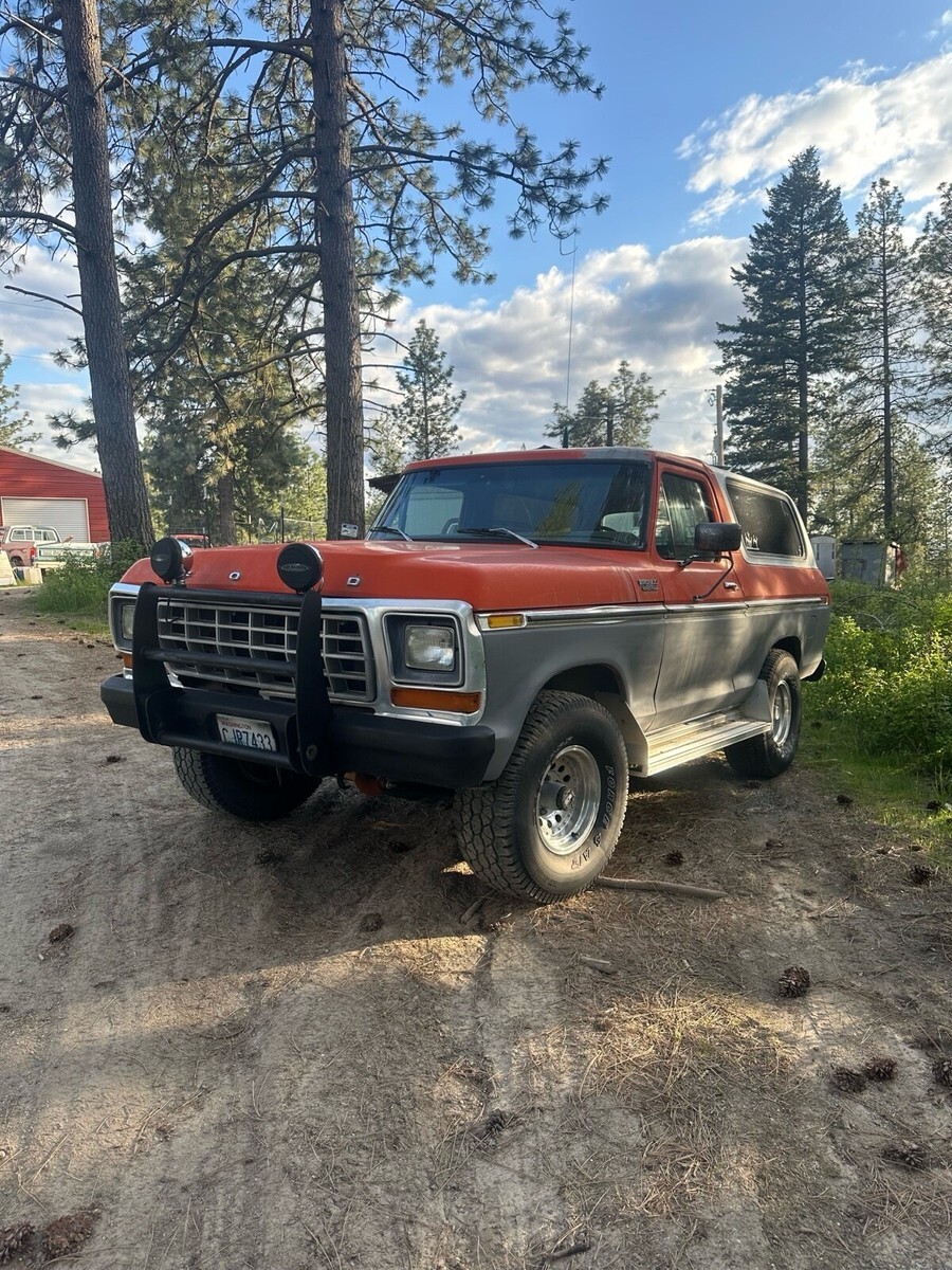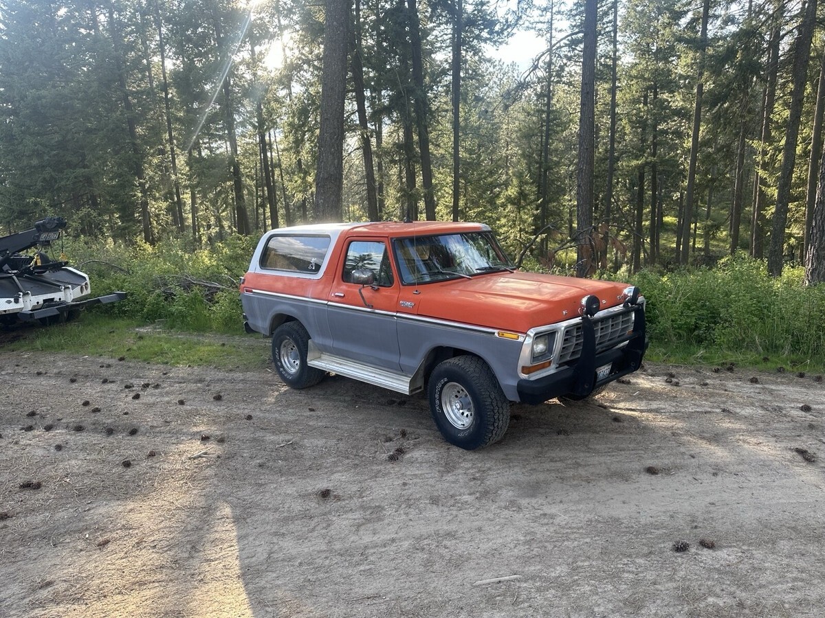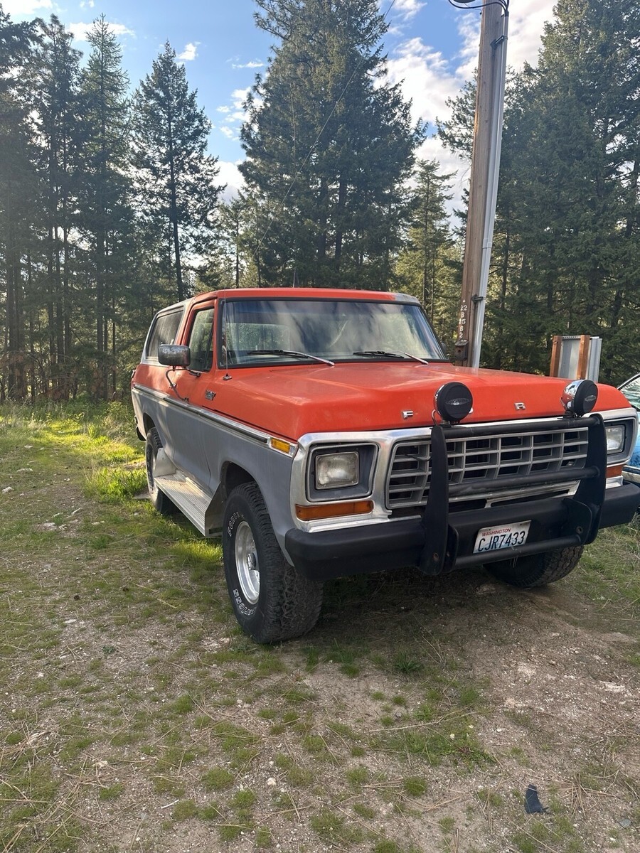 This Ford bronco from 1979 spent most of its life in Colorado and Washington state. It has been upgraded to a push button start for security reasons also, and the electric rear glass window rolls up and down with the key at the tailgate or with the chrome switch mounted on the dash and functions very well. I still drive this Bronco into town on occasion and everybody loves it when I go to the gas station especially. Somebody always comes up to me to talk about it. It is freeway worthy highway worthy just shift it into fourth gear and it will cruise right down the highway, smooth and straight. This vehicle is 46 years old. It is definitely a classic and many people are very amazed that it is still in good running condition however because it is a 46 year old vehicle I am selling it in as is where is condition. I am willing to provide free airport pick up at Spokane international airport. My ranch is about 20 minutes northeast of Spokane, Washington. I am willing to add a courtesy drive the bronco into Spokane to assist with delivery and or pick up, please let me know if you have any questions. I will try to get to your questions when I have time title is clean title is in my name. It is NOT a branded title. I paid somebody to professionally clean the aluminum rims recently. The tires are usable and drivable and are perhaps 40% tread however you may want to put new tires on it at some point. Truck will start even after sitting for several months. It is very reliable. It runs and drives forward and reverse are functioning properly, and the clutch is functioning properly and 4 gears and reverse are functioning properly. Also, it has power steering that works wonderfully the horn works properly. The wipers work properly the heater works properly. I find it to be a very comfortable and pleasing to drive and operate vehicle. I hope if you are the winner of this Ford bronco that you enjoy it as much as me and my family have enjoyed it.
