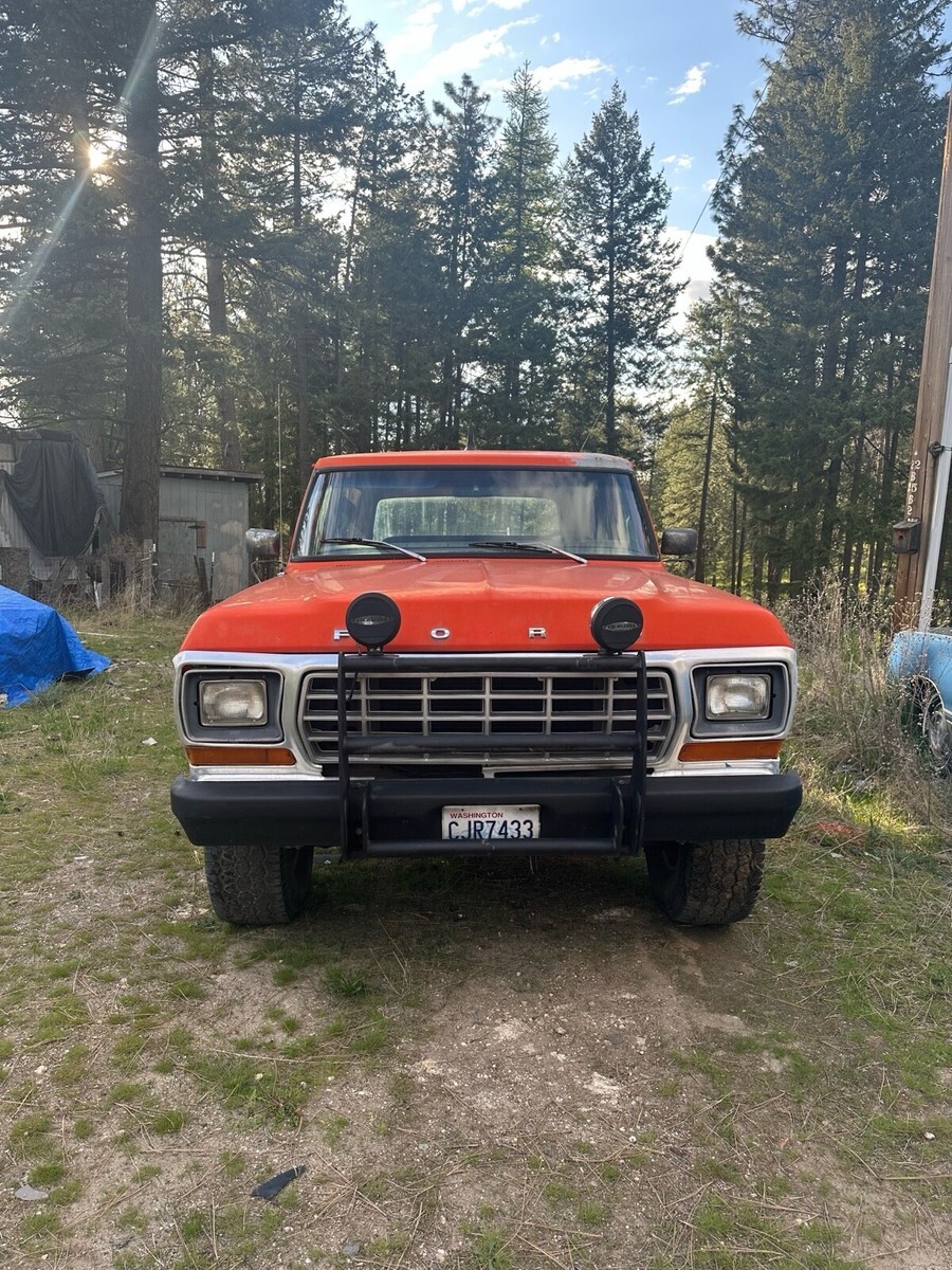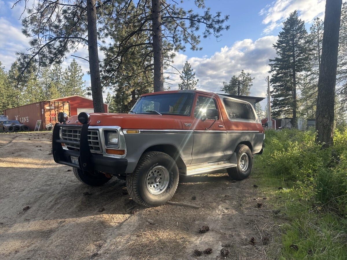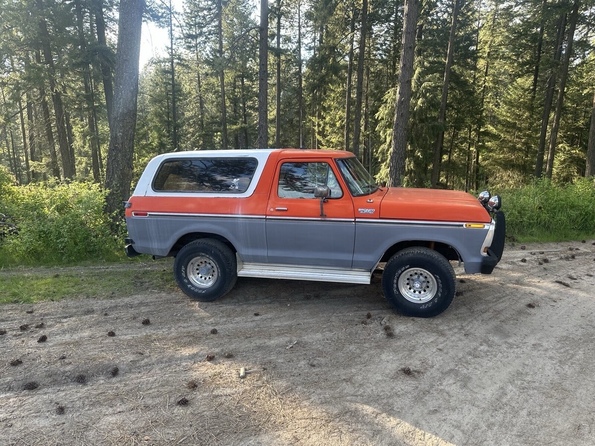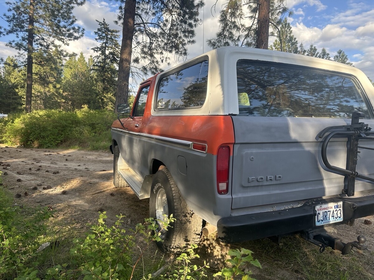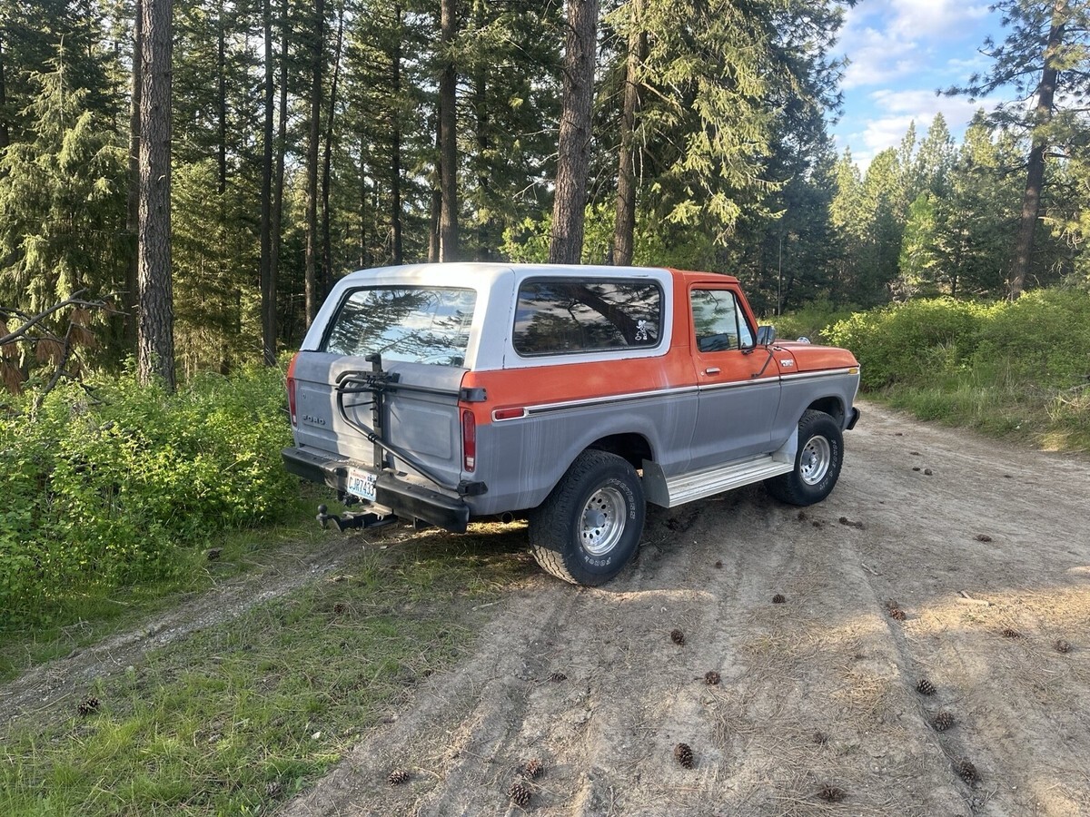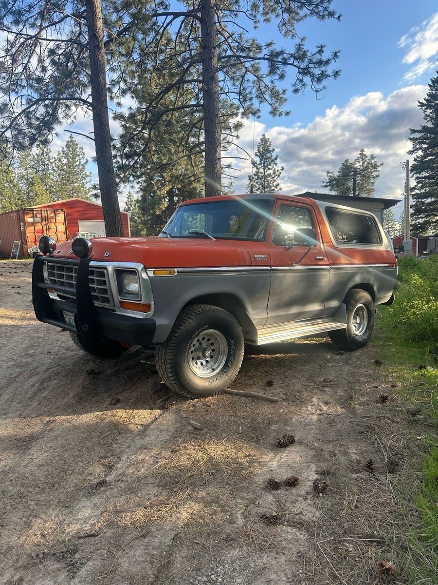 This Ford bronco from 1979 spent most of its life in Colorado and Washington state. It has been upgraded to a push button start for security reasons also, and the electric rear glass window rolls up and down with the key at the tailgate or with the chrome switch mounted on the dash and functions very well. I still drive this Bronco into town on occasion and everybody loves it when I go to the gas station especially. Somebody always comes up to me to talk about it. It is freeway worthy highway worthy just shift it into fourth gear and it will cruise right down the highway, smooth and straight. This vehicle is 46 years old. It is definitely a classic and many people are very amazed that it is still in good running condition however because it is a 46 year old vehicle I am selling it in as is where is condition. I am willing to provide free airport pick up at Spokane international airport. My ranch is about 20 minutes northeast of Spokane, Washington. I am willing to add a courtesy drive the bronco into Spokane to assist with delivery and or pick up, please let me know if you have any questions. I will try to get to your questions when I have time title is clean title is in my name. It is NOT a branded title. I paid somebody to professionally clean the aluminum rims recently. The tires are usable and drivable and are perhaps 40% tread however you may want to put new tires on it at some point. Truck will start even after sitting for several months. It is very reliable. It runs and drives forward and reverse are functioning properly, and the clutch is functioning properly and 4 gears and reverse are functioning properly. Also, it has power steering that works wonderfully the horn works properly. The wipers work properly the heater works properly. I find it to be a very comfortable and pleasing to drive and operate vehicle. I hope if you are the winner of this Ford bronco that you enjoy it as much as me and my family have enjoyed it.