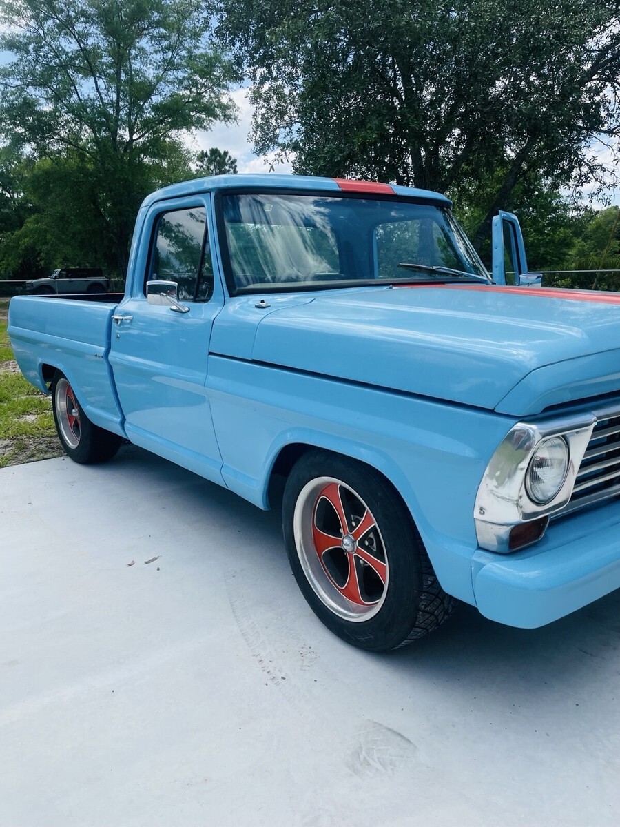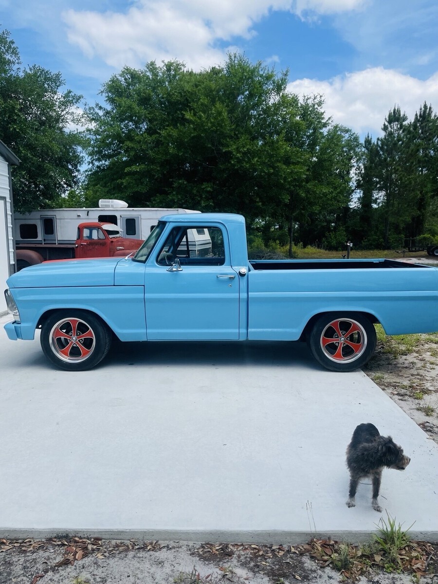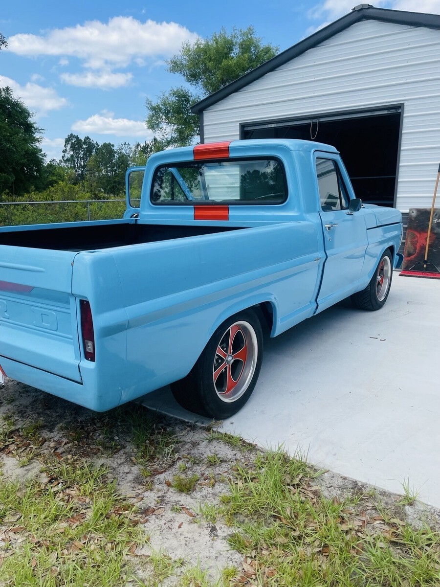 This 1967 Ford F100 is a modified vehicle with updates to the exterior, interior, and drivetrain. The owner has had it for 5+ years and has enjoyed taking it to car shows. The vehicle runs great and has a clean title with 52,106 miles on it.