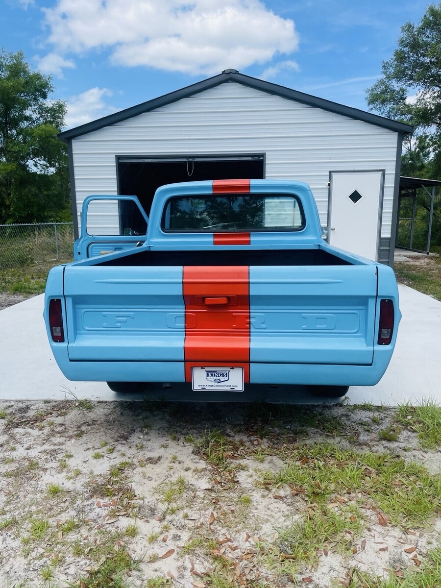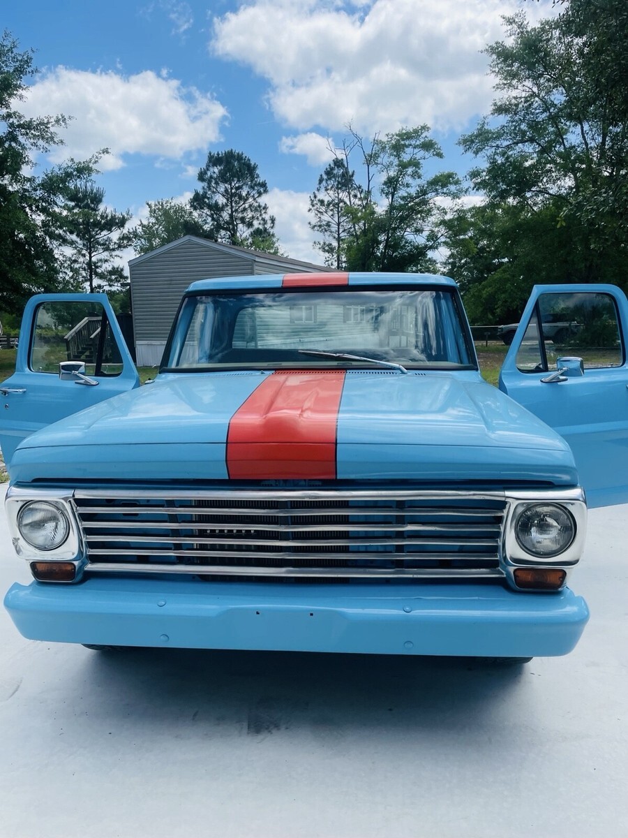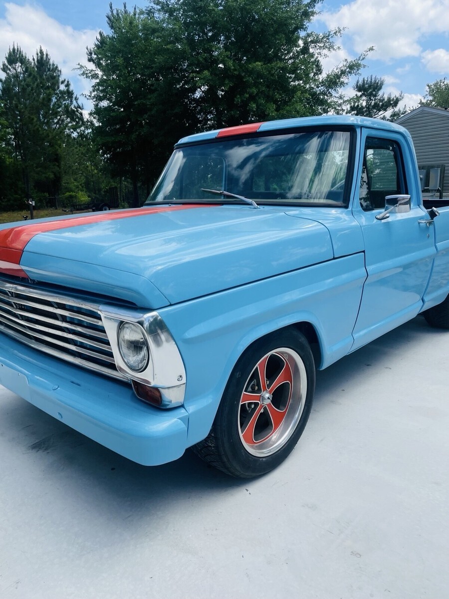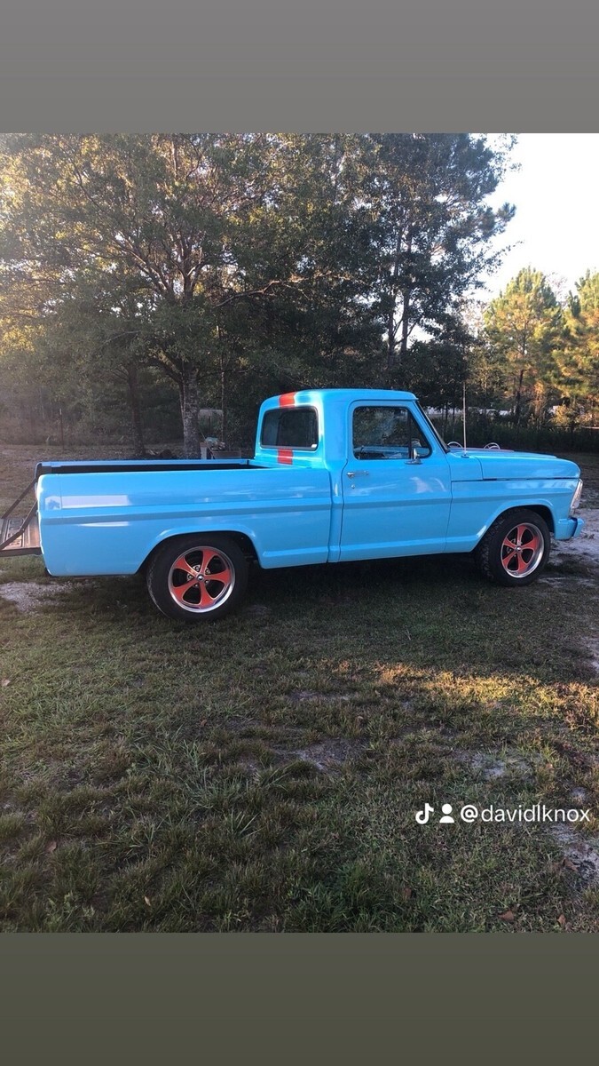 This 1967 Ford F100 is a modified vehicle with updates to the exterior, interior, and drivetrain. The owner has had it for 5+ years and has enjoyed taking it to car shows. The vehicle runs great and has a clean title with 52,106 miles on it.