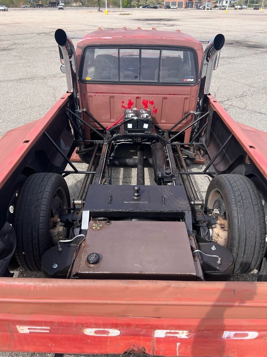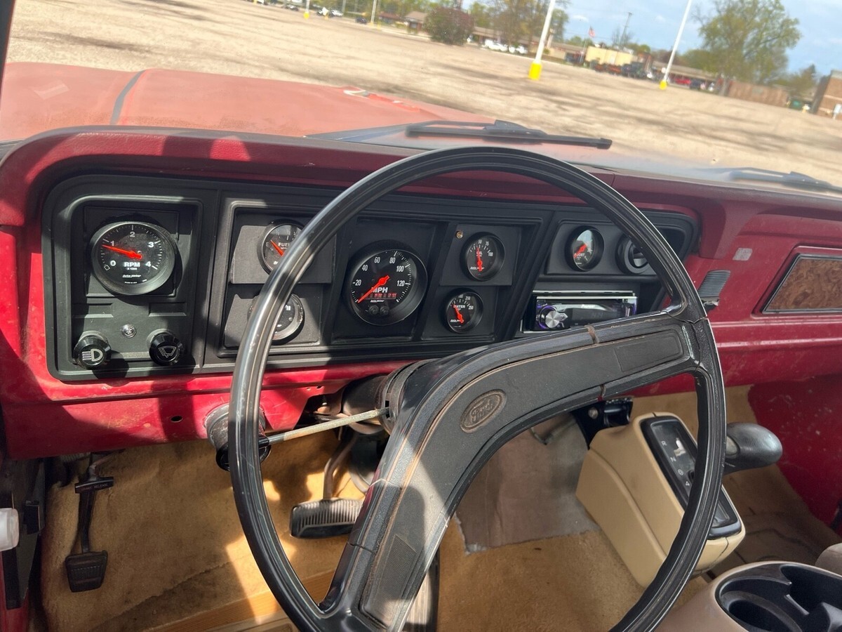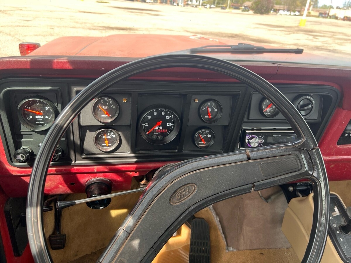 This 1979 Ford F-Series is a modified vehicle with updates to the exterior, interior, and drivetrain. The owner has had it for 5+ years and it's in good condition. The vehicle is drivable and is mainly used for car shows. The color is red and the mileage is 46000.