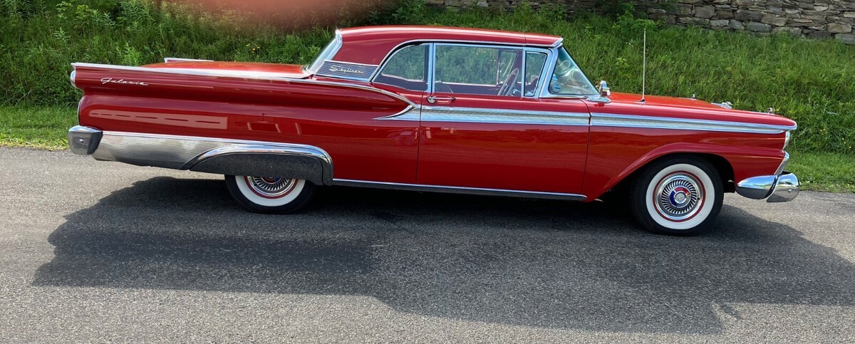 1959 Ford Fairlane 500 Galaxie Skyliner, retractable hardtop with automatic transmission and power steering. Fully restored and well looked after in heated garage with custom cloth cover. Fresh paint job in 2019, paint is superb with really nice chrome inside and out. Includes aftermarket AC.Fuel gauge or fuel sending unit is stuck, have not investigated. Actual mileage is unknown. Car is a really nice example. Was part of Staley collection, DeRuyter NY. Well maintained and restored, with a lot of TLC. Runs, drives, was driven to local car shows regularly near Cazenovia, NY.Please contact with questions!!