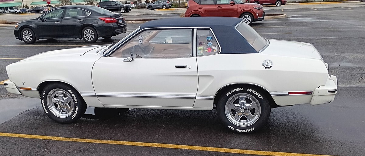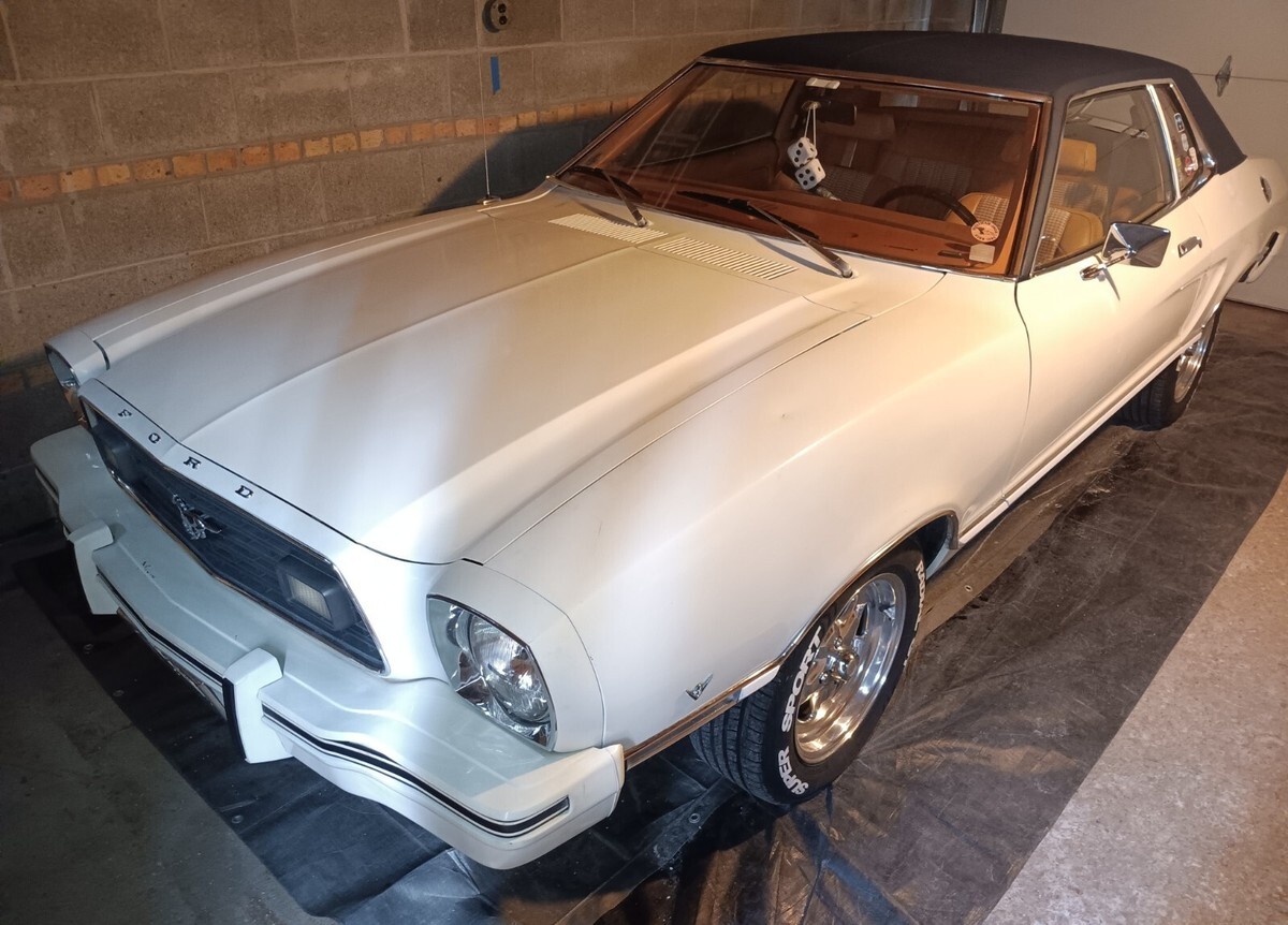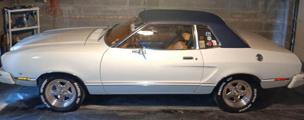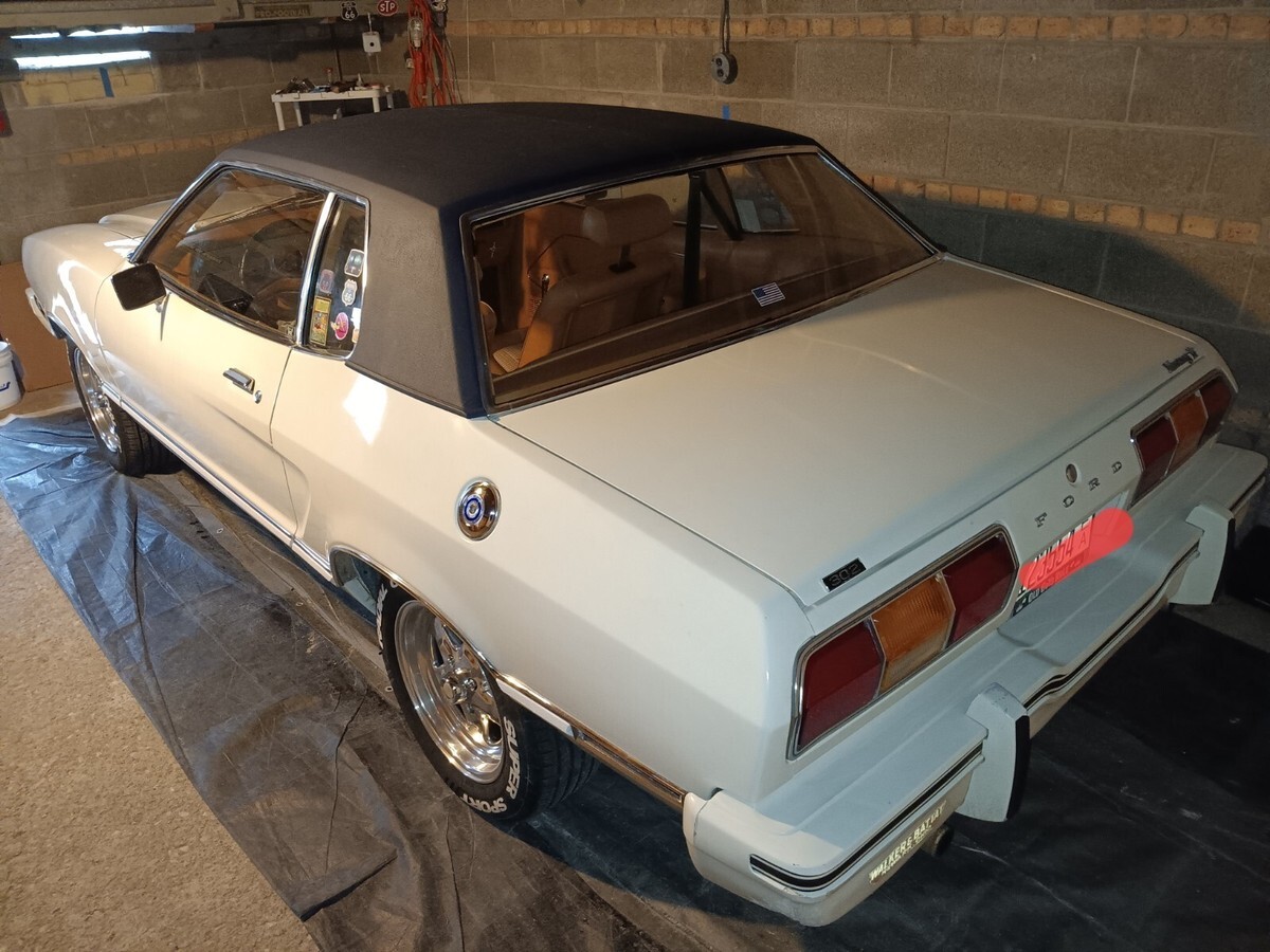 RARE 78 Mustang II coupe. 34,500 original miles! Ohio barn found by previous seller....V8 302CI V8/5.0L w/ automatic transmission, power steering power brakes.White w/Dark Blue vinyl top. Tan interior.Body solid.*all newer parts*CARBURETOR*DISTRIBUTOR CAP: Points, spark plugs and high performance spark plug wires.* TRANSMISSION: Rebuilt with seals and filter.*BRAKES: Front rotors calipers and pads...rear drums and shoes. Brake line seals and hoses.*BALL JOINTS.*RADIATOR: Aluminum performance, thermostat and upper lower hoses.*GAS TANK: Sending unit and fuel filter.*HARMONIC BALANCER: with belts*TIRES, POLISHED RIMS 15"Mustang has a nice stance and sound high performance dual exhaust.Extras included:Original air cleaner cover and carburetor.Set of spare keys, gas cap lock with keys and wheel locks and key lug.This car has been garage kept and well maintained.Lots of thumbs up....turn the key and go.CLEAN TITLEThanks and ask questions