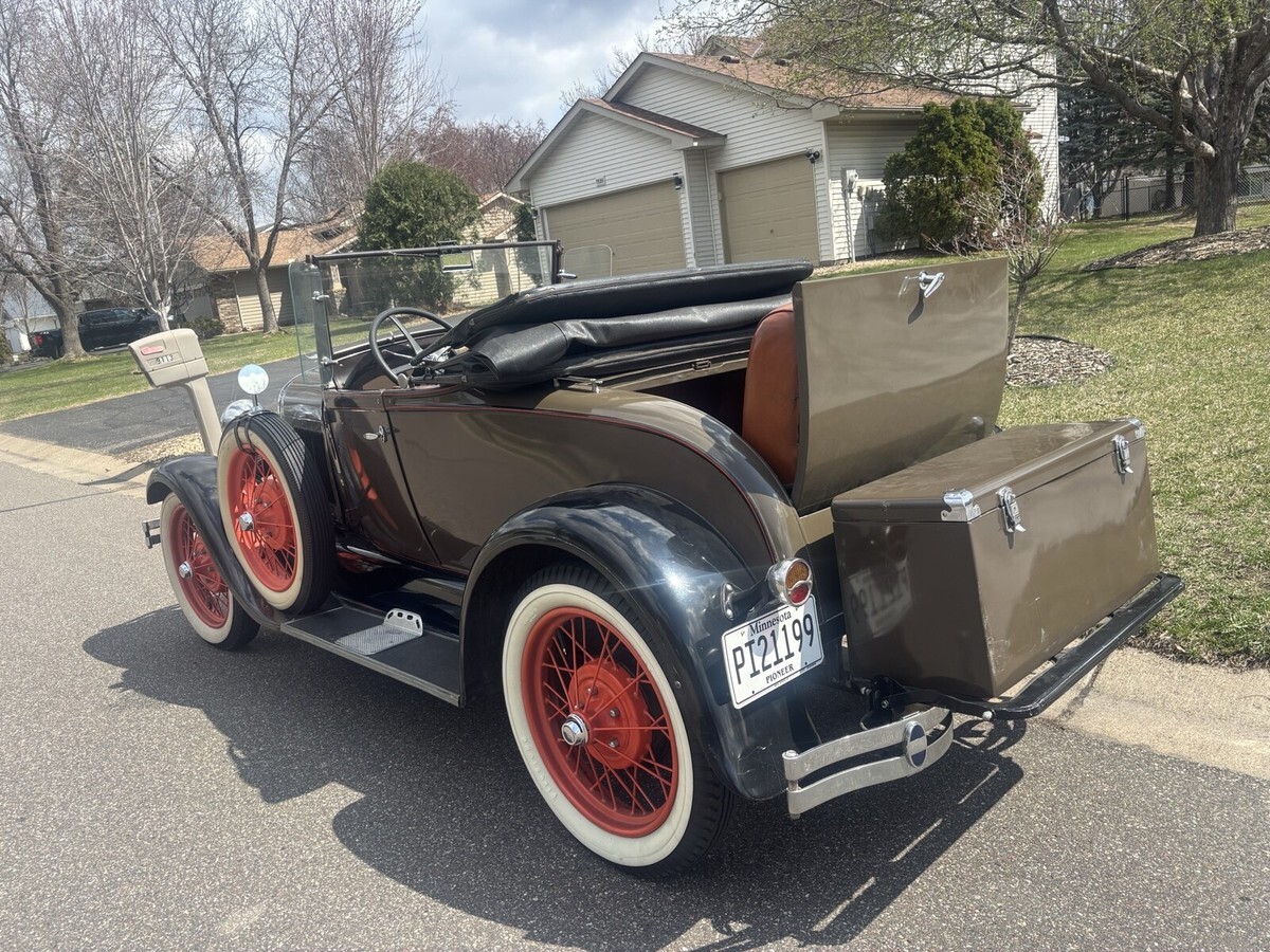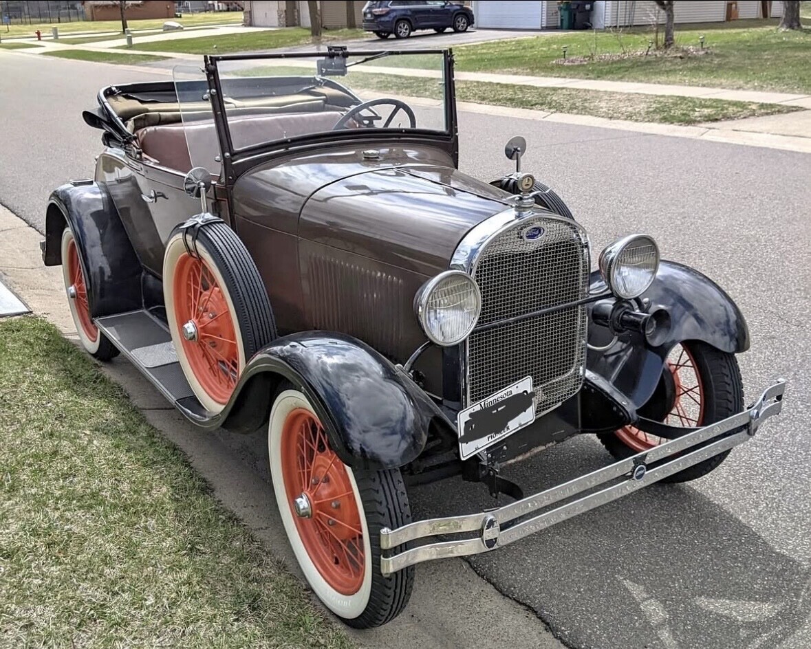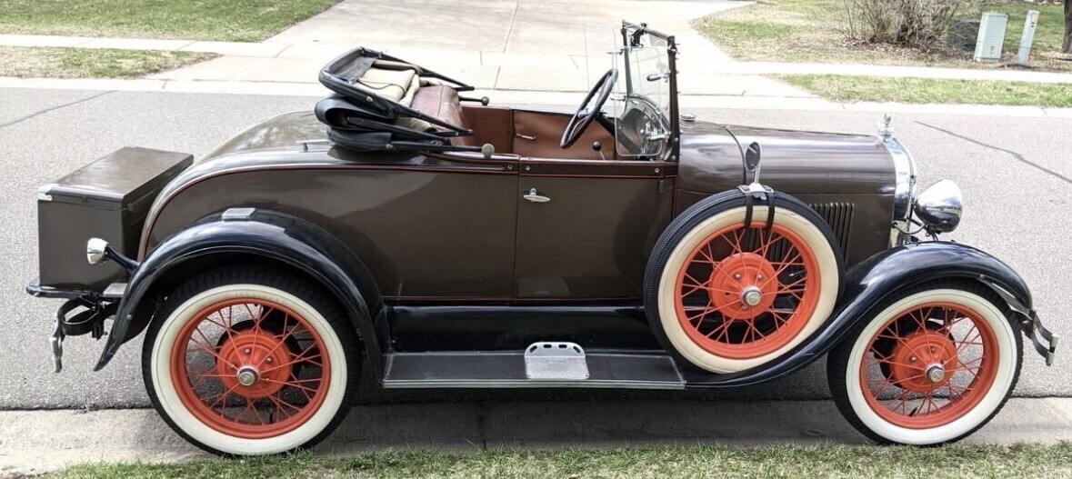 This Model A starts, runs and stops as it should. It has hard to find side curtains and a matching trunk for your luggage and tools. It has six new tires including two side mount spares. This is your chance to own one of the rarest of Ford Model As.