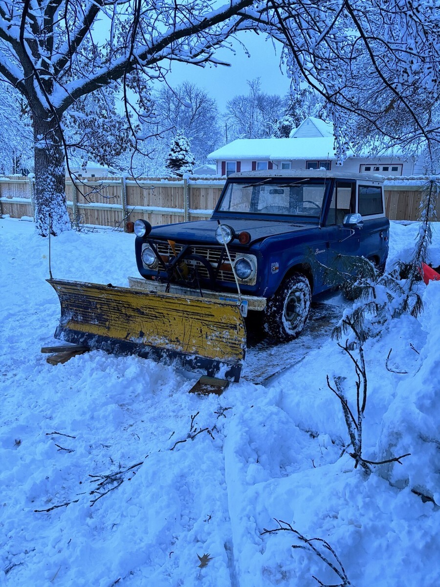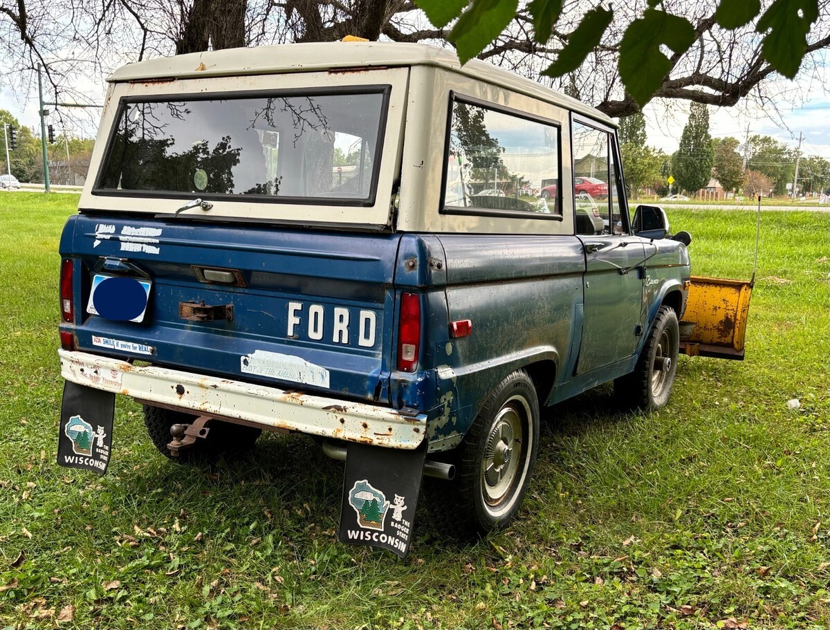 If you are looking for a solid investment in a vintage bronco this is your truck. Drive it to car shows and the grocery store as-is or use it as the ultimate starting point for your own stock to custom restoration. People stop me to ask about it and I get a lot of questions and compliments whenever I drive it.All numbers matching - the truck is 100% stock and has never been cut, modded or restored. Odometer shows 72,770 original miles. I hold clear title in my name. I have loved this vehicle and it has always started even in the coldest weather, the engine runs like its brand new and the 4x4 will drive thru anything and it is easily the best snow plow I have ever owned. It is unstoppable in snow. I bought this truck many years ago from a farm where it was used for plowing snow on the farm and was mostly kept out of the salt. It has been maintained by an old timer at my local mechanic shop and it is in good running & driving condition. In the past 8 years it has had: New OEM fuel tank, fuel filler neck, fuel cap, fuel line to engine, full carb rebuild with OEM Ford parts, new brake booster, new brake master cylinder and lines, brakes inspected and brake fluid flush, suspension & steering inspection, new OEM exhaust, new starter and many more small repairs to this daily driver. Everything works including the speedometer, lights and all gauges. Engine fires right up, runs smooth and has a huge amount of power. Transmission is a 3-speed automatic and shifts good. 4x4 system works great and shifts properly from 4x2 - 4x4 - 4x4 low range. Front tires were new a few years ago and are still excellent, all 4 tires hold air and roll well.Body: Overall the sheet metal has dents, rust and patch jobs on the rocker panels and fender corners. The floor boards and rear cargo floor are rusted out in places.The doors open and close well and latch easily and the body panels and sheet metal still line up. Please see photos for more detail. The frame overall looks solid and good but it does have one small area at the passengers side rear bumper mount that has rusted thru. 15,256 Broncos rolled off the line in 1976 with 372 factory snow plow packages sold. Package incudes heavy duty power steering,power steering cooler, transmission cooler, power brakes,heavy duty front & rear axles, 3-speed automatic transmission, optional low ratio transmission and axle ratios, reinforced front frame member, factory installed HD snow plow.Thank you and good luck ! It's a great truck!Condition: Please see photos and ask questions before bidding. Please see photos for condition. Vehicle runs and drives 100% everything works. Engine, Transmission, 4x4, Brakes, Fuel System and other systems are in excellent condition and have been regularly serviced by a local shop. Snow plow works perfectly and is 100% original condition. Rust:Body sheet metal is rusted and was patched in the past by a previous owner, the floorboards are rusted and the rear sheet metal is rusted. The frame has rust holes right at the rear bumper mounting point, but the rest of the frame appears to be intact. This snow plow was used on a farm for 25 years and was mostly kept out of the salt.”