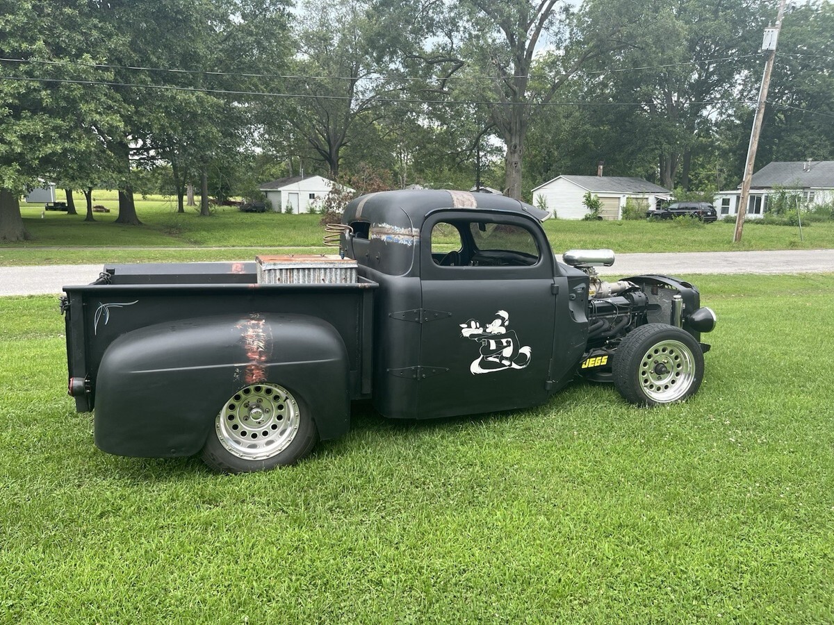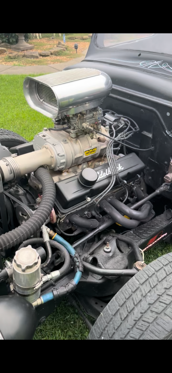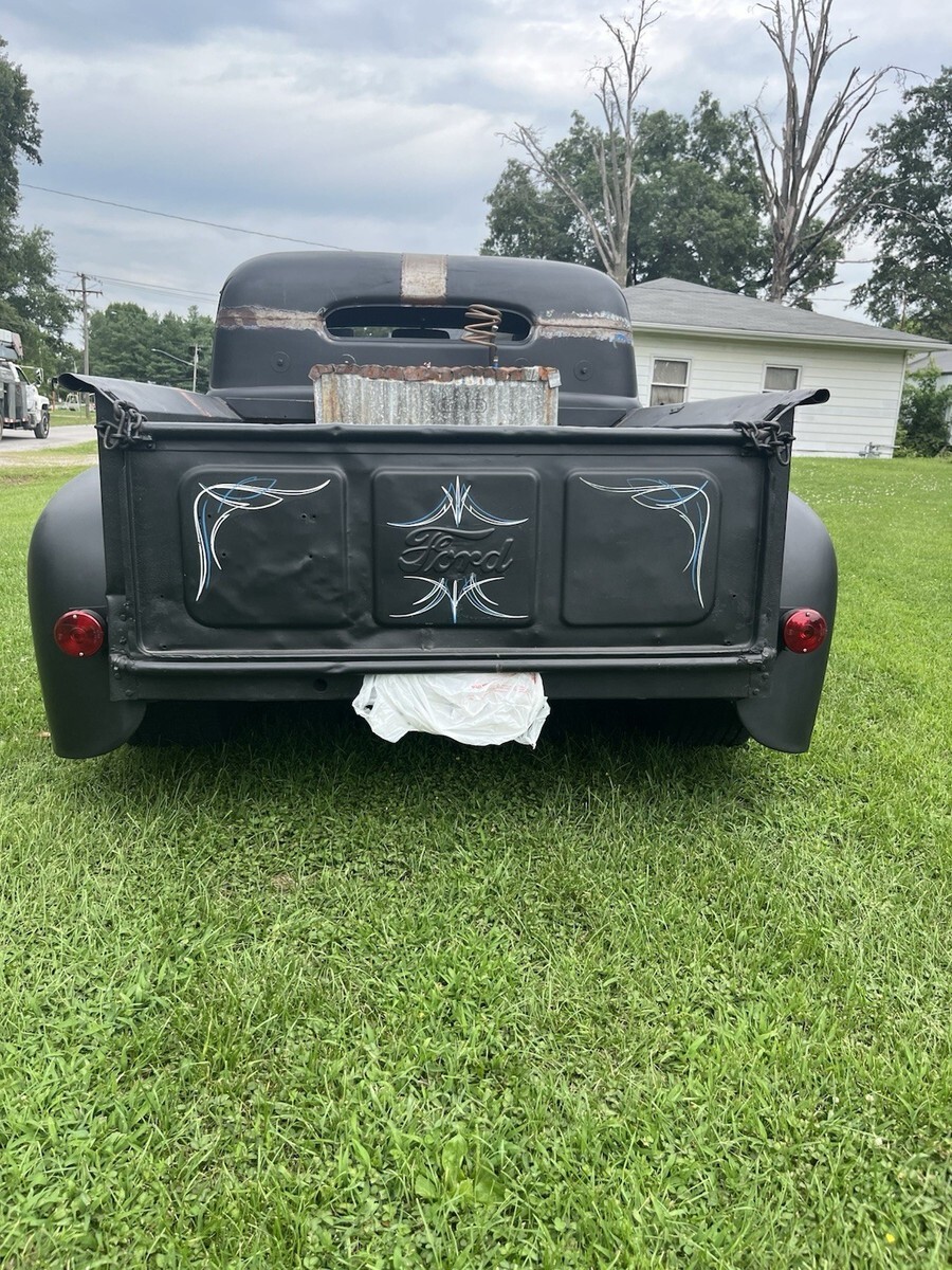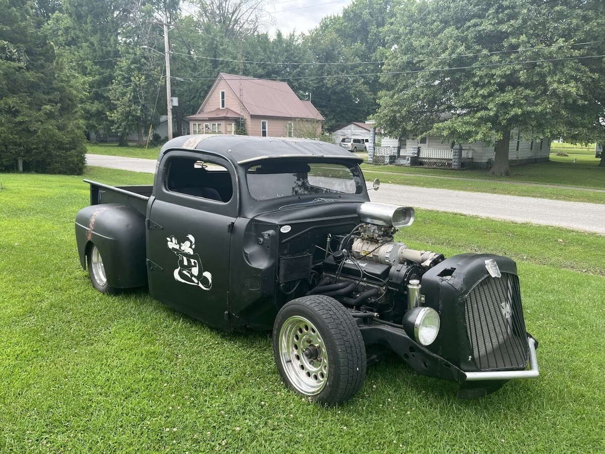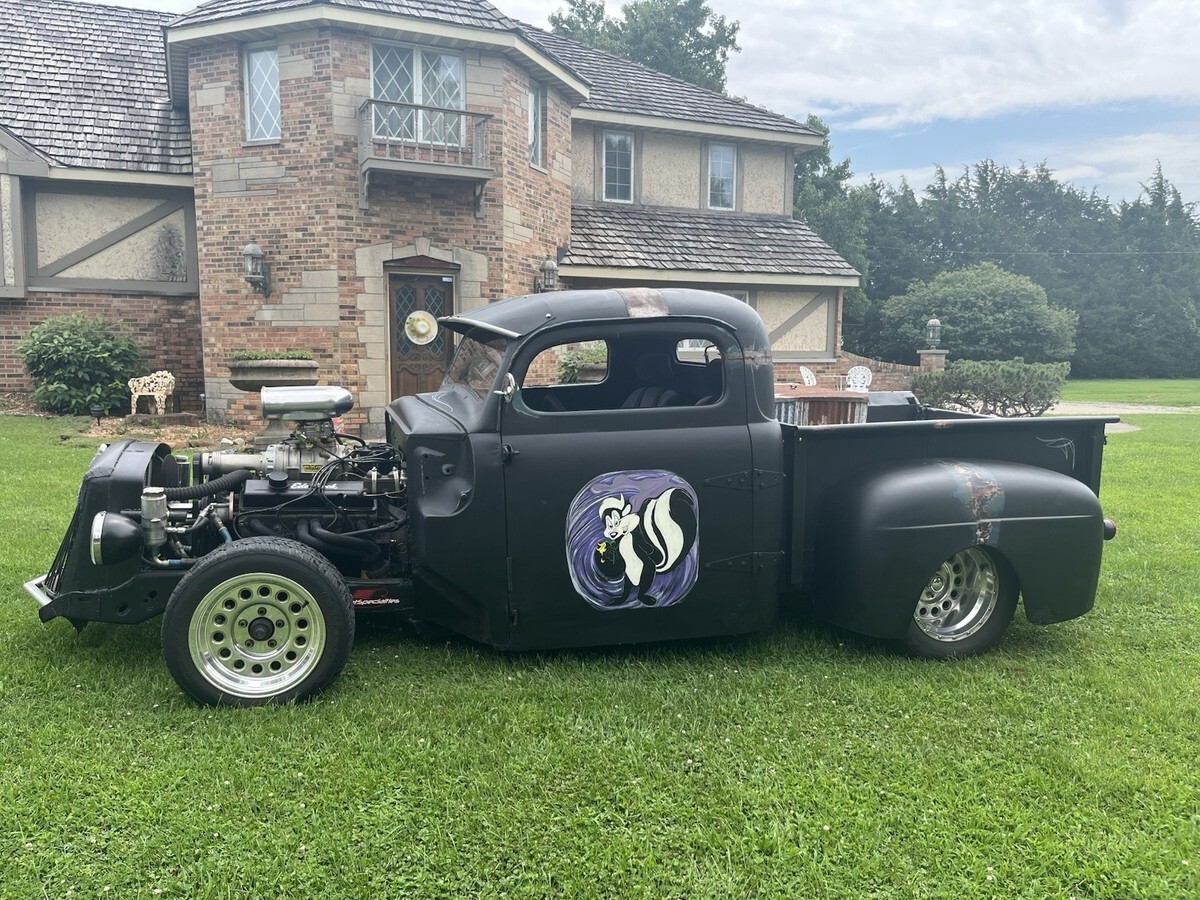 1950 ford f1 chopped channeled artwork by delayo pinstriped s10 subframe coil over rear roller rockers aftermarket heads dart heads weiland blower 355 Chevy s10 rear end it’s jump in ready to drive needs nothing