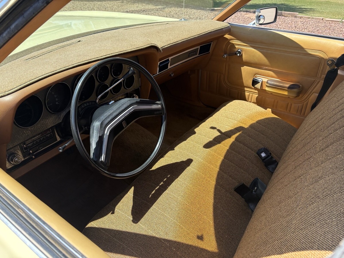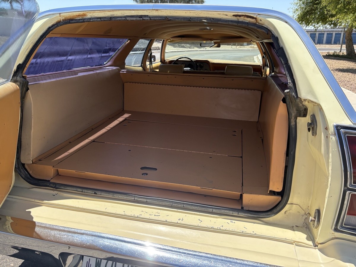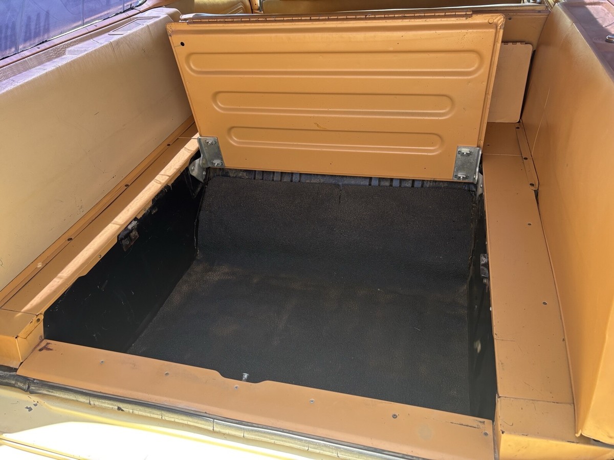 This 1977 LTD II Ford station wagon this is an original Yuma Car. It still wears its original yellow paint. Sport – with tachometer and full gauges and the wagon was ordered with a tall gearing in it. It’ll cruise along at 70 miles a hour.The car has been updated to American racing 15 inch wheels. The radiator has been redone. The fluids of all been changed and serviced new fuel pump so the cars roadworthy and runs and drives very well. This is a one year only manufactured by Ford wagon before they downsize to a smaller LTD. It has a 351 Windsor motor two barrel carburetor all the emissions equipment and catalytic converters are still in place. It has AC but it still are 12 and needs to be converted to 134 and it’s probably gonna need some seals. It hasn’t been charged in a long time .The car was one family owned and stored for 20 years until I purchased it. The wagon has a lot of room more than enough room that someone could sleep in the back if they needed to this would be a great car for slow touring around the country or for anyone who just wanted that family vacation vibe the car is in Yuma, Arizona with a clear Arizona title in my name