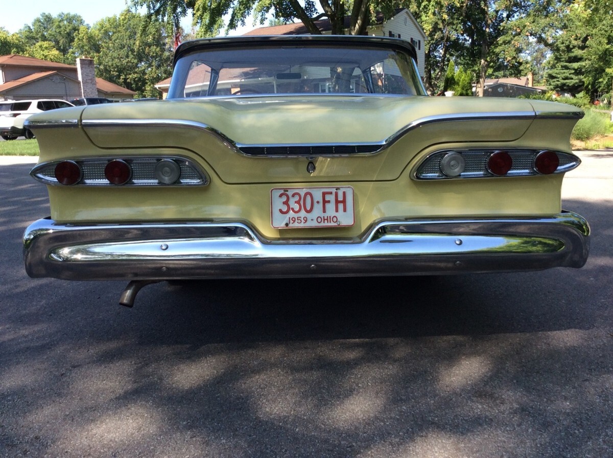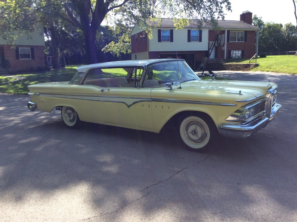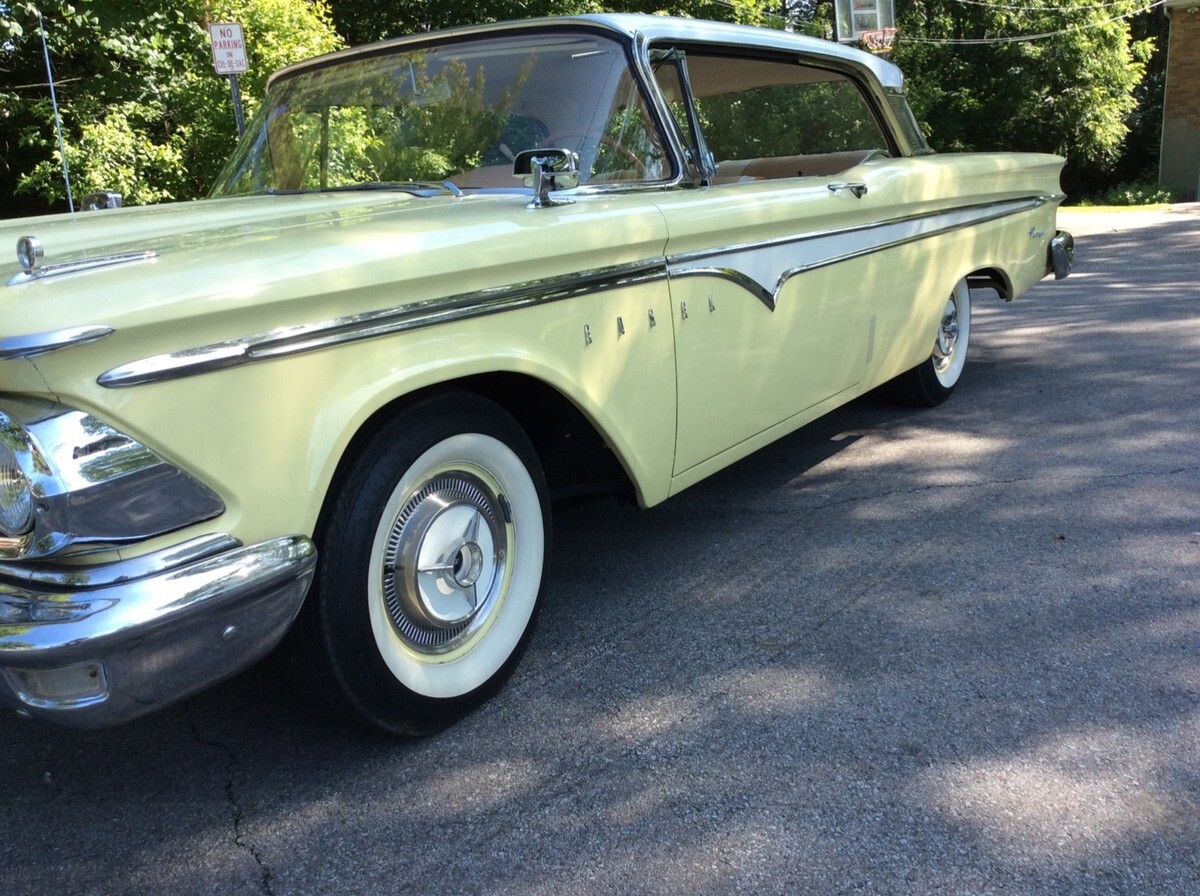 Up for bid is a very nice 1959 Ford Edsel, this is a one owner car prior to me and have the purchase order. Purchase new at an Edsel dealership called Morton Edsel in Nashville Tenn. This Edsel is just a beautiful car, new 2 tone paint, all chrome as been redone. Body is very straight and has no bondo at all. Inside are new seats front and rear with new carpet. The dash is just simply stunning, all interior lights work, even your clock works. Comes with under dash a/c and compressor along with Edsel power steering rack. This car is a 292 V8 2 bbl.automatic. Engine is smooth,quiet with no smoke. This is really a head turner. Retirement forces sale.