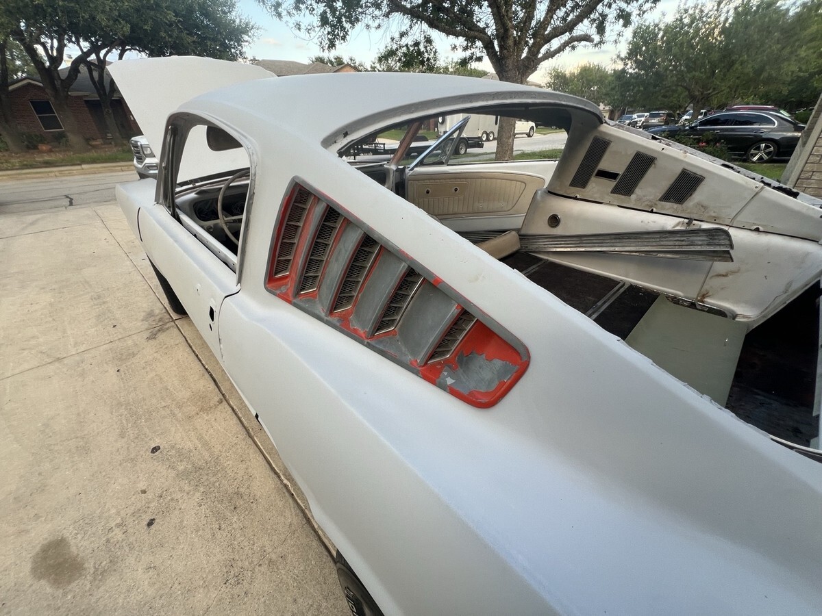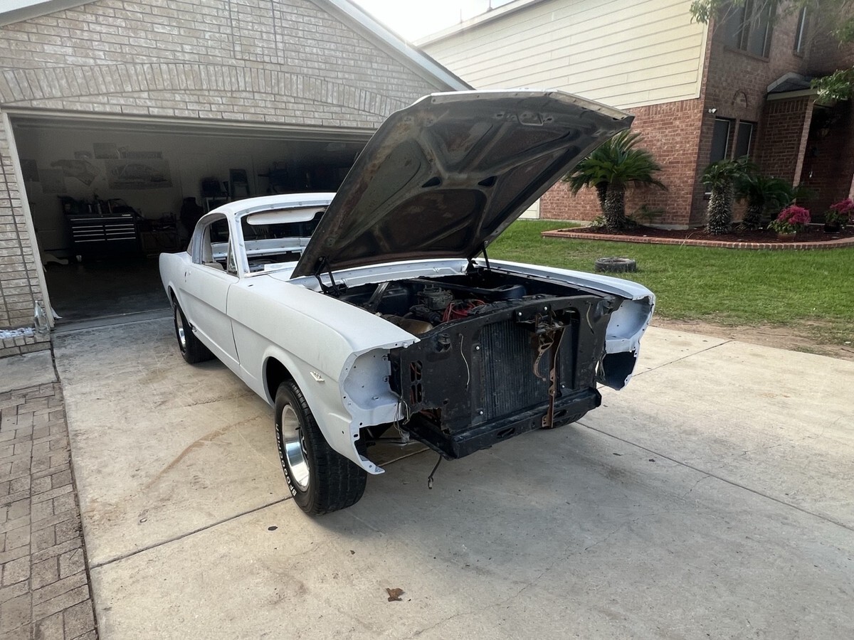 Have a 1965 ford fastback 2+2 mustang. Car was red with white interior. Car was bought back in 1990 and restoration was started but never finished Car will need a full restoration, does have the orginal 289 with the auto trans that does turn. Will need floor patches lower rockers and rear window area. I do have all interior, the front grille, front bumper, head light buckets, along with all the glass except the front windshield. And alot of parts that came with the car. 14 inch mags all the way around with bfg goodrich tires. Clean texas title with a”the door tag, and fender frame numbers matching. feel free to contact me at 210-367-0288.