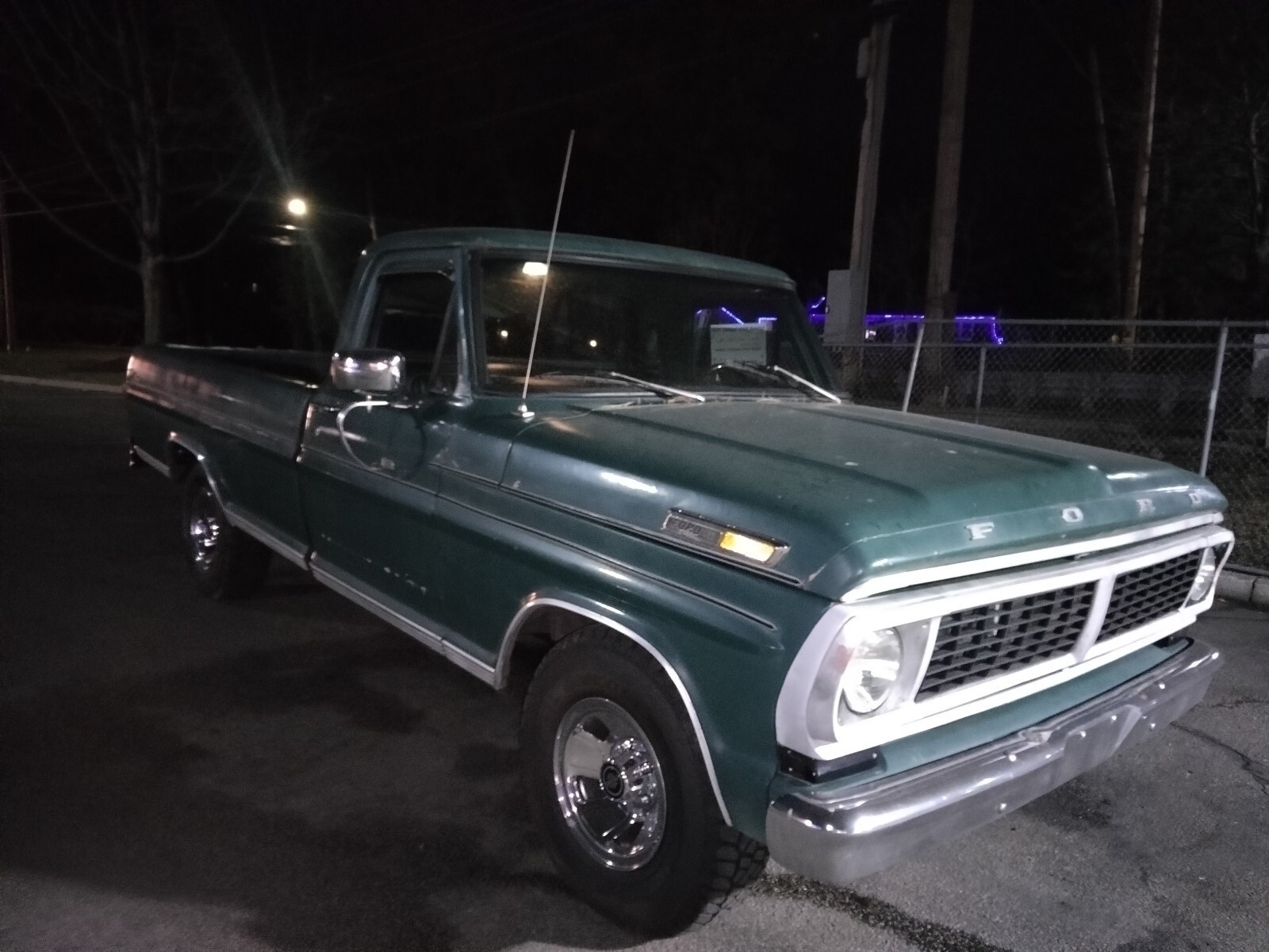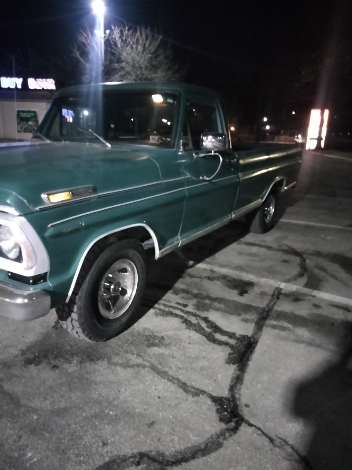 Hello fellow biders, I'm sure you guys recognize this beauty. I had it in about 2 months ago with literally one day left auction was going great and eBay took us down. So here we are again thank you for checking out the truck and bidding have a wonderful night. This is a f 100 Ford pickup 1970 With $8,600 MI 5 brand new tires heavy duty DieHard battery. Also has a large leather bench seat new rugs and a brand new windshield was just installed it also had an oil change and yearly inspection. Has AM/FM radio heat and AC work great. Power steering power brakes ranch steering wheel. Also brand new dual exhaust aluminum radiator. It has a 1986 Ford mustang 5.0 engine. Also will come with a full tank of gas.