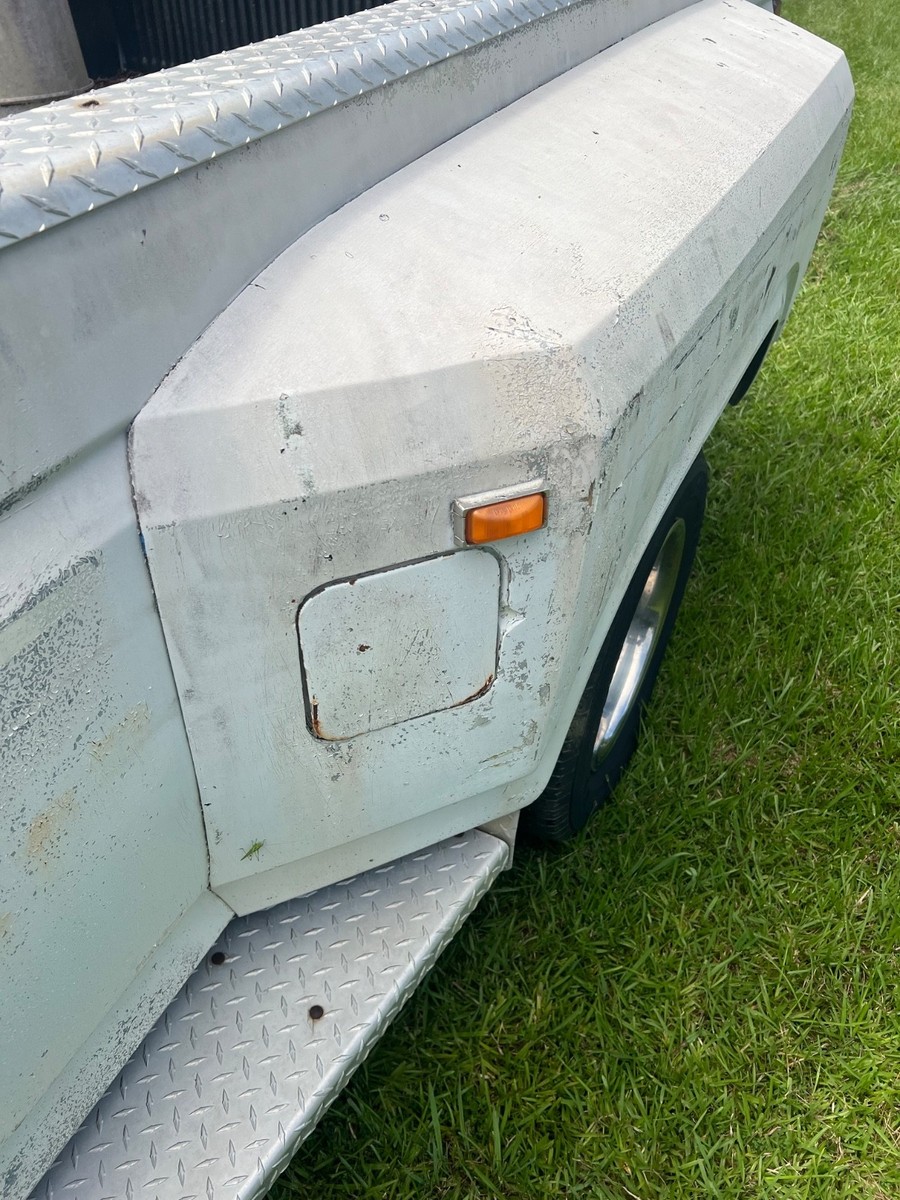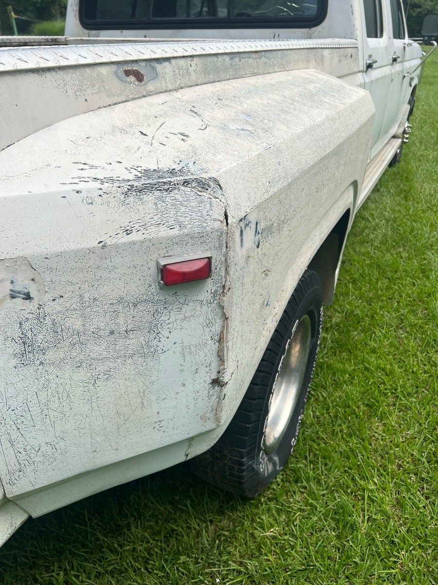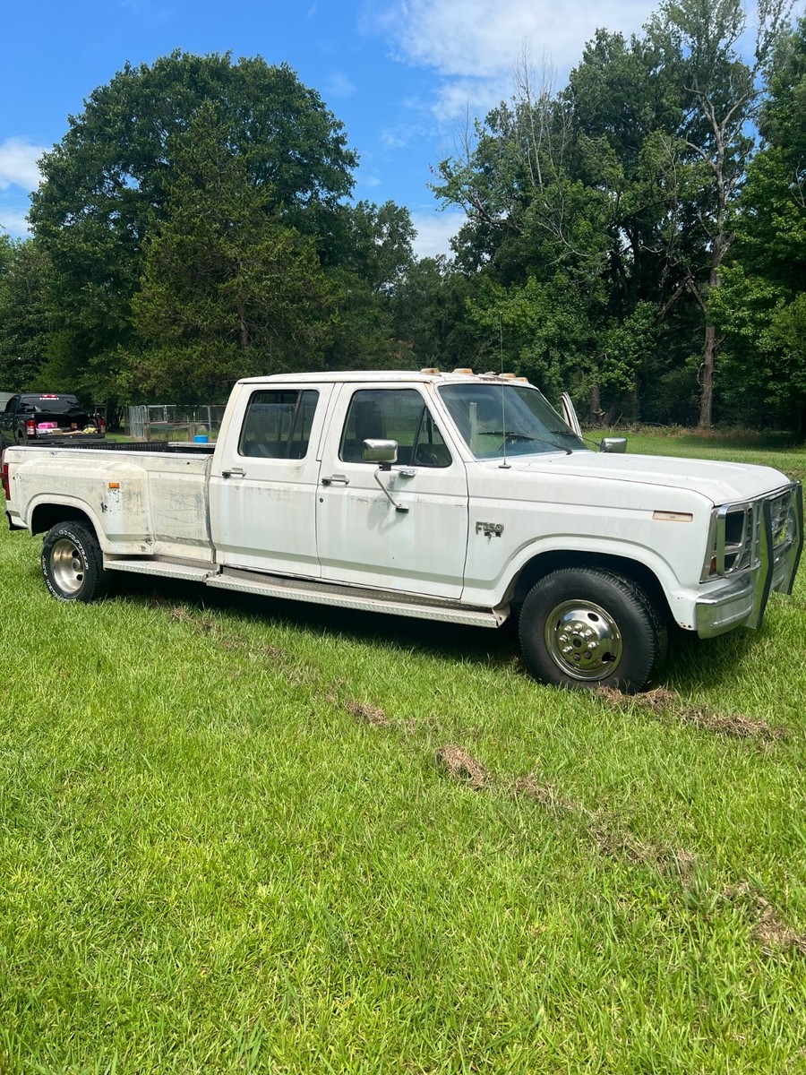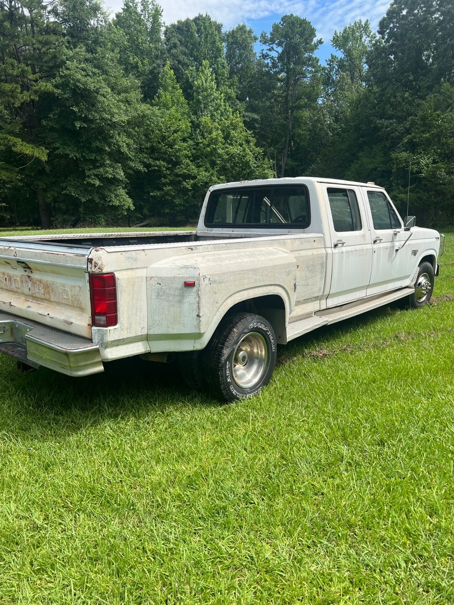 I have up for bid my 1985 Ford F350 4 door dually. It is has the 6.9 idi diesel engine with an added on ATS TURBO SYSTEM. The body is straight, it does have a cracked rear fiber glass fender but not missing and of the fender, it is shown in the pictures. There is a small amount of surface rust in the door jams also shown in pictures I believe there is one rusted through spot at the top of the door openings. All rust spots will be in photos incase I did not mention them and feel to ask questions. The floors and doors are solid, the bed floor is also solid. The bed has the hideaway goose neck ball.